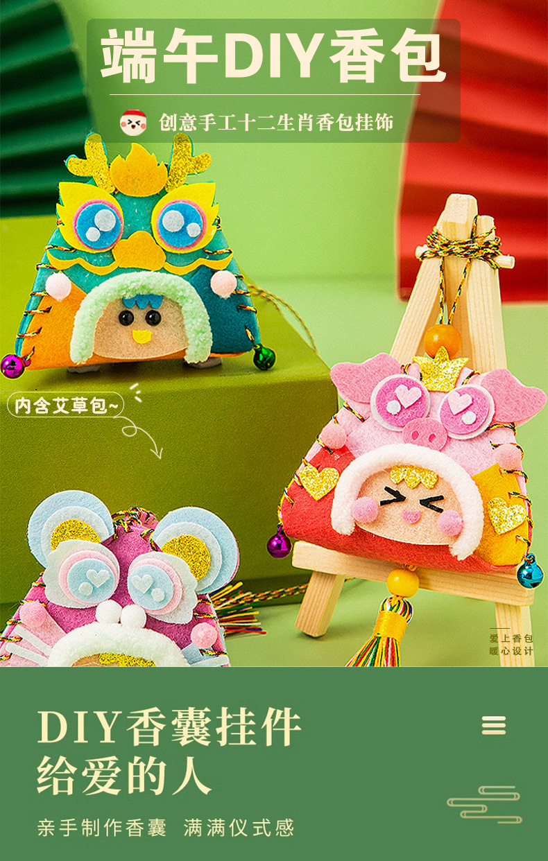 端午节艾草香包香囊手工diy材料十二生肖儿童卡通粽子挂件小礼品