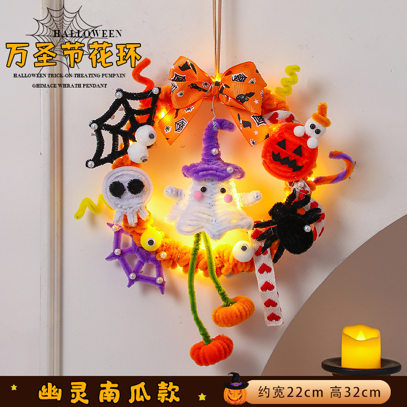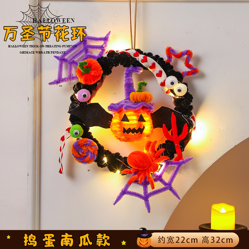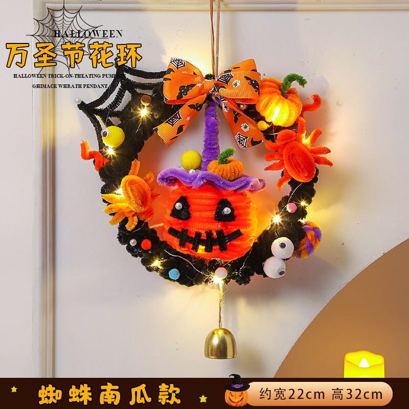 万圣节花环门挂饰发光南瓜灯店铺装扮道具派对场景氛围布置挂件