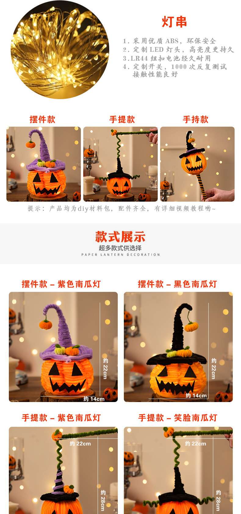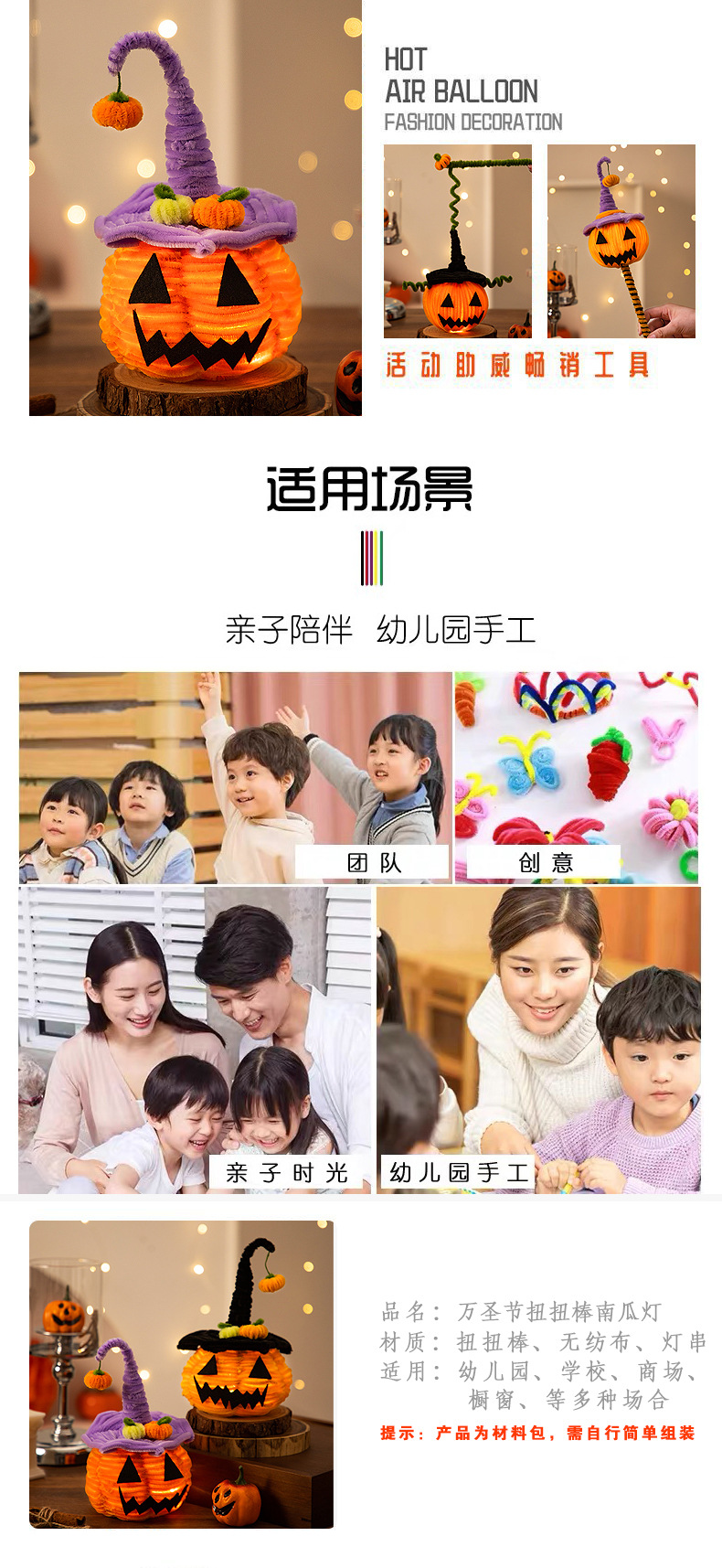 万圣节手提南瓜灯发光扭扭棒手工diy材料幼儿园道具儿童小礼物品