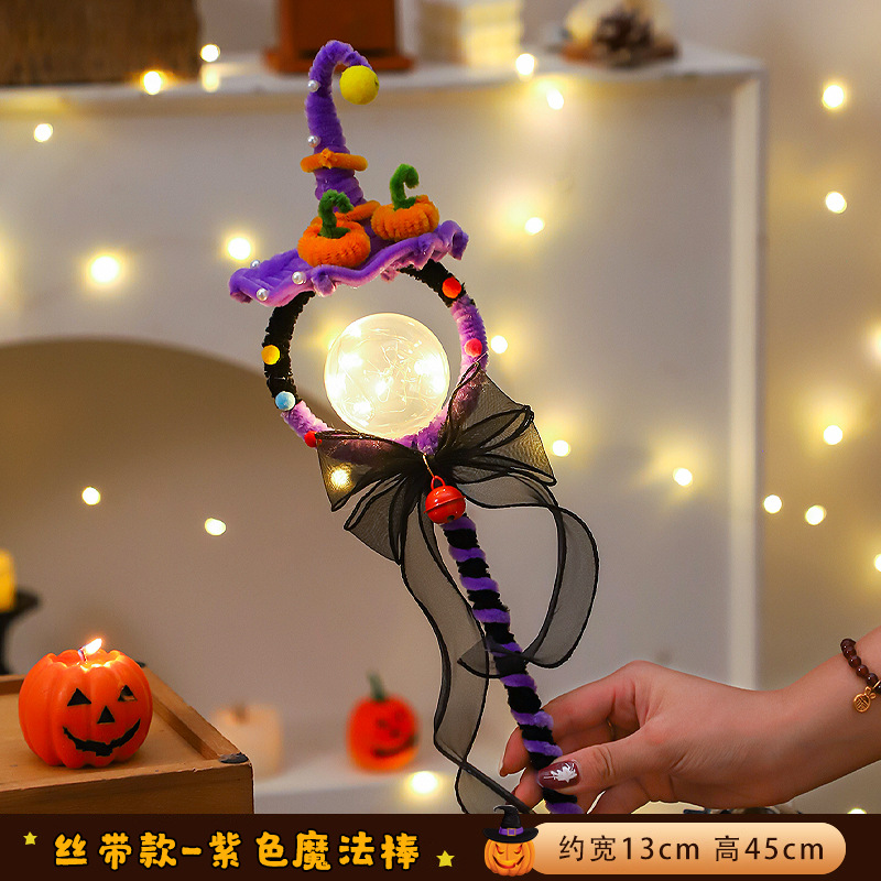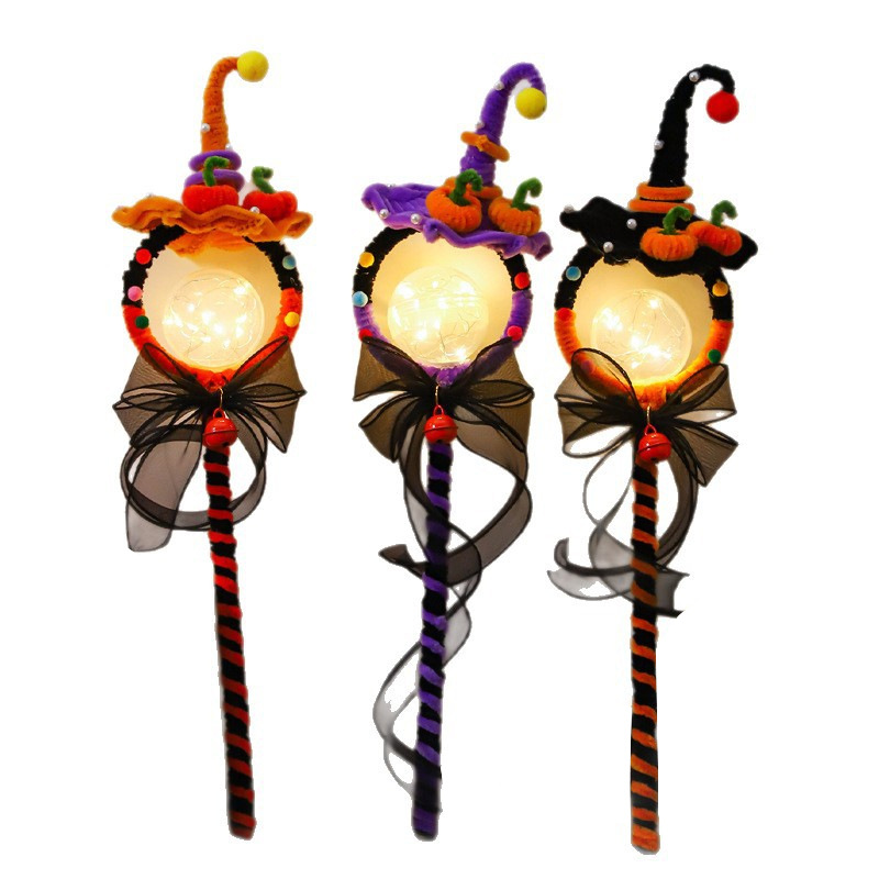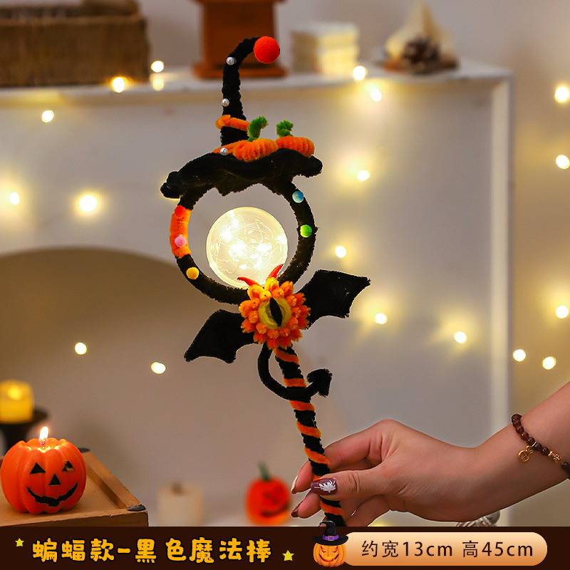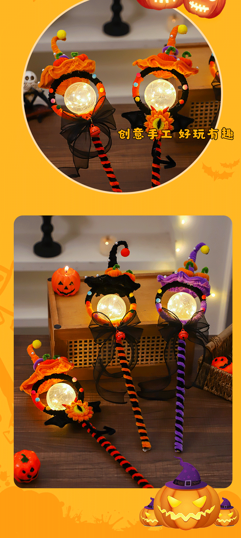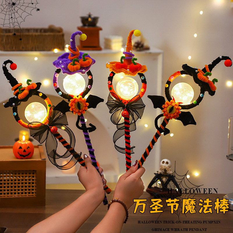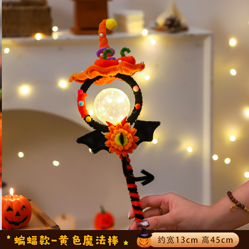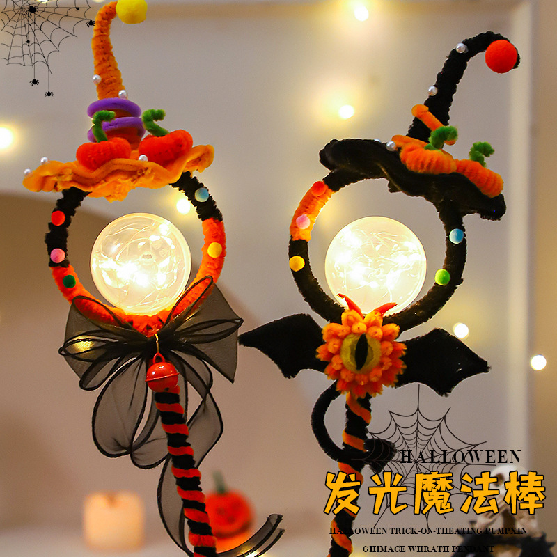 万圣节发光手摇魔法棒南瓜灯扭扭棒手工diy材料酒吧派对氛围道具