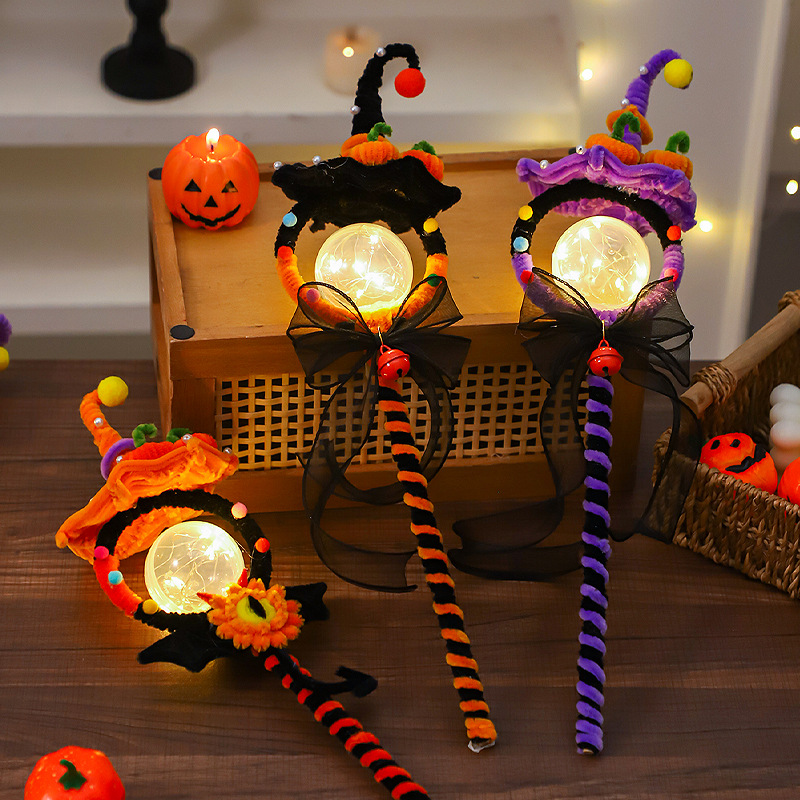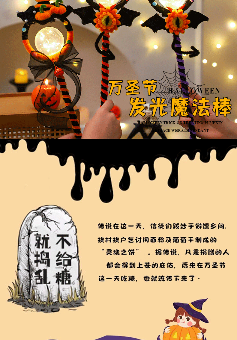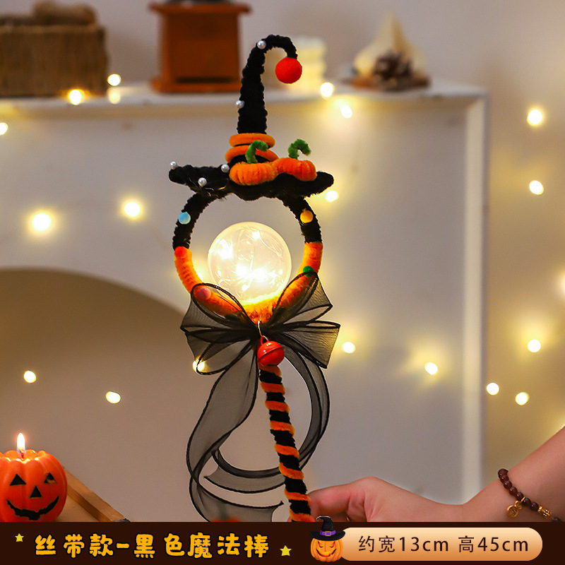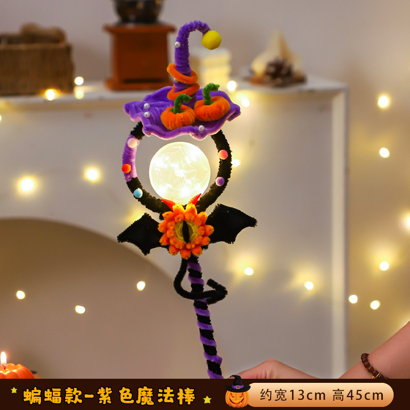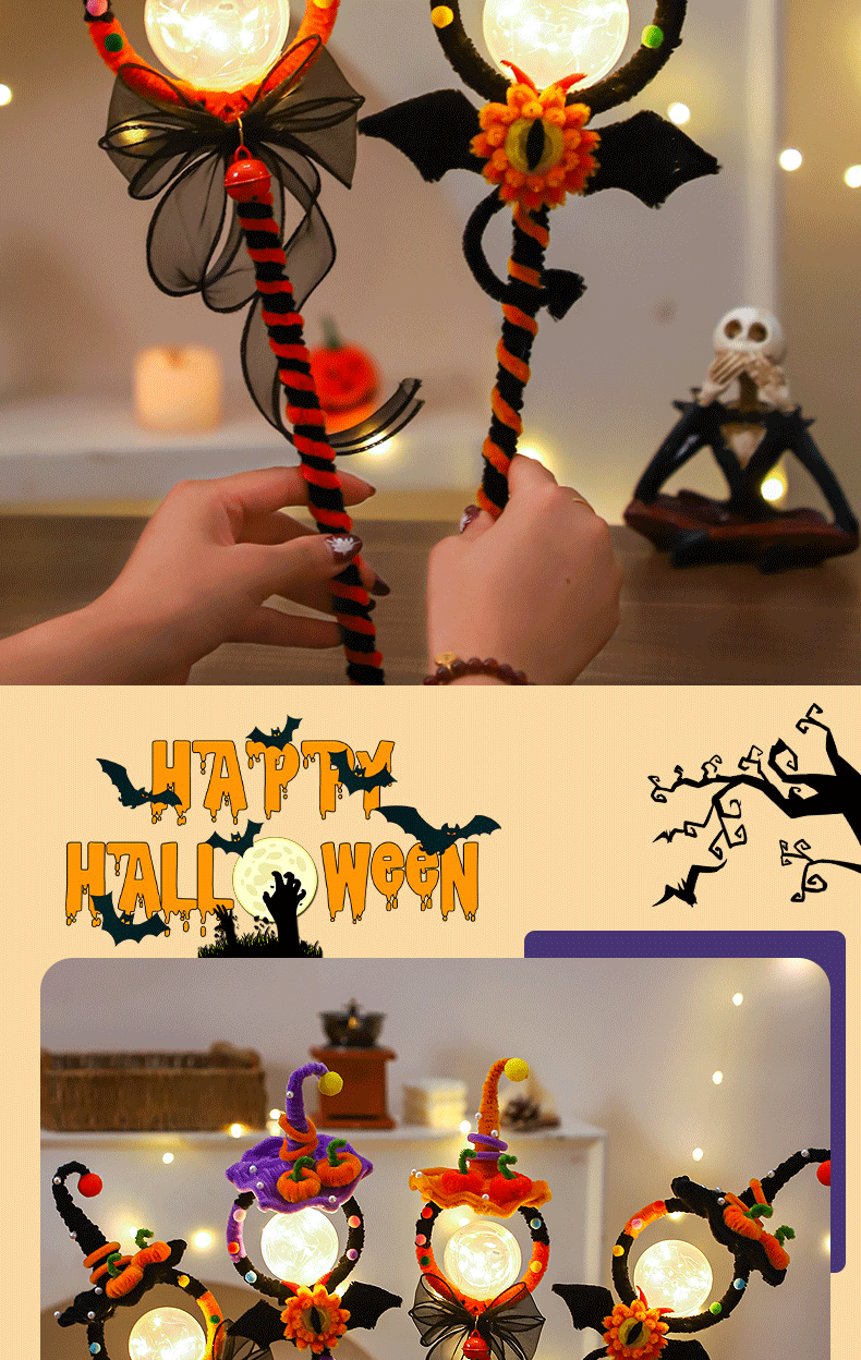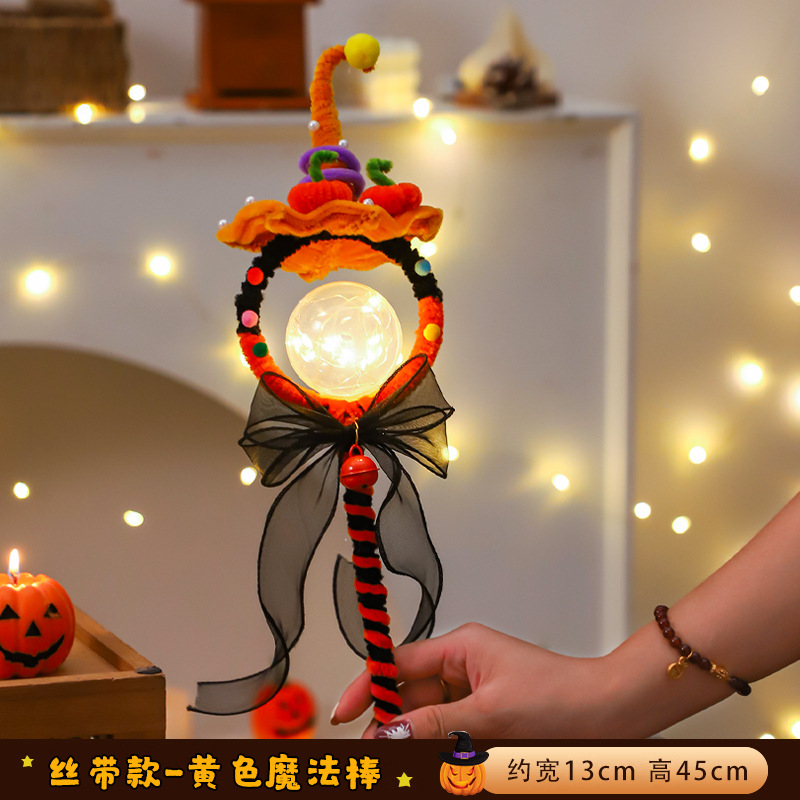 万圣节发光手摇魔法棒南瓜灯扭扭棒手工diy材料酒吧派对氛围道具