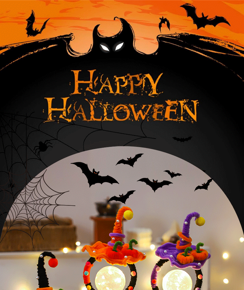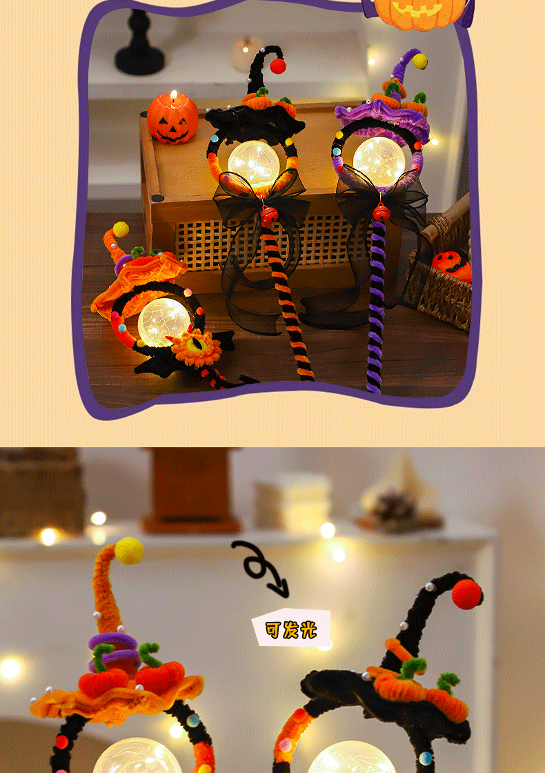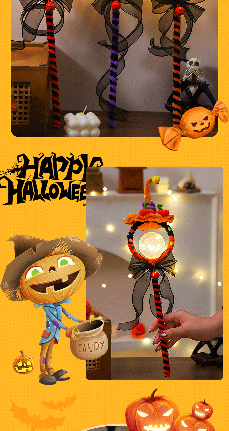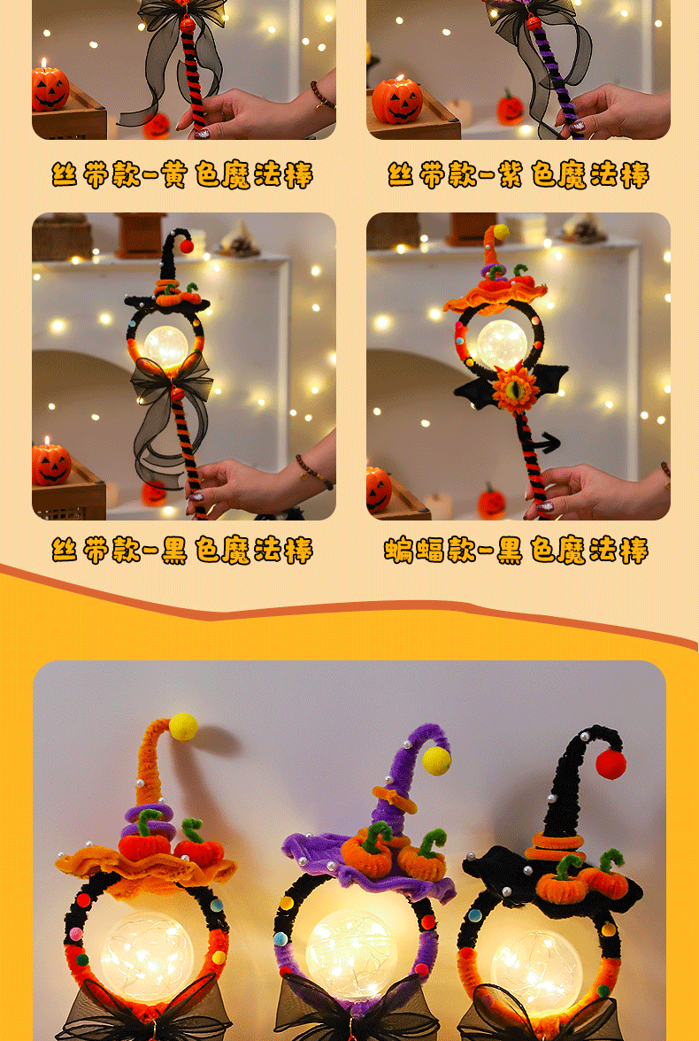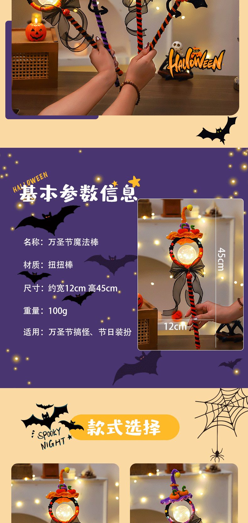 万圣节发光手摇魔法棒南瓜灯扭扭棒手工diy材料酒吧派对氛围道具