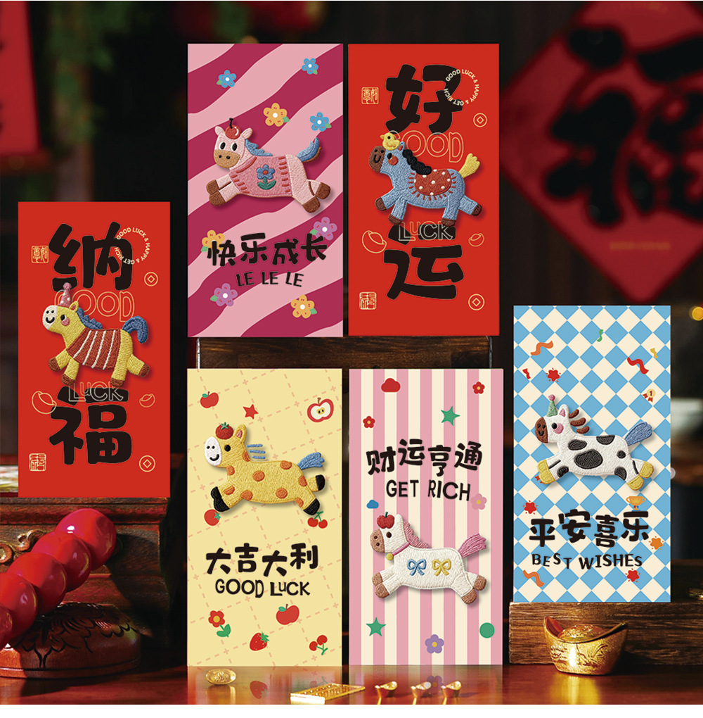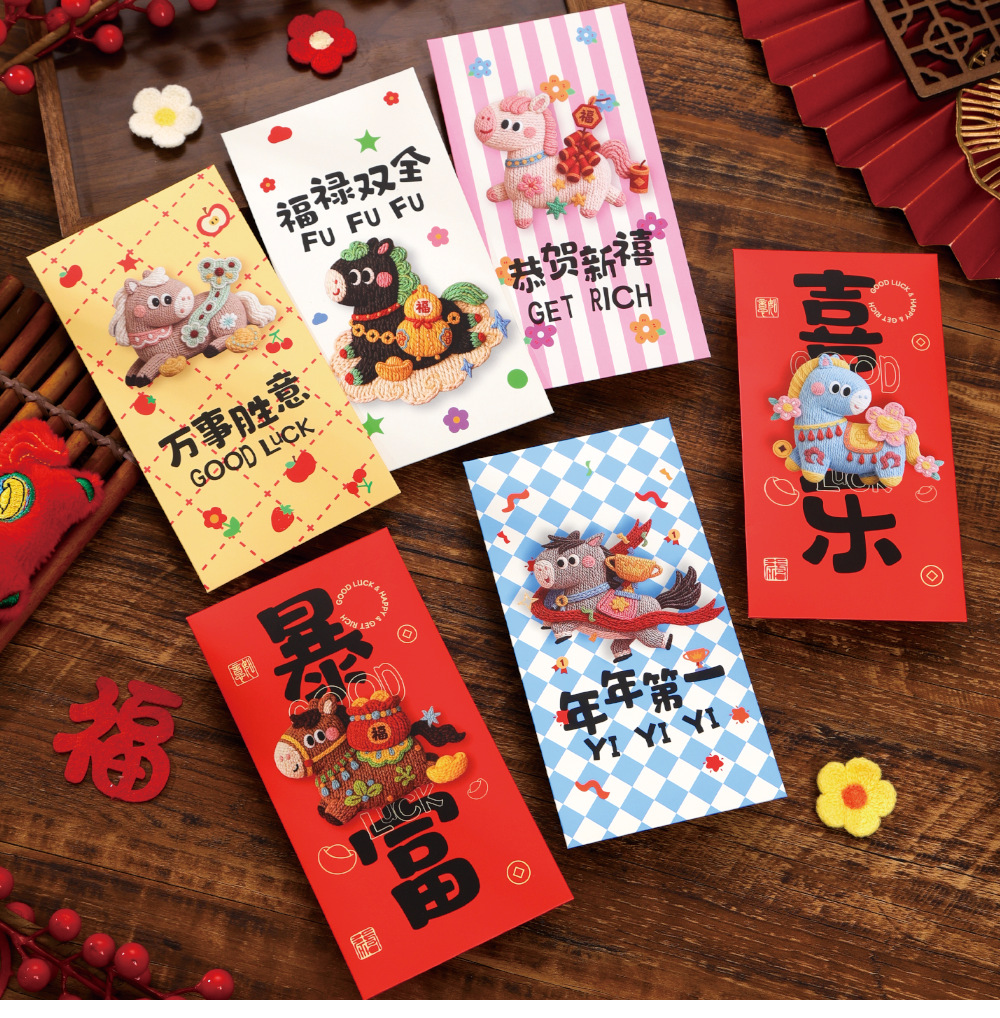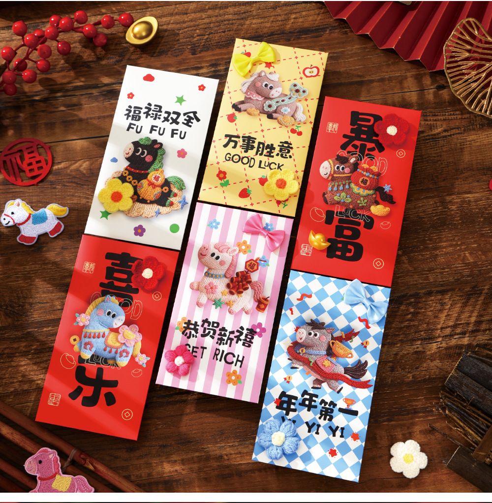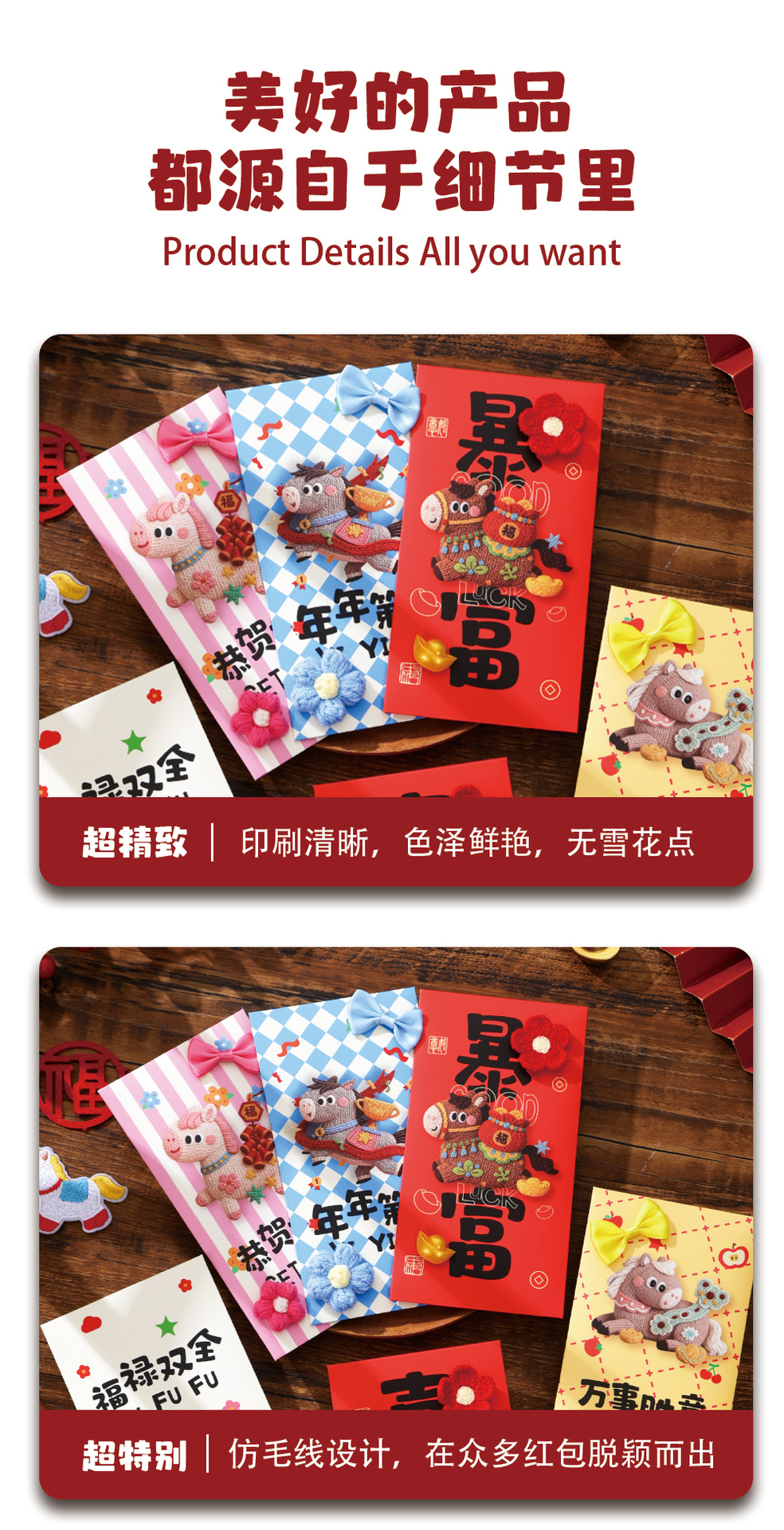 马年新年红包定制立体刺绣红包毛线创意结婚过年压岁通用利是封