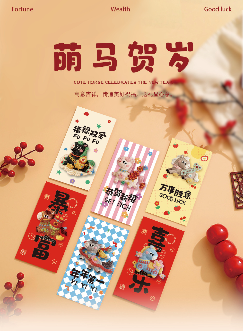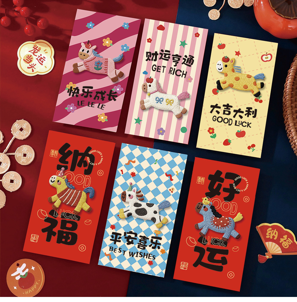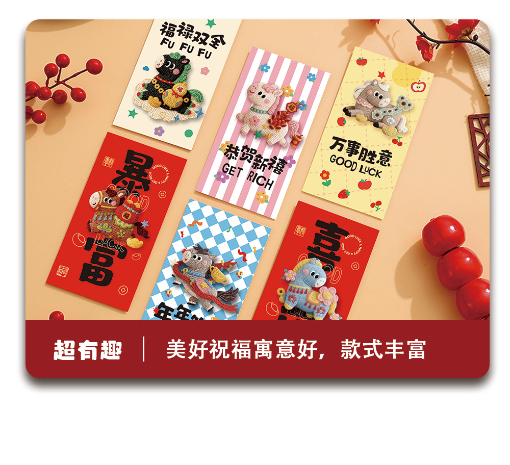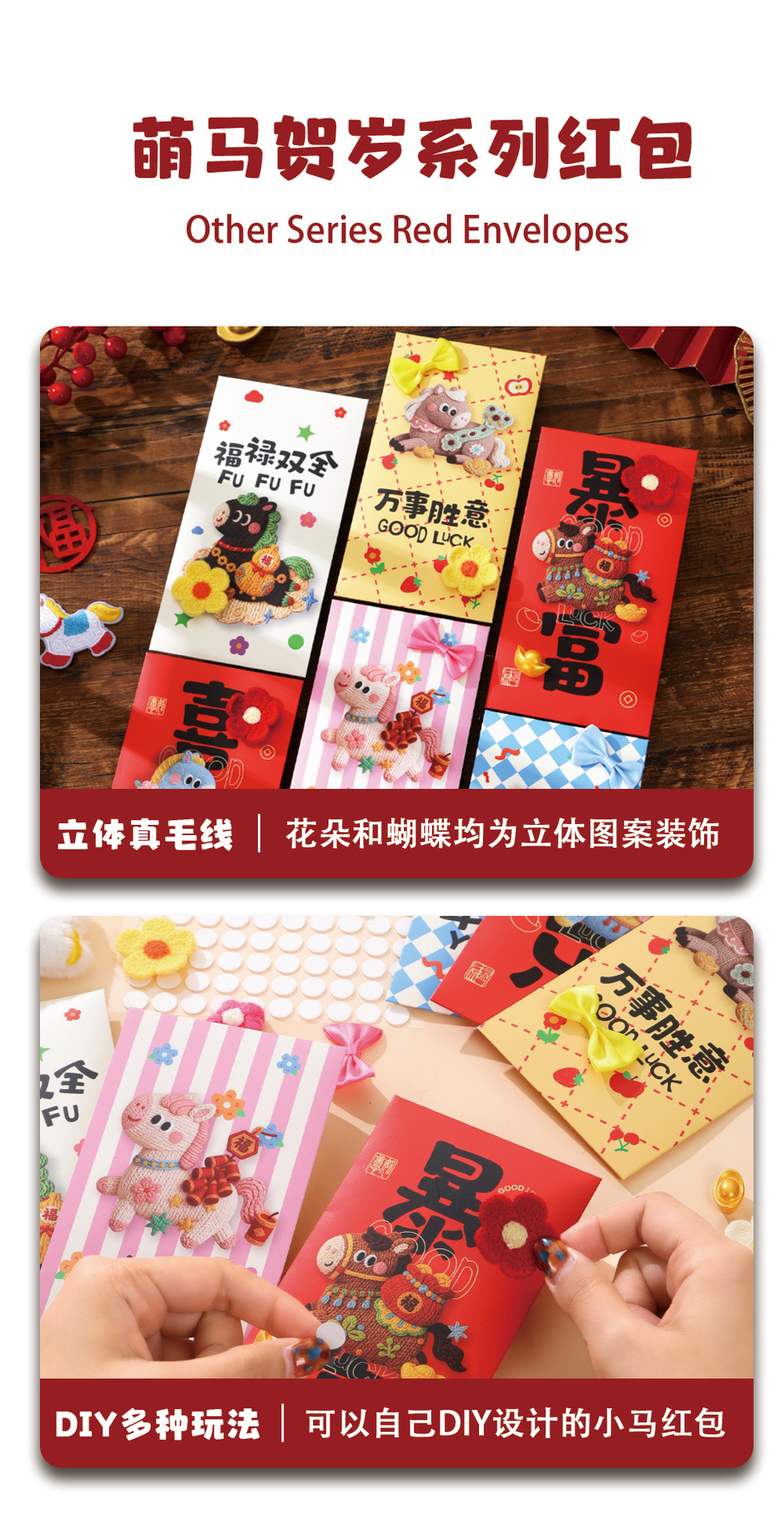 马年新年红包定制立体刺绣红包毛线创意结婚过年压岁通用利是封
