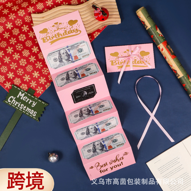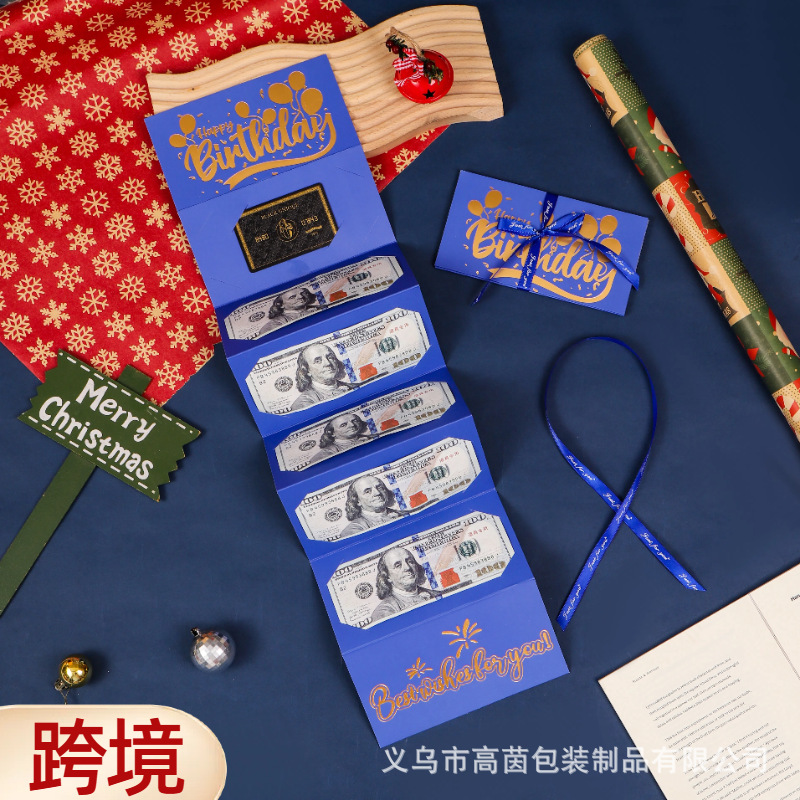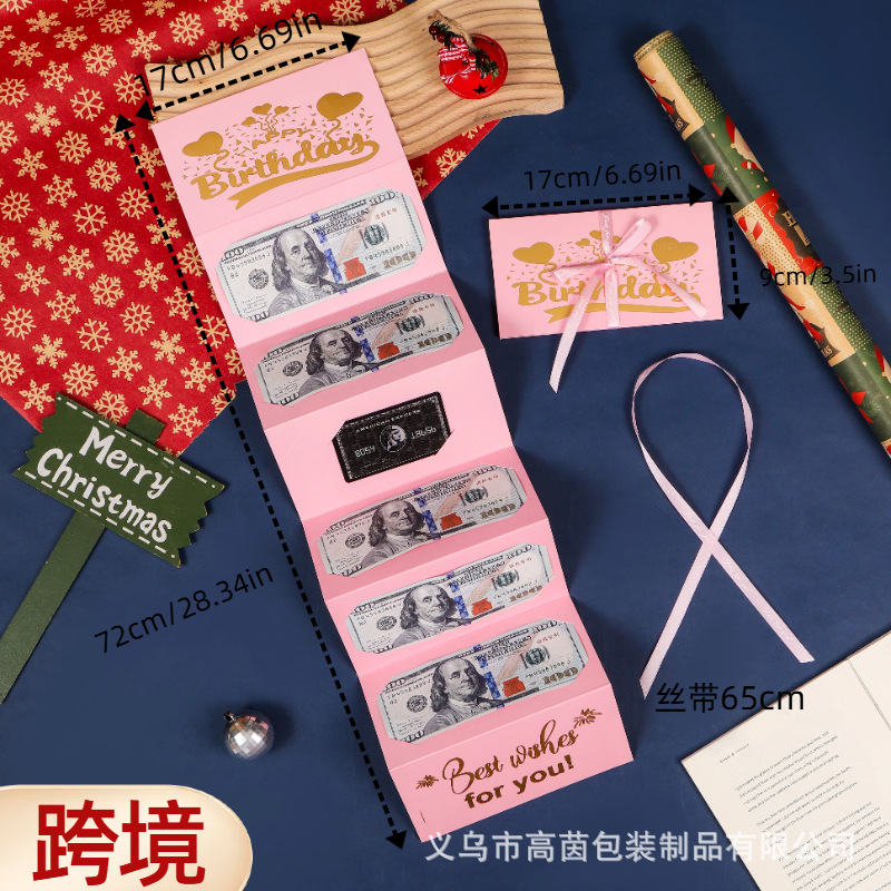 跨境 DIY创意折叠6卡位红包仪式感生日礼物信封 情人节惊喜钱包夹