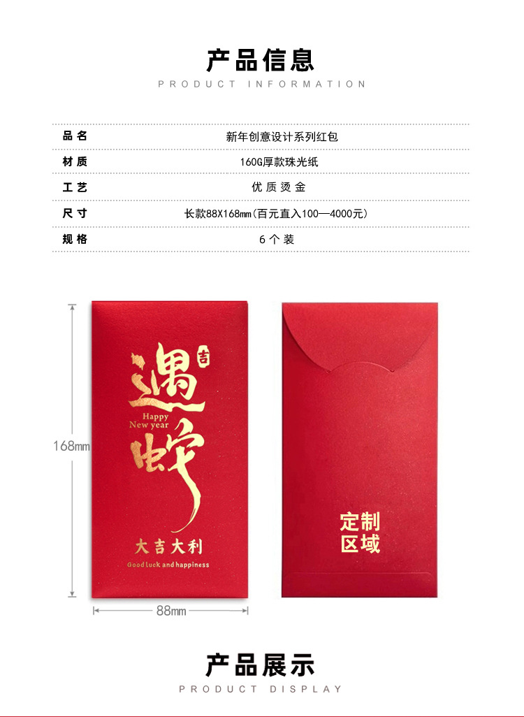 红包烫金加logo新年利是封加印字创意结婚开业烫金印刷红包袋