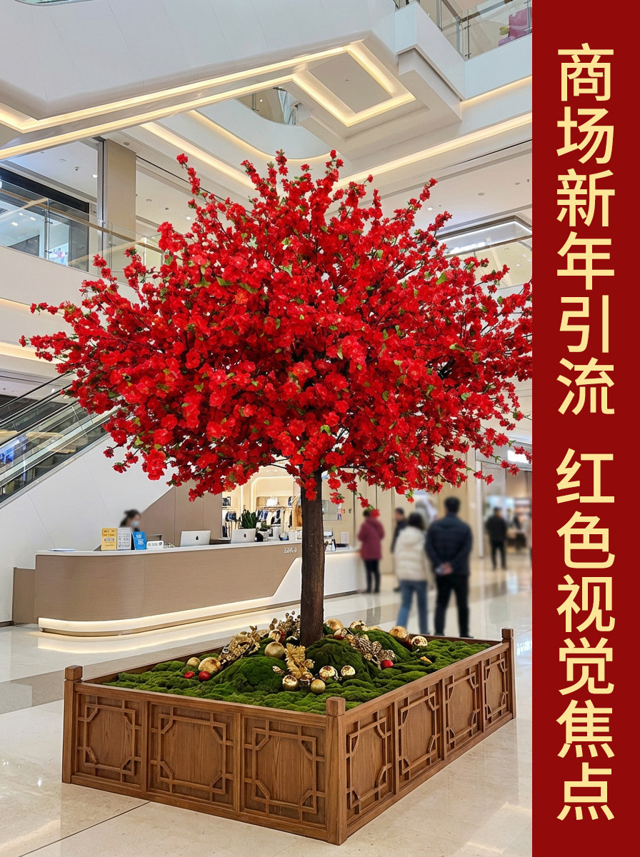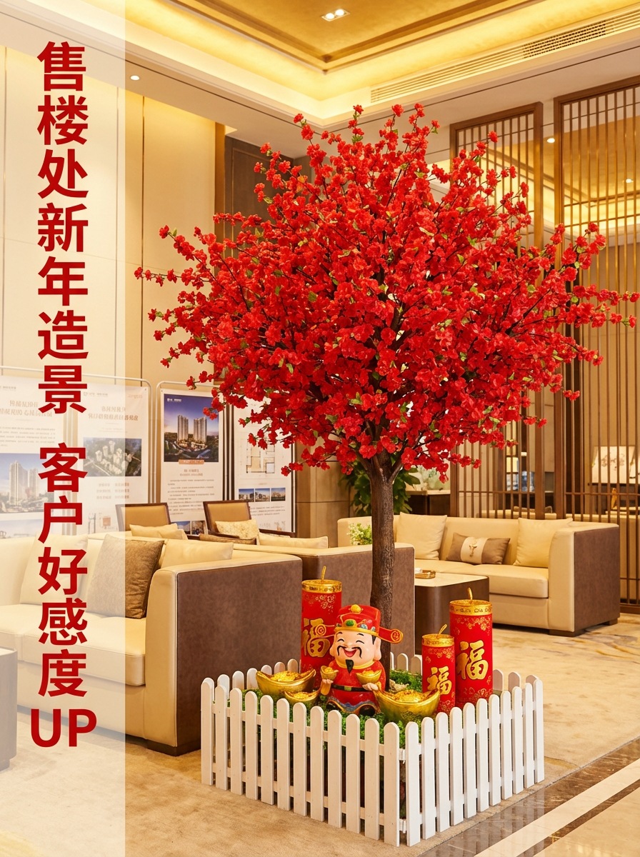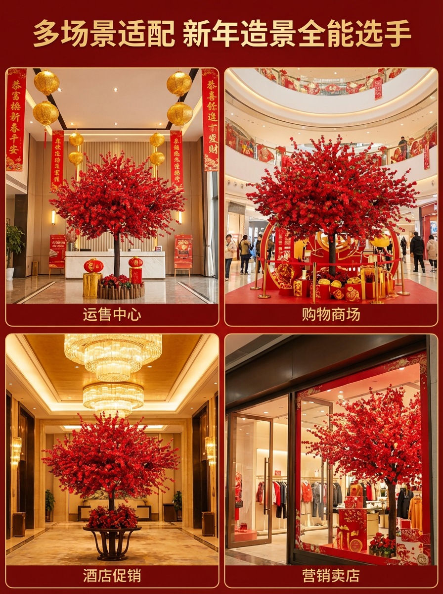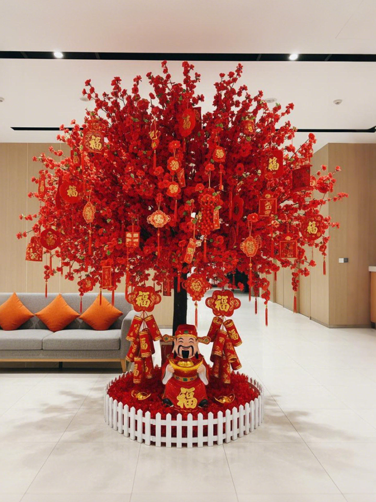 仿真桃花树红色中式国风许愿树发财红包树假树新年氛围布置装饰品