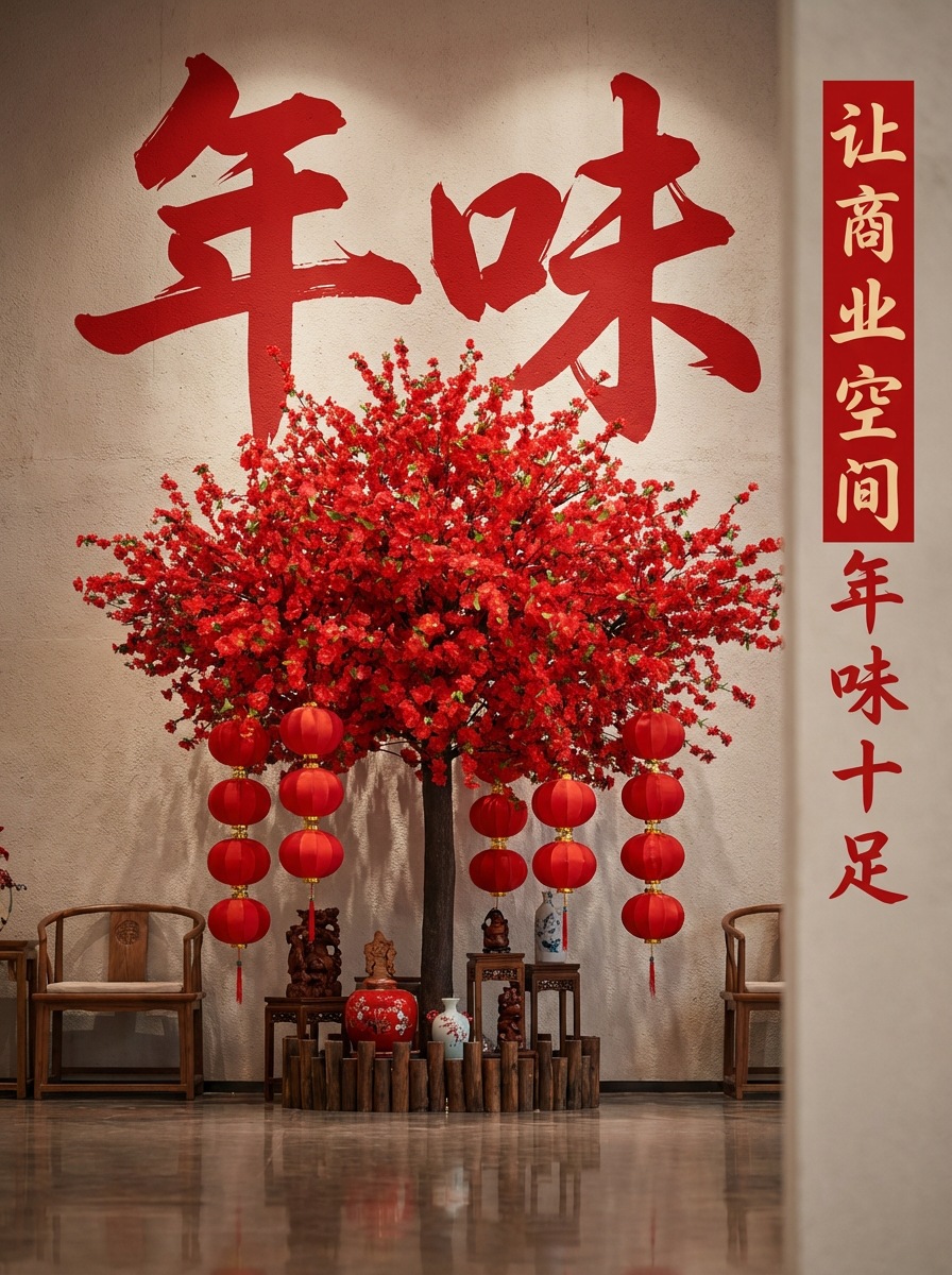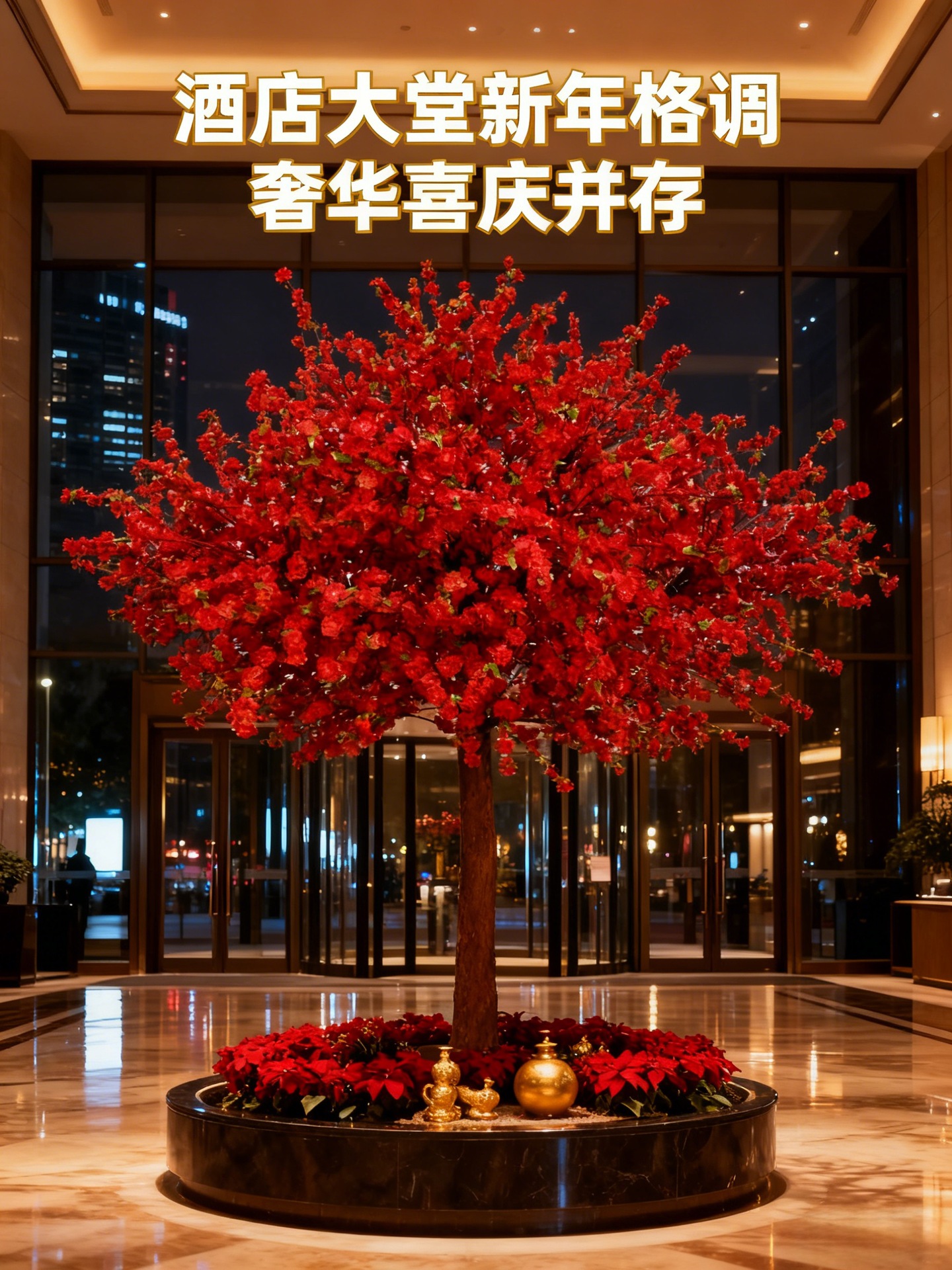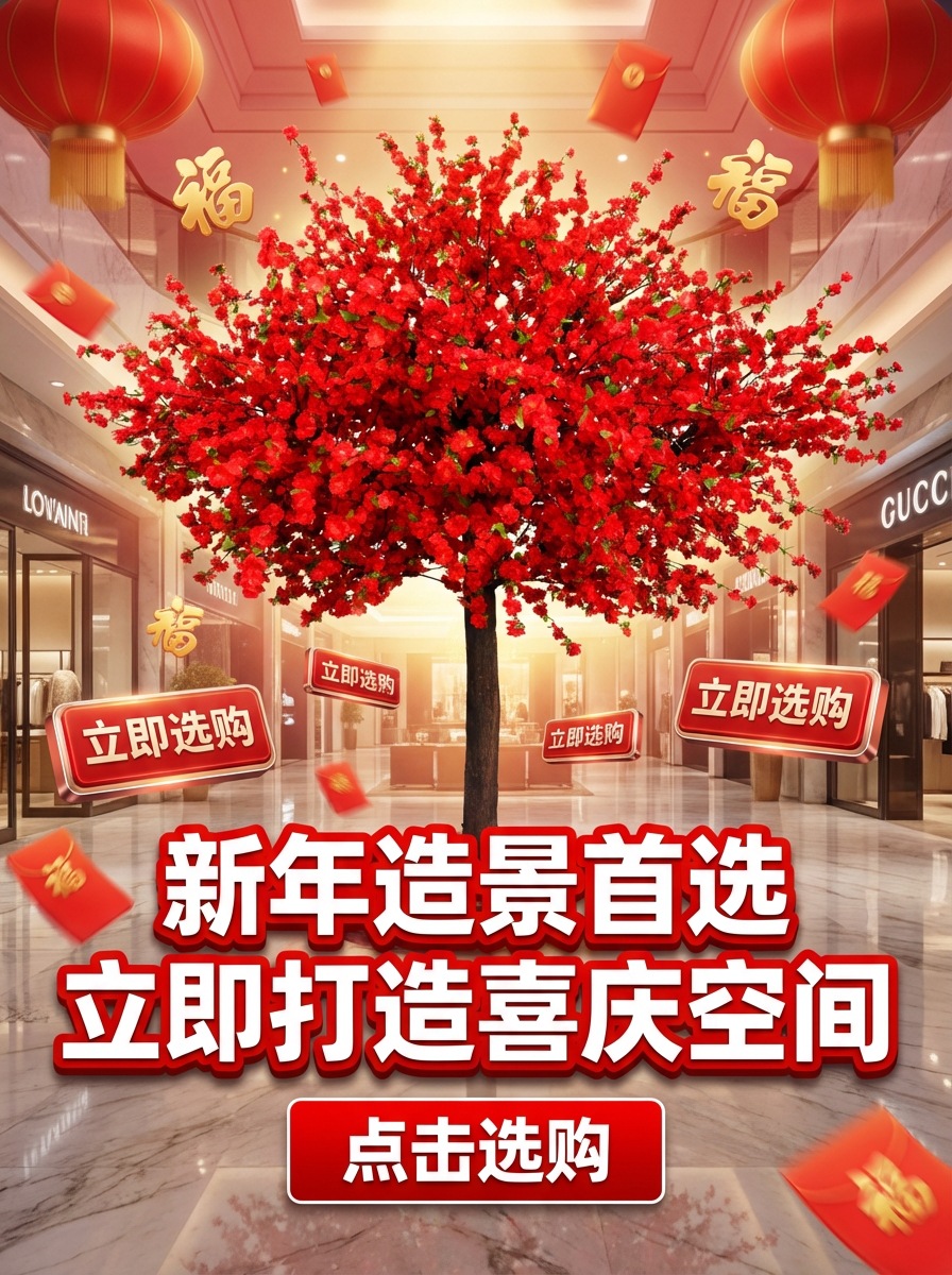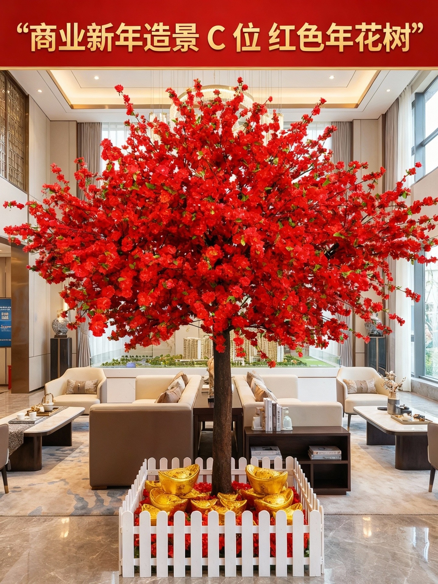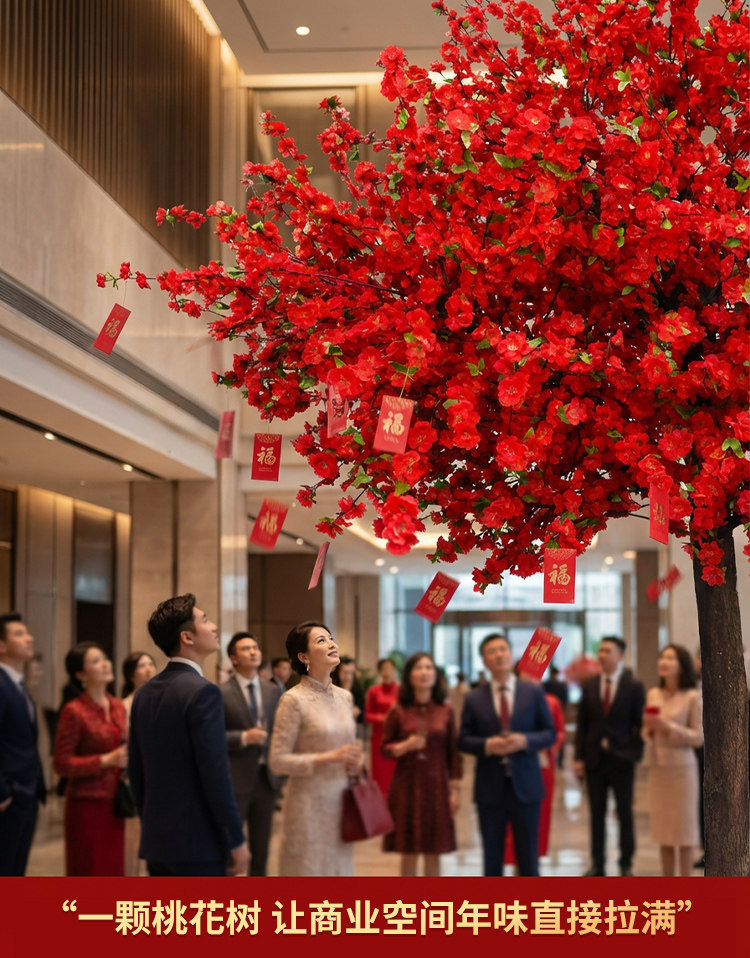 仿真桃花树红色中式国风许愿树发财红包树假树新年氛围布置装饰品