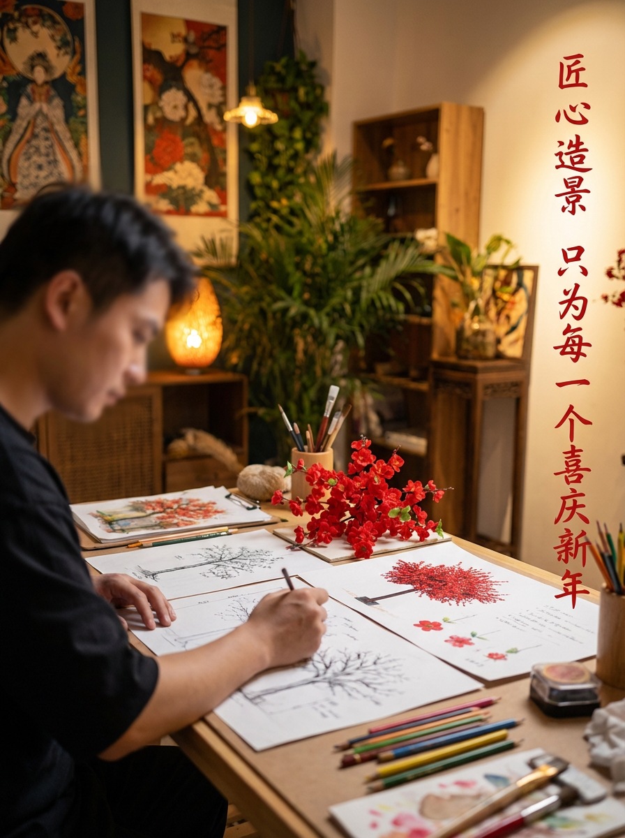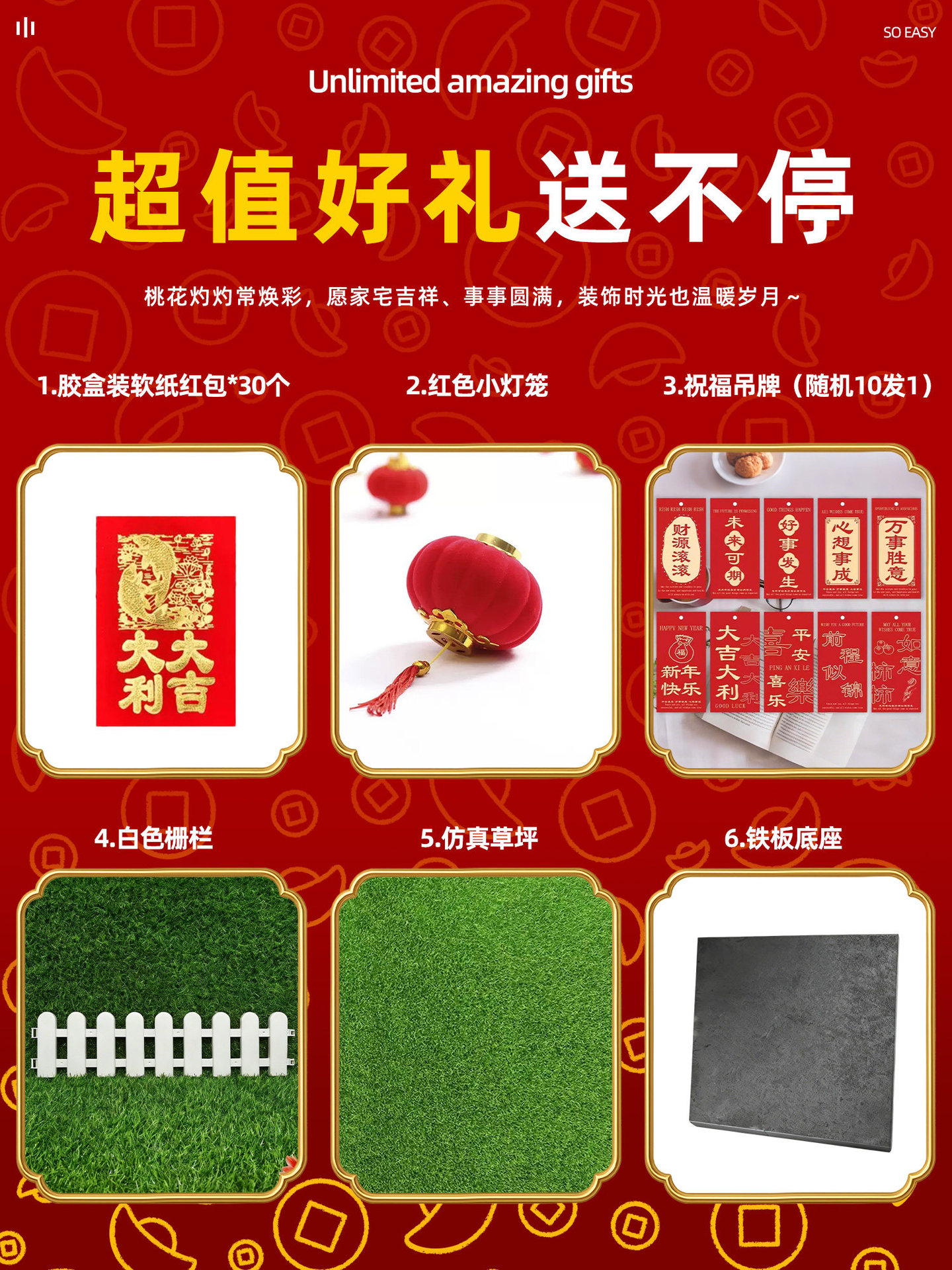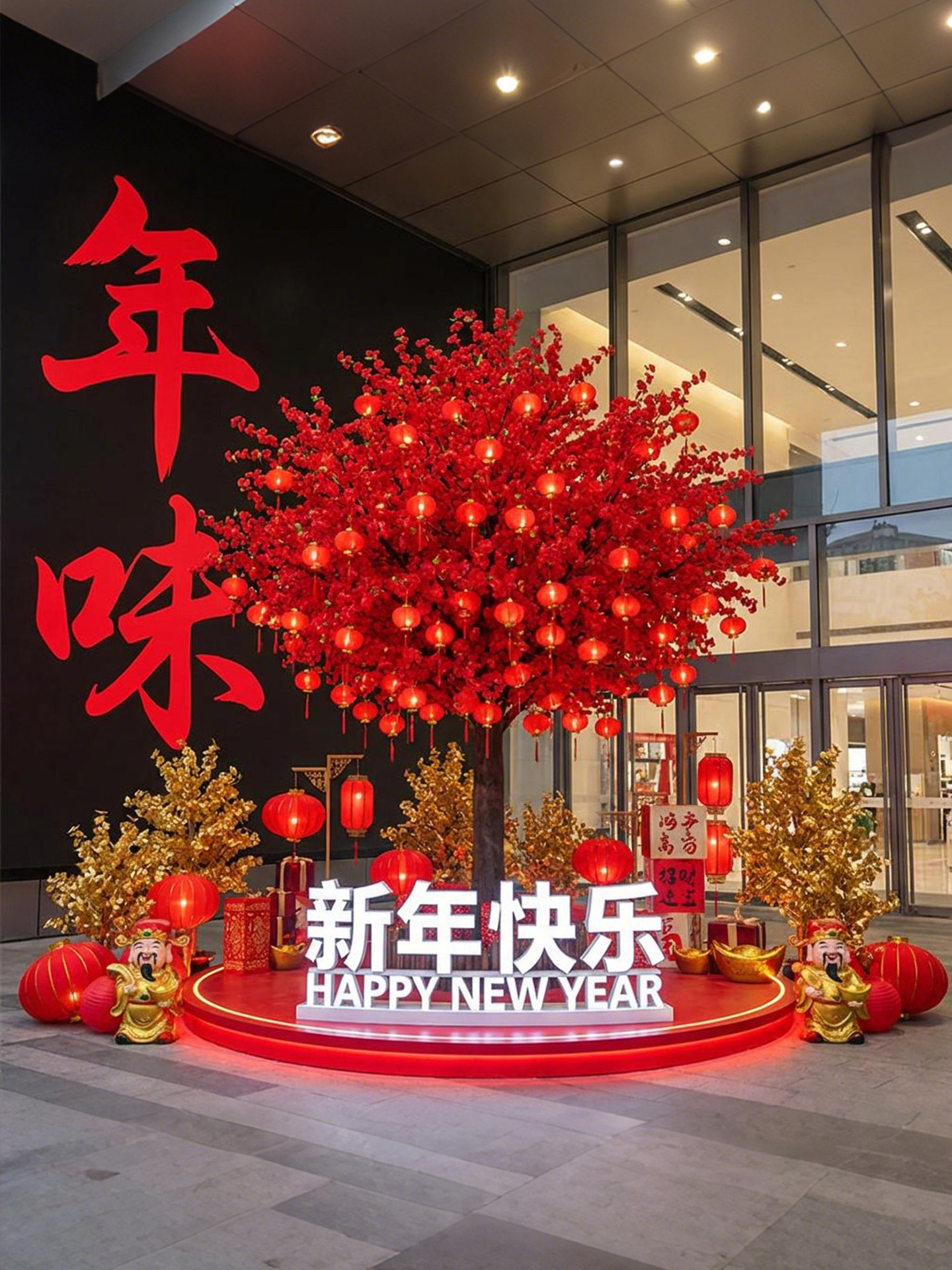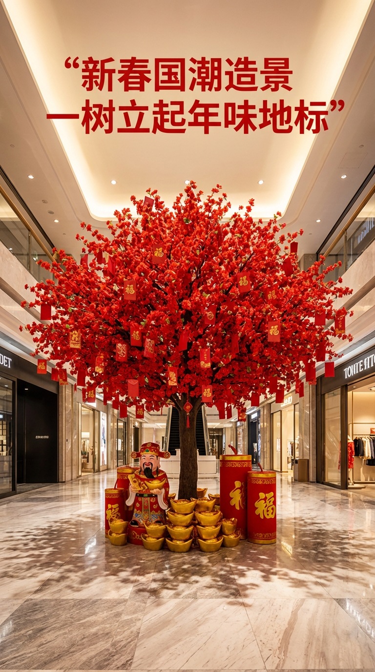 仿真桃花树红色中式国风许愿树发财红包树假树新年氛围布置装饰品