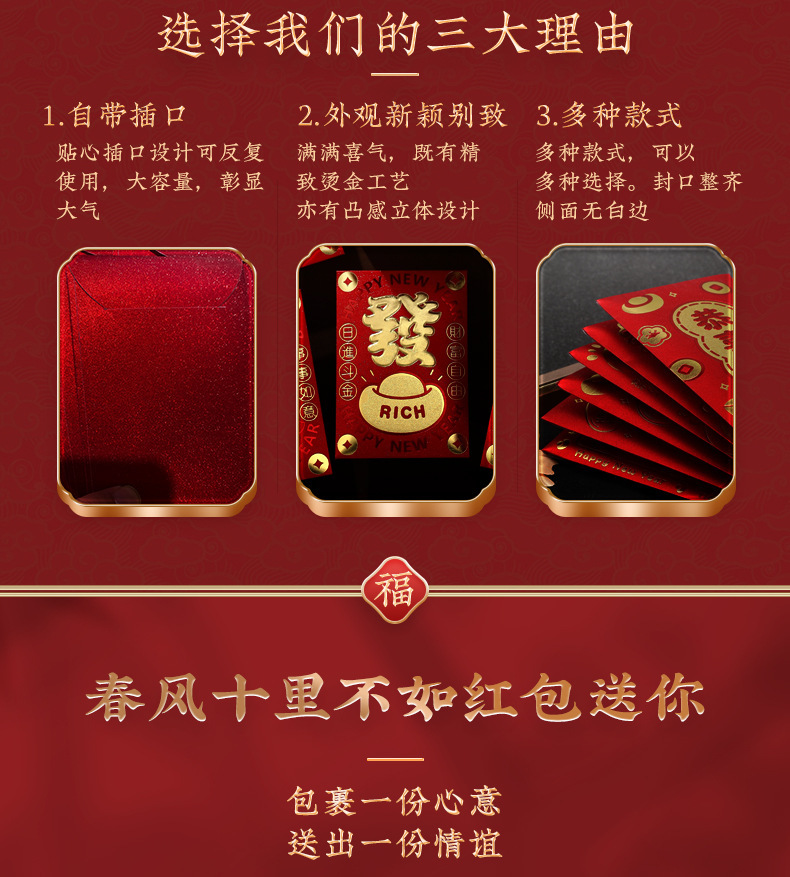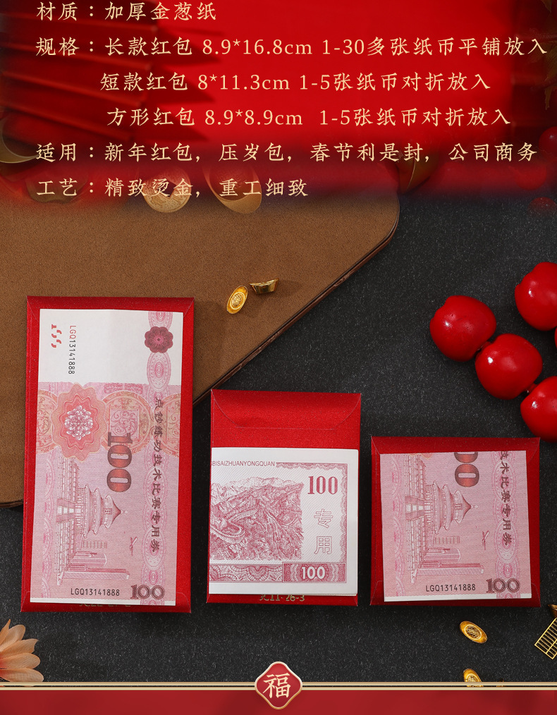 2026创意烫金新年马年红包定制千元中式加厚利是封包压岁过年百元