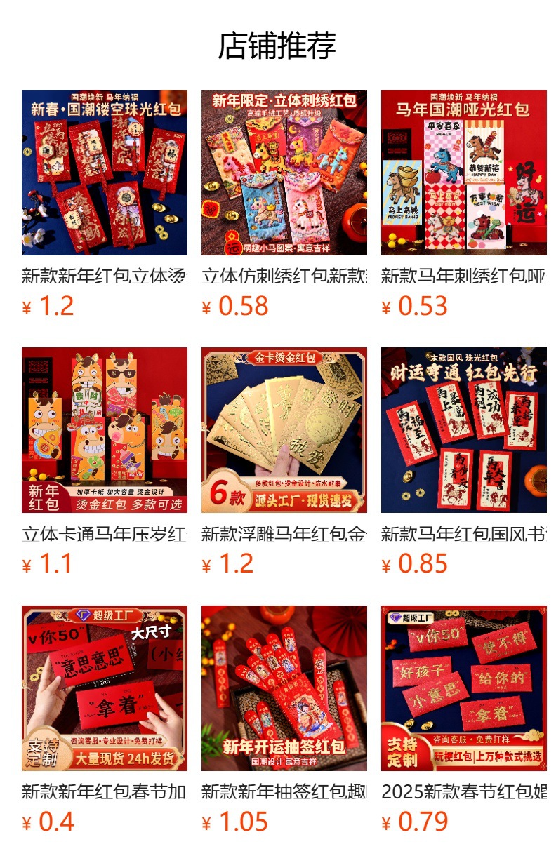 新年马年毛绒刺绣红包可爱创意2026红包袋儿童压岁过年红封包批发