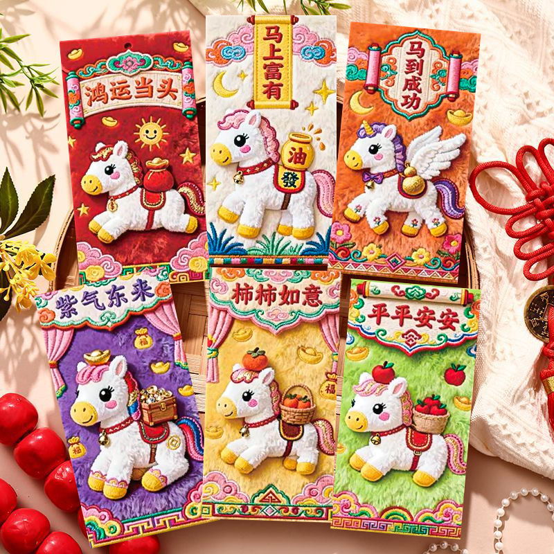 批发马年刺绣红包个性创意新年卡通可爱红包袋春节压岁包利是封