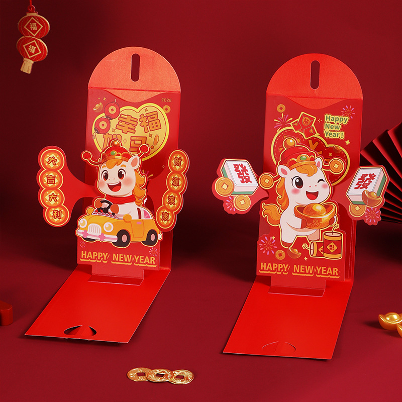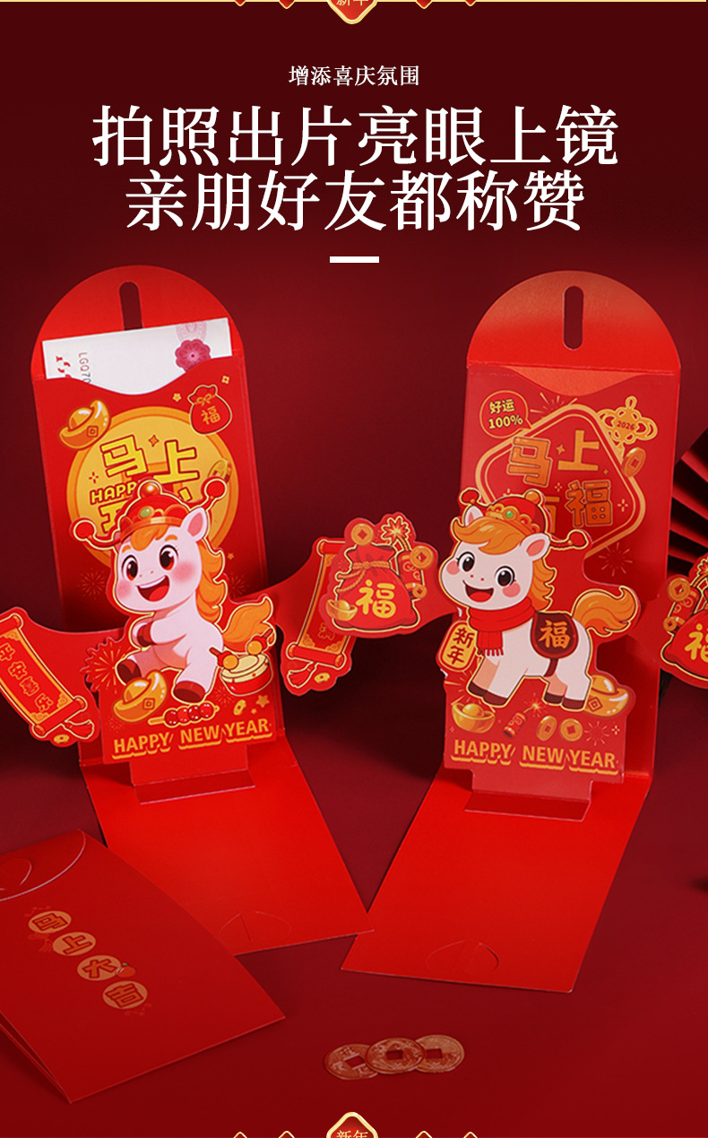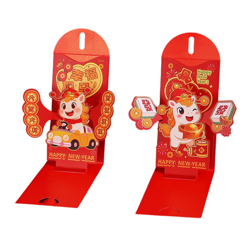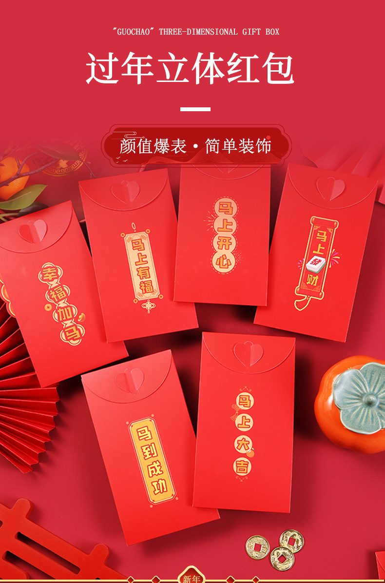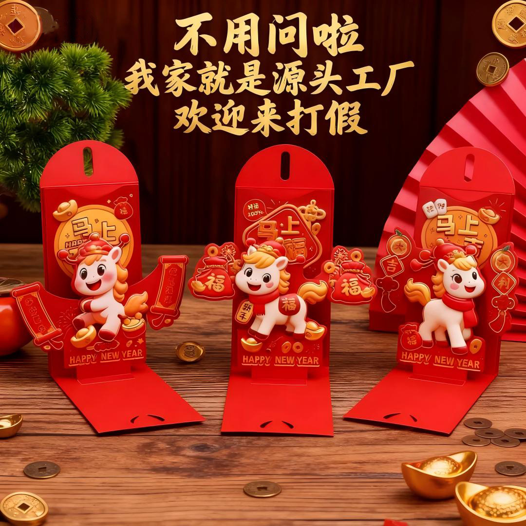 新年马年红封包过年新款3D立体创意折叠新年利是封春节红包定制