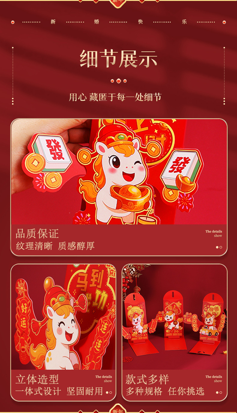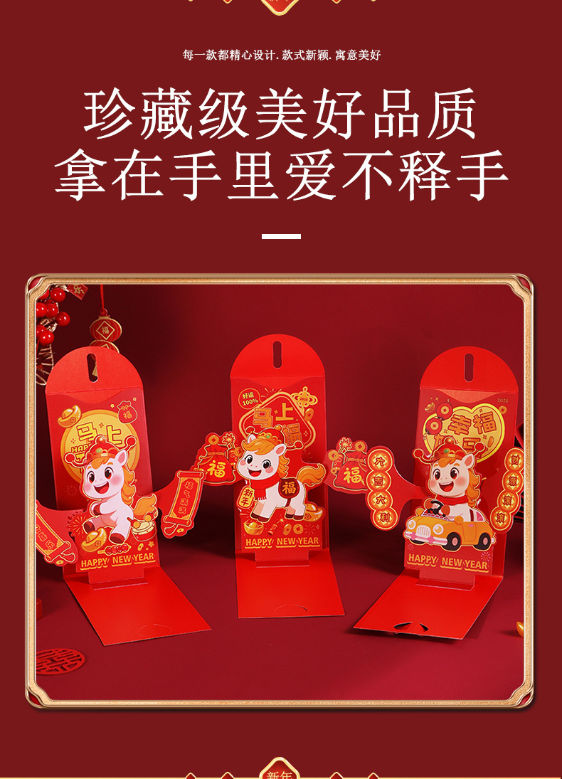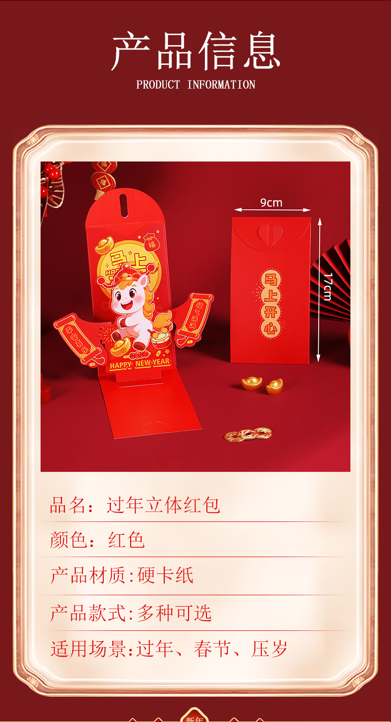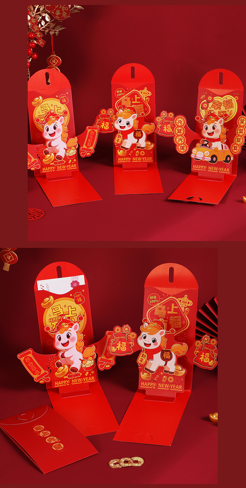 新年马年红封包过年新款3D立体创意折叠新年利是封春节红包定制