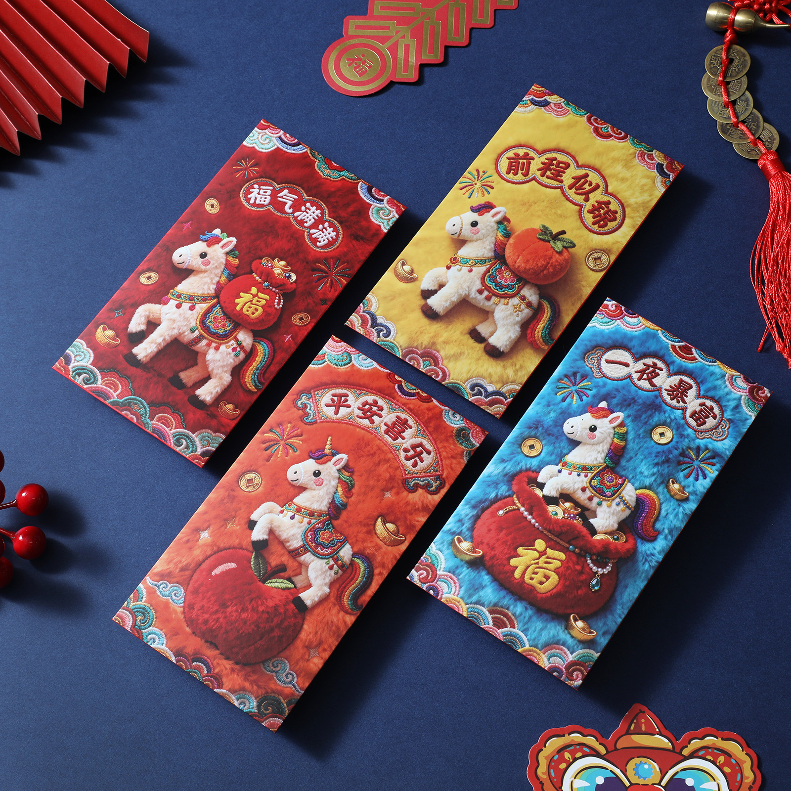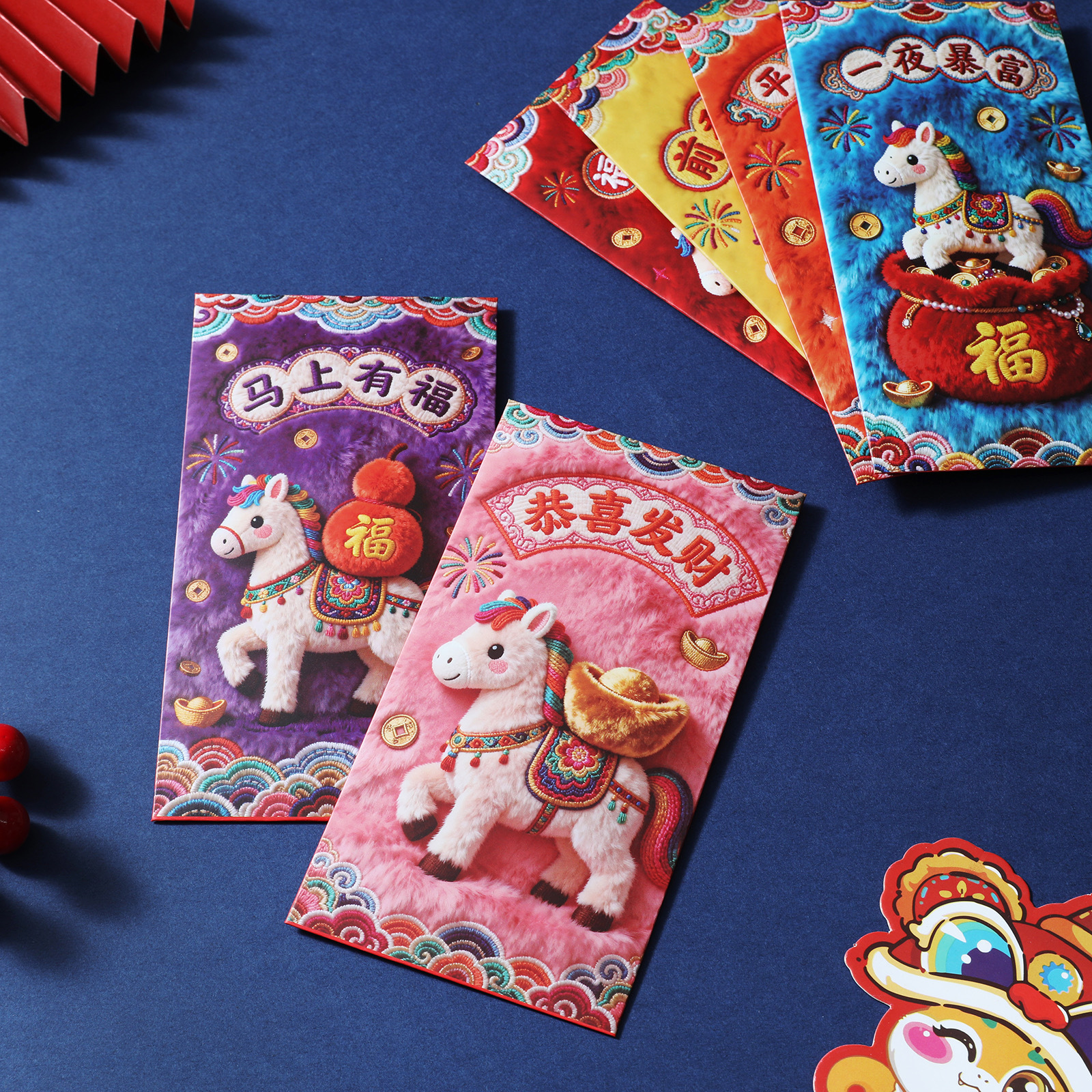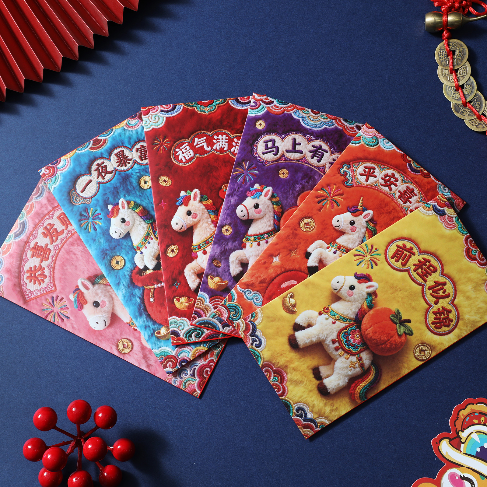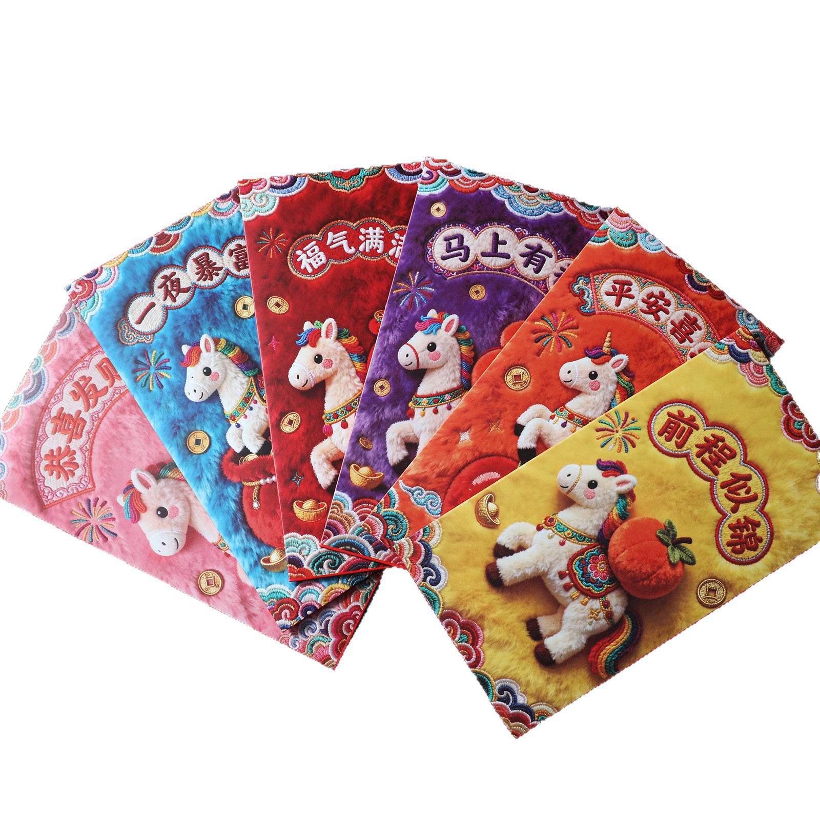马年卡通红包创意可爱2026过年春节压岁钱仿刺绣毛绒封包立体国潮