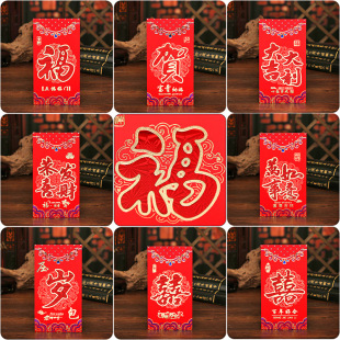 红包【硬卡纸系列】福贺大吉大利财囍压岁包烫金红包利是封