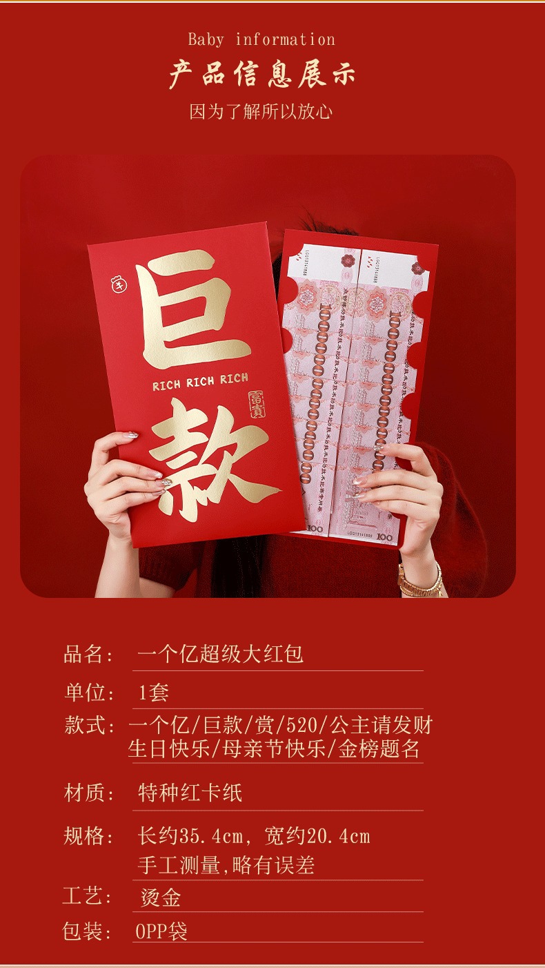 2025新款超大红包超大尺寸红包创意个性晒圈生日仪式感利是封批发