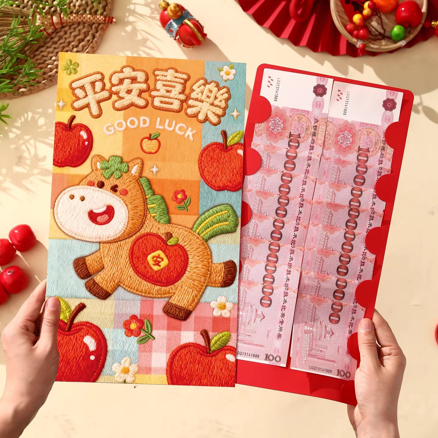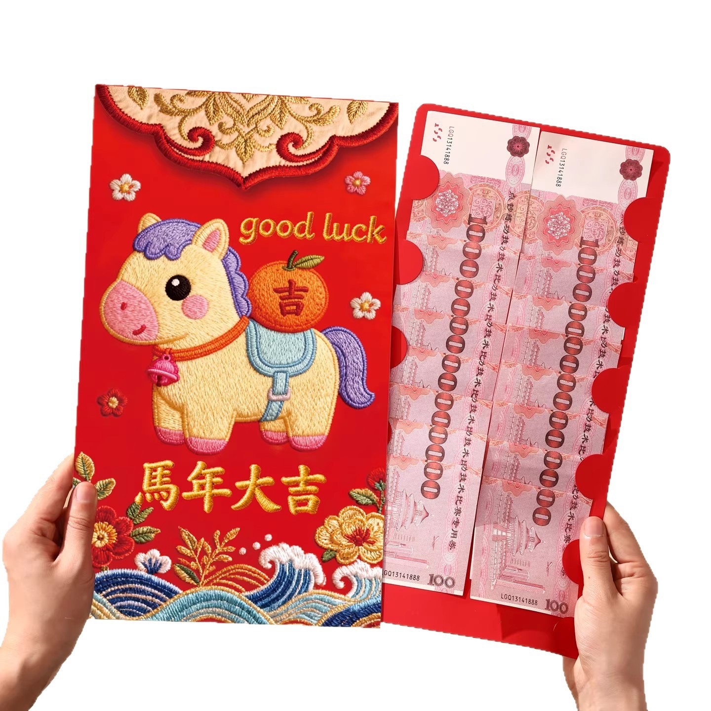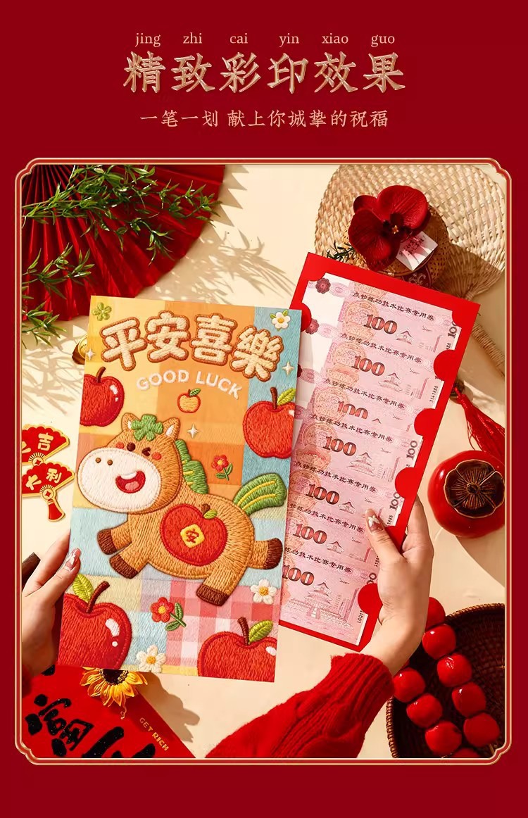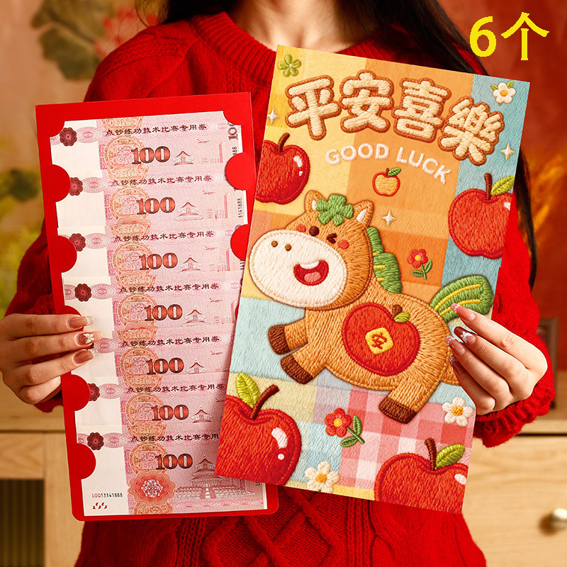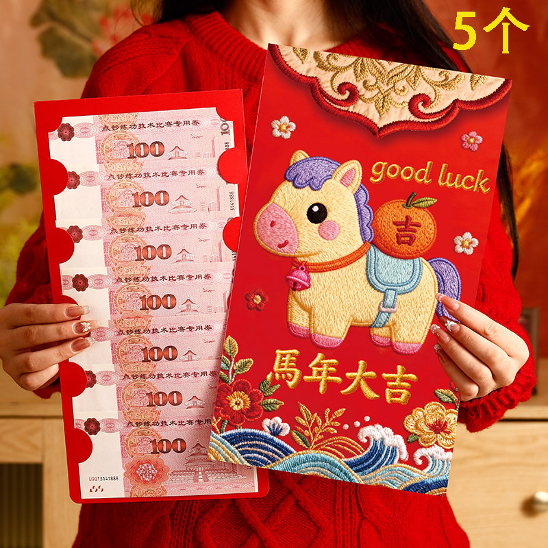 马年卡通刺绣小马红包超大号2026年创意过年万元大利是封包压岁包
