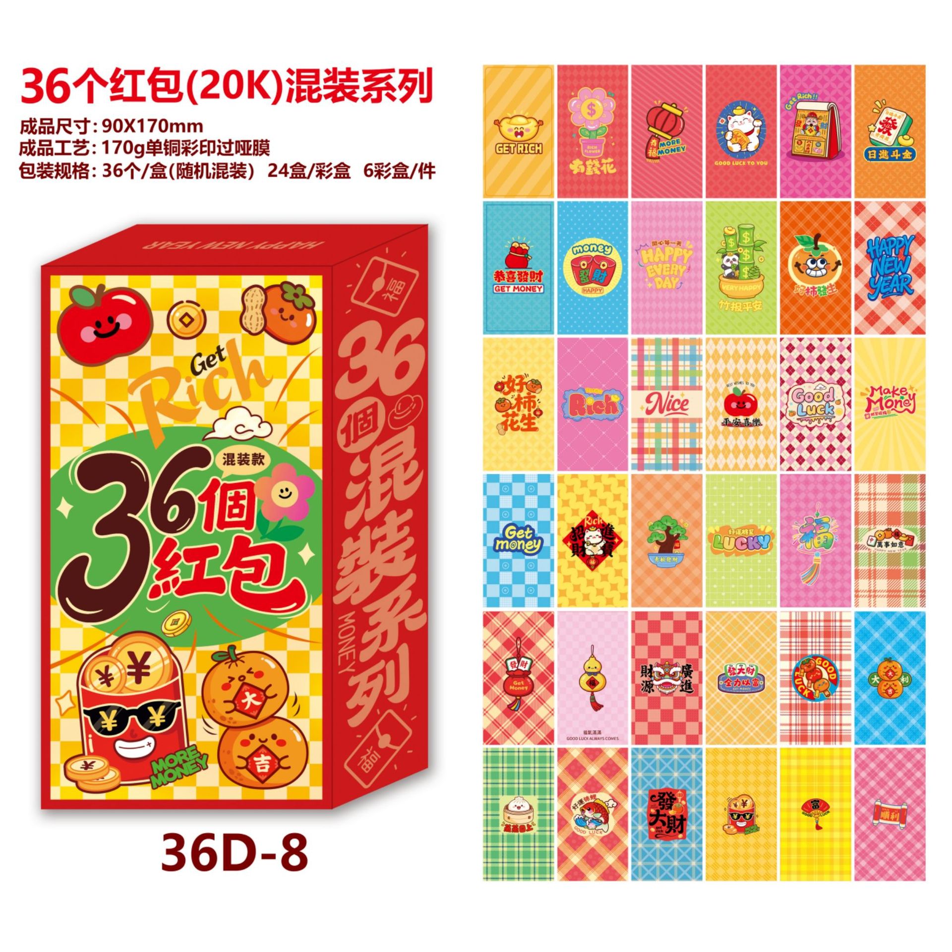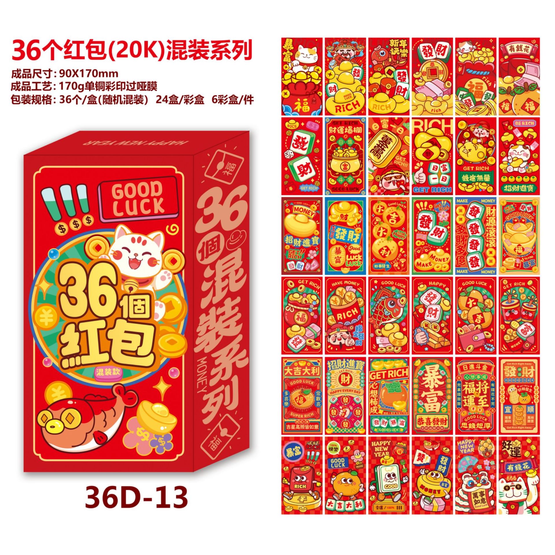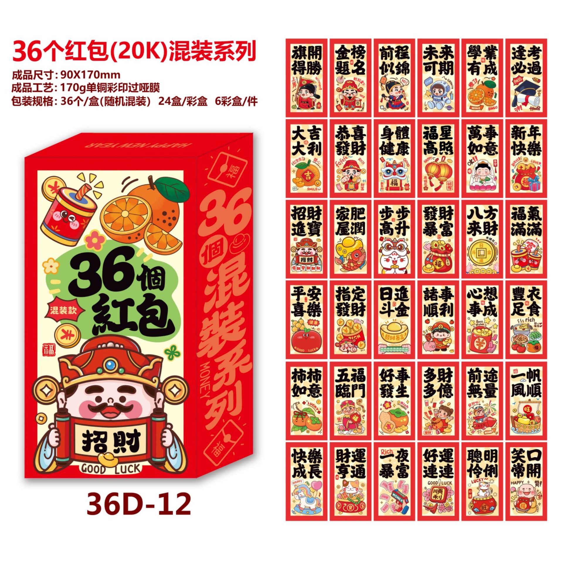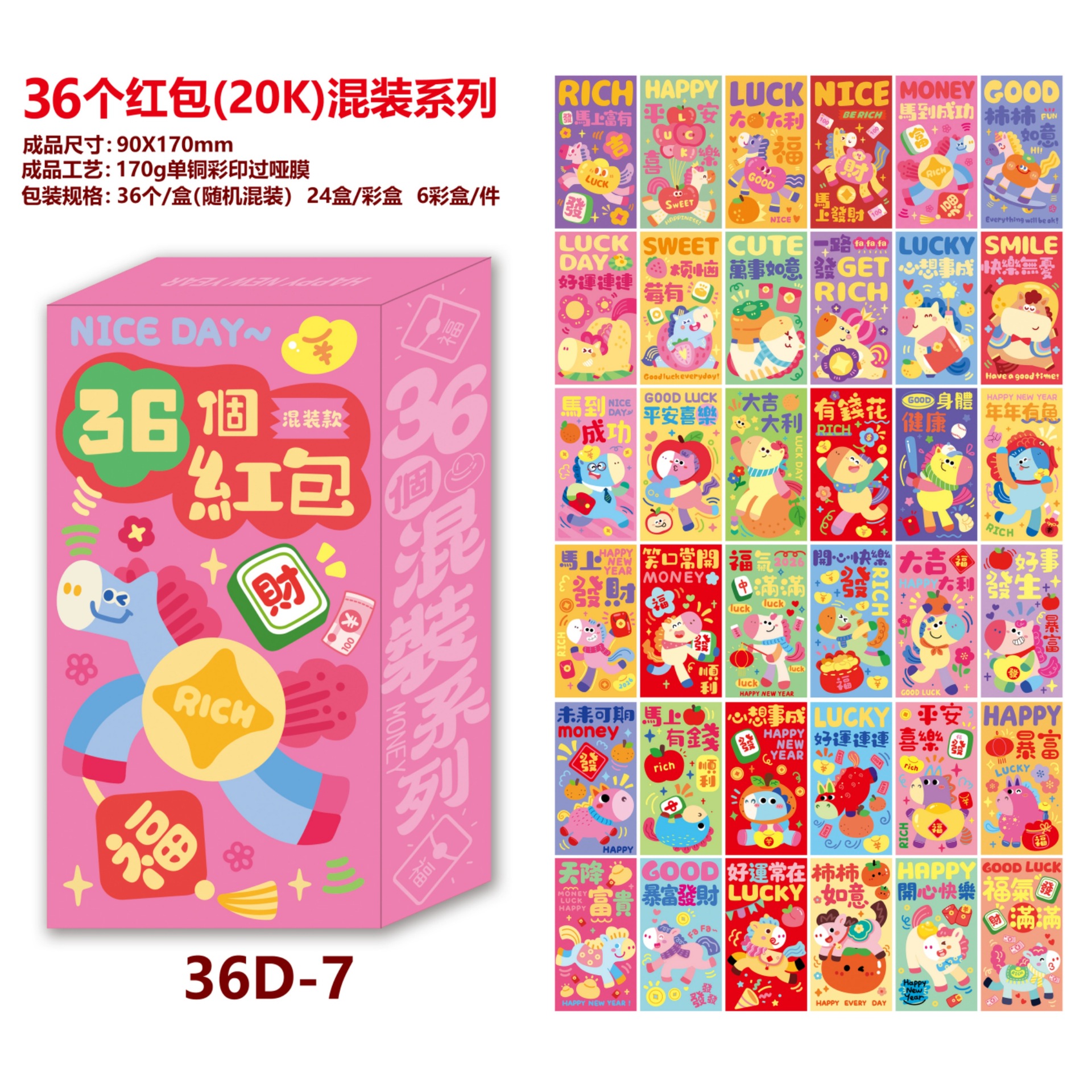 马年卡通红包36个盒装混款2026新年小红包红封包通用过年利是封包