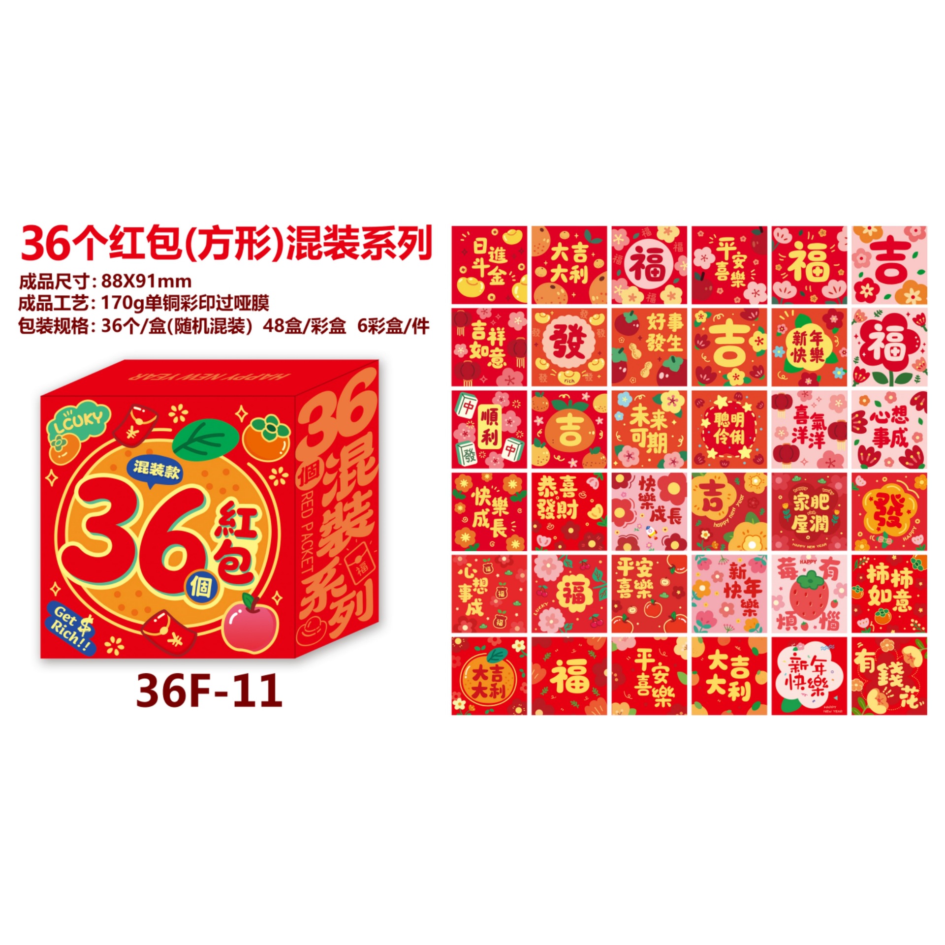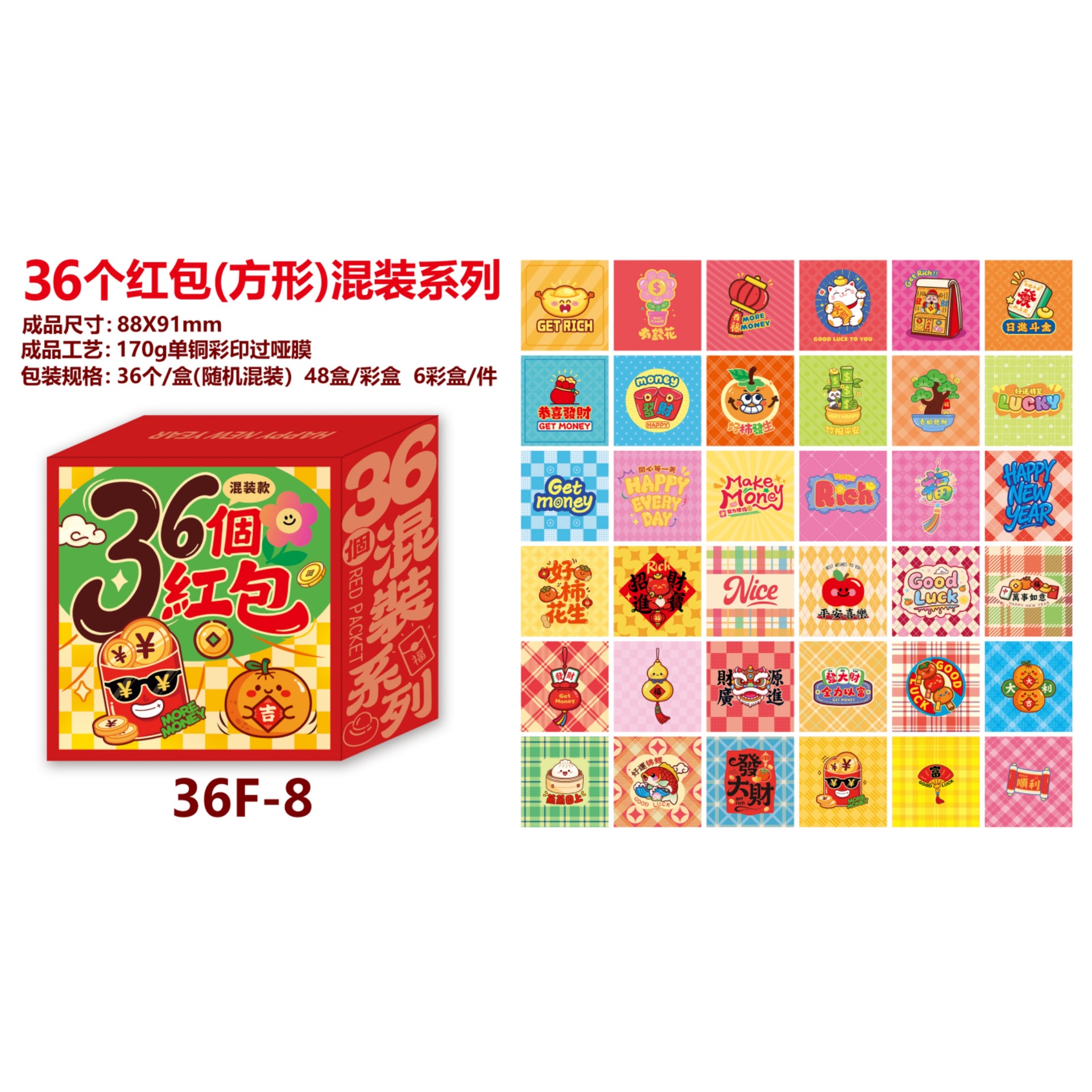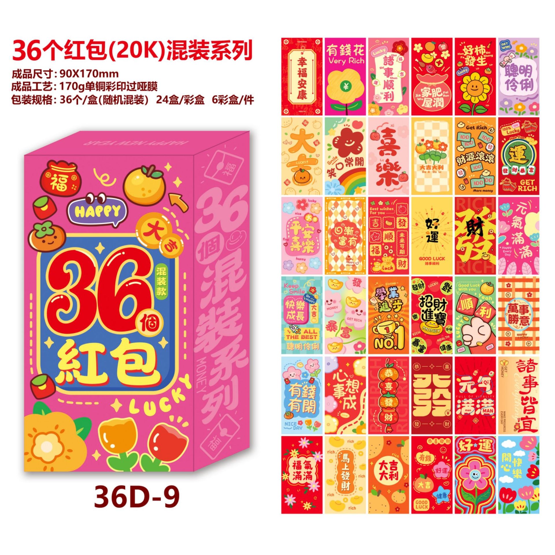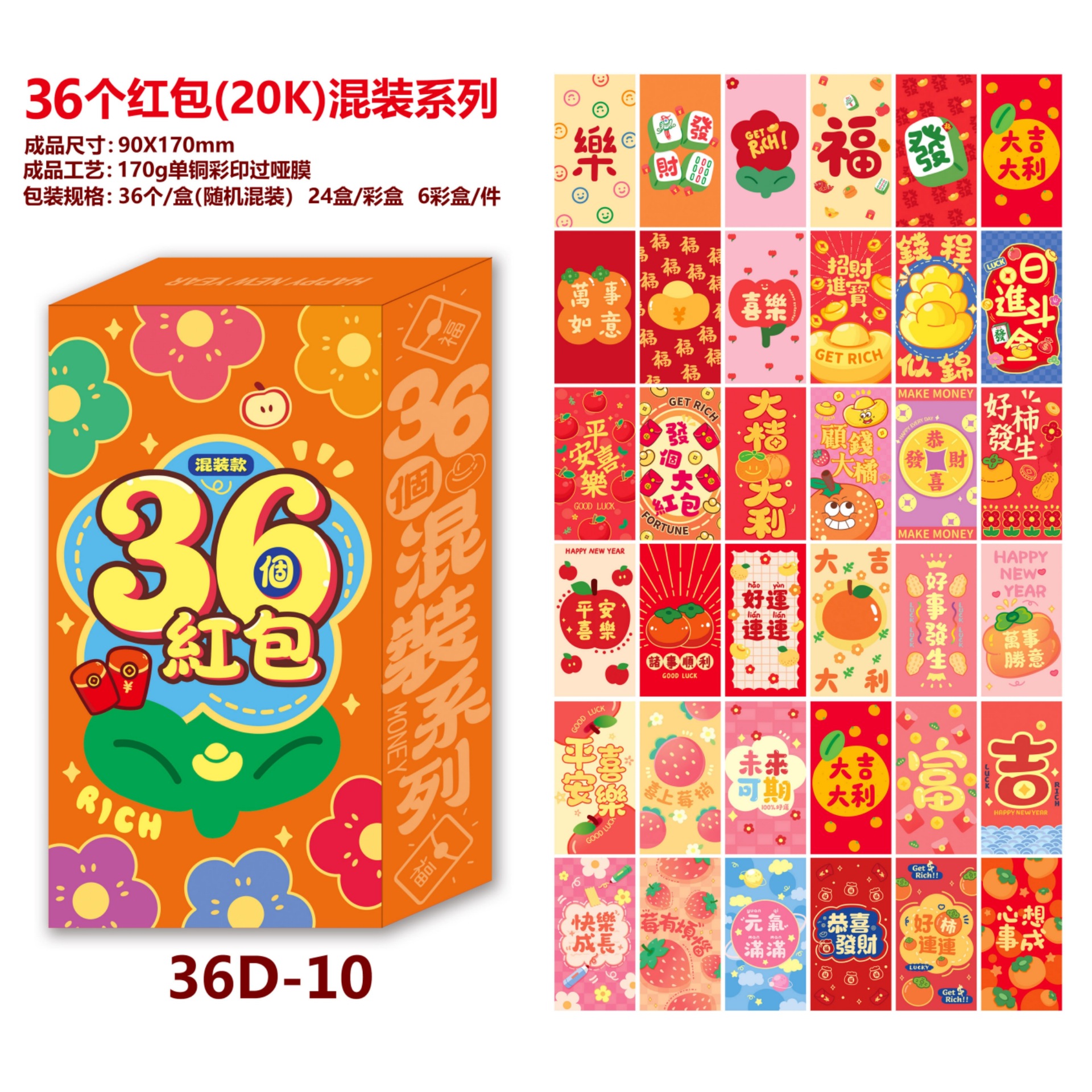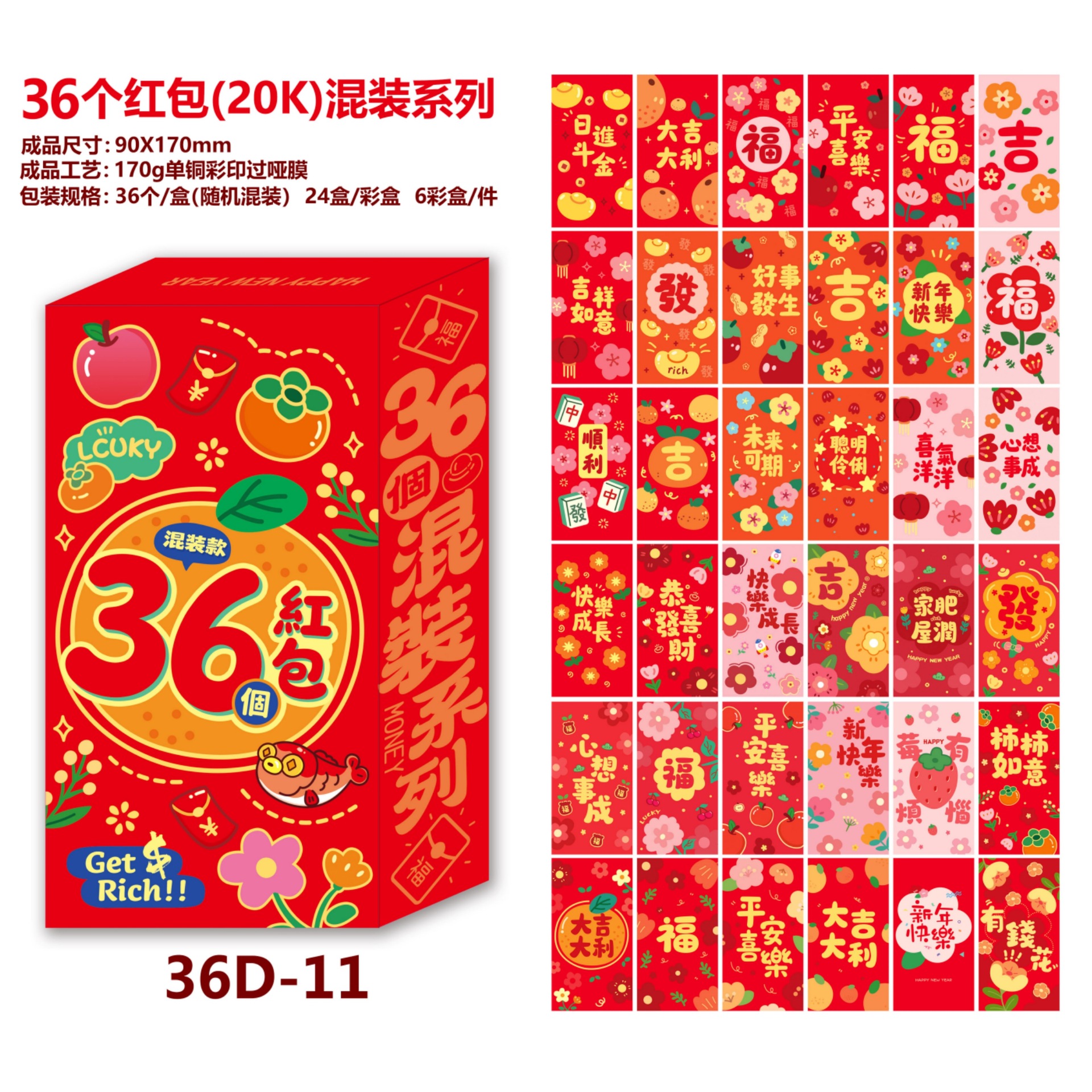 马年卡通红包36个盒装混款2026新年小红包红封包通用过年利是封包