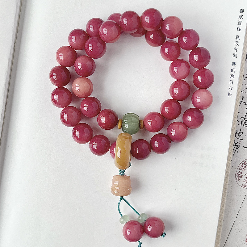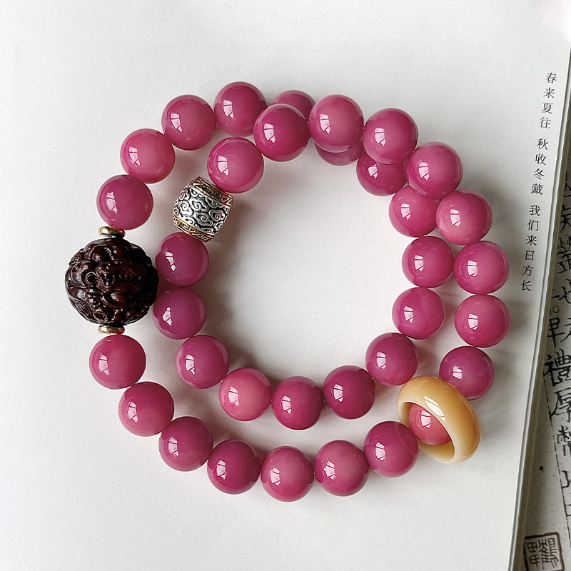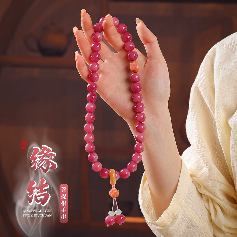 批发价爆款乌梅子酱圆珠菩提手串国风双圈手持百搭文盘玩佛珠手链