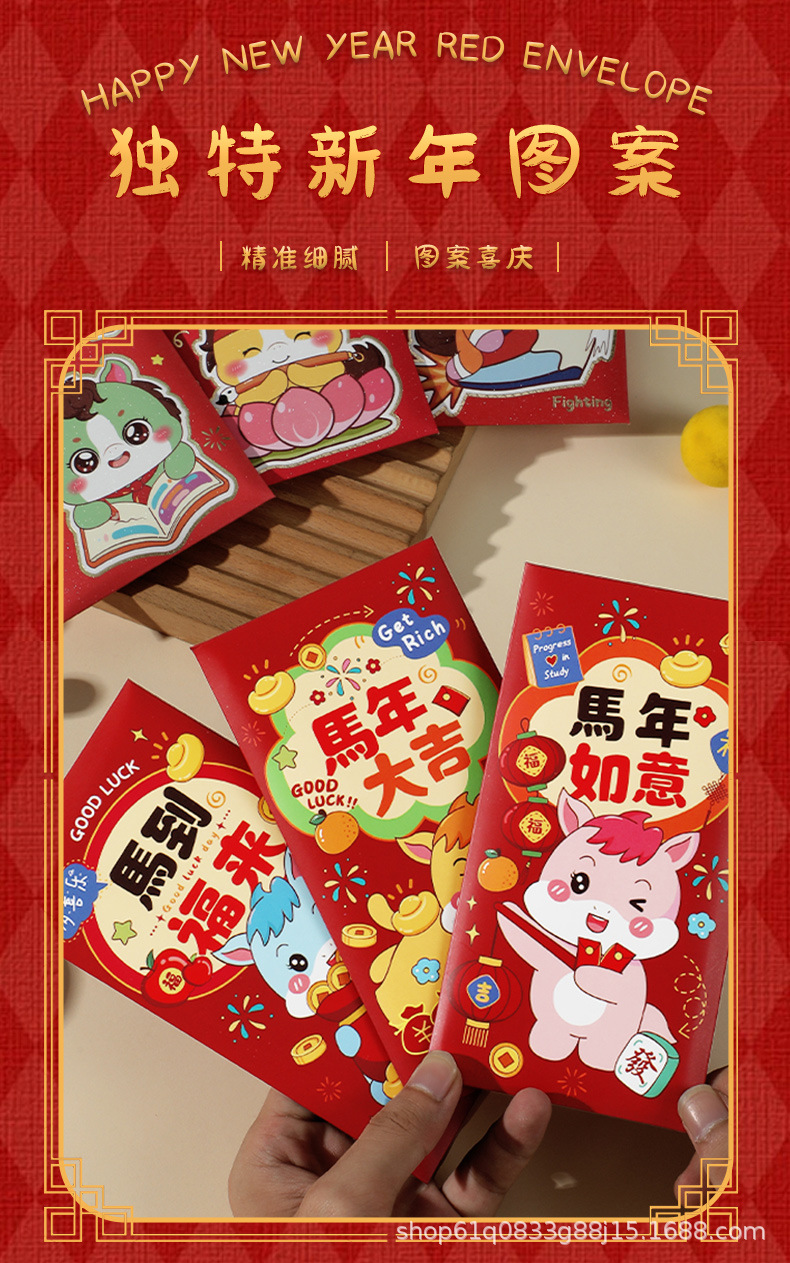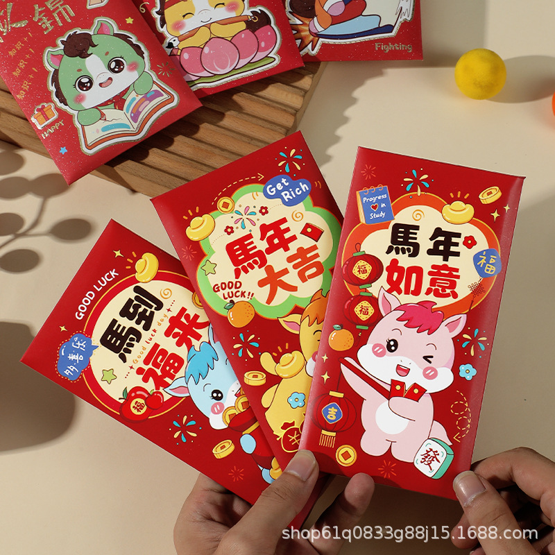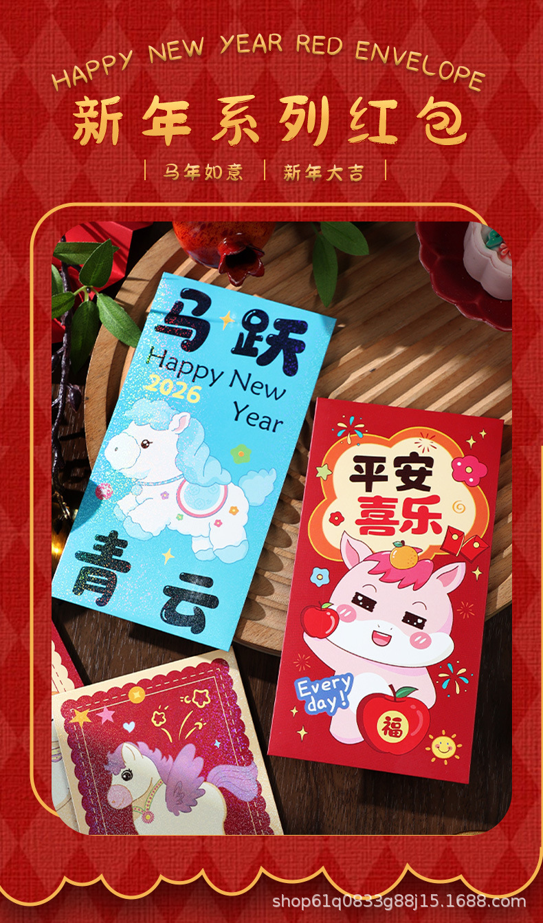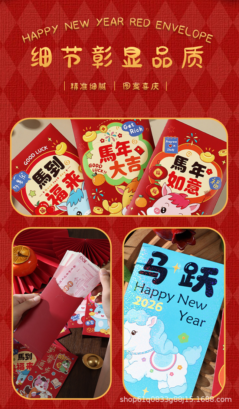 马年红包2026卡通生肖创意国风马到成功利是新春大号长款压岁红包