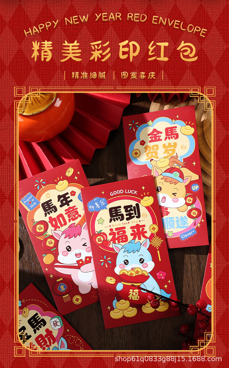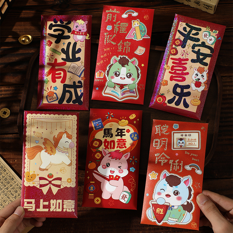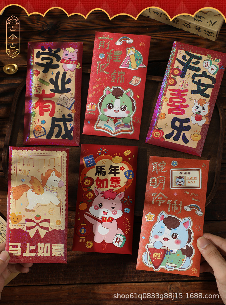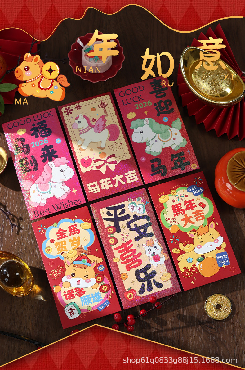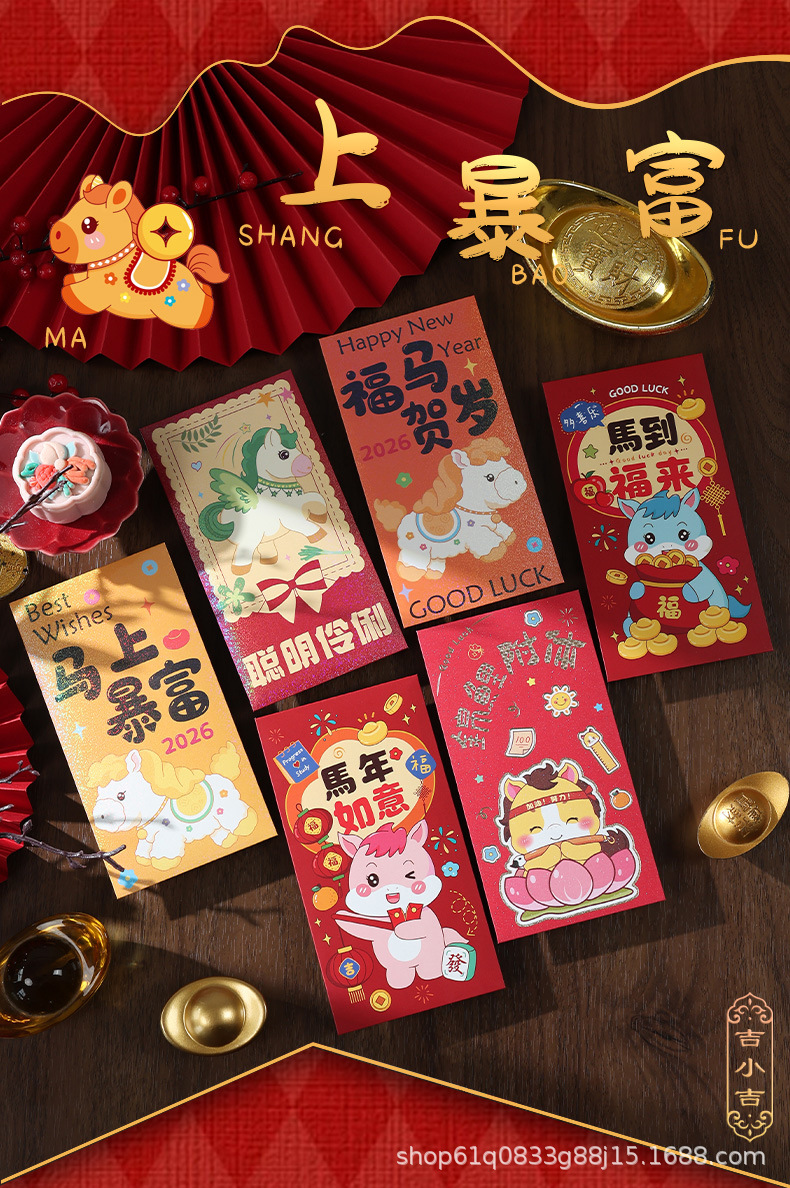 马年红包2026卡通生肖创意国风马到成功利是新春大号长款压岁红包