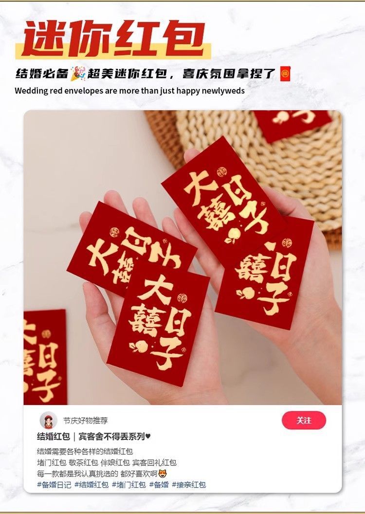 迷你创意结婚用新婚堵门红包接亲开门手抛撒钱喜字利是封红包袋子