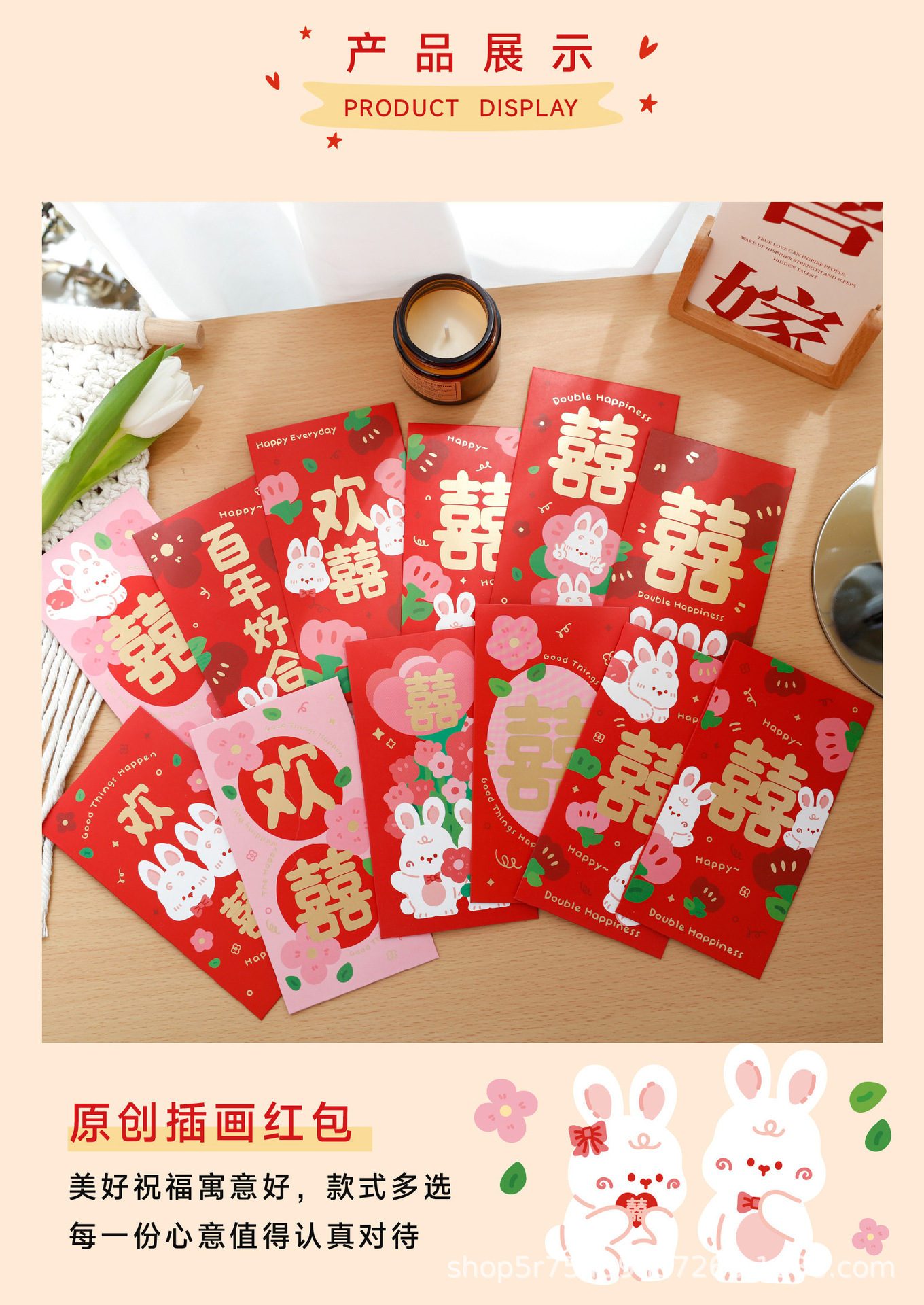 喵述可爱兔子系列婚礼红包原创喜庆结婚回礼可爱创意千元利是封