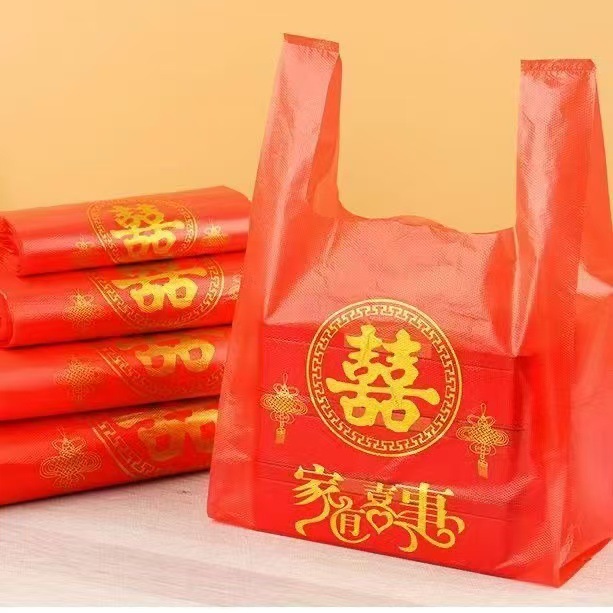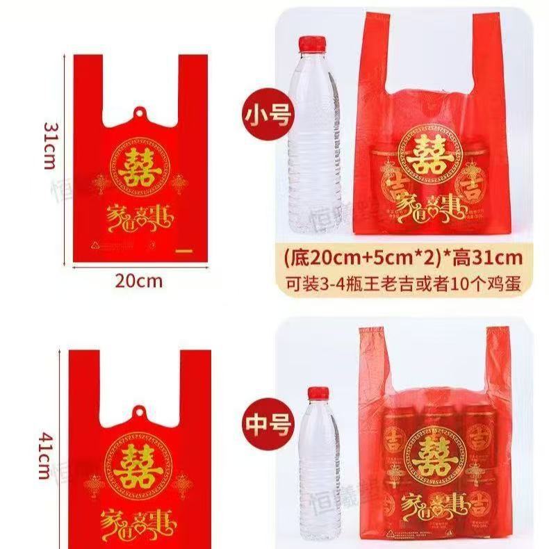 家有喜事婚庆过年福字袋喜字袋 红色金字袋结婚满月喜事塑料袋