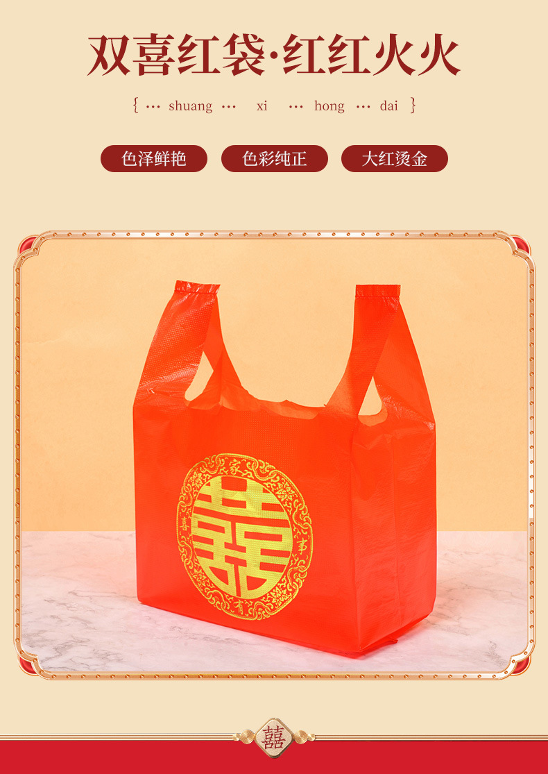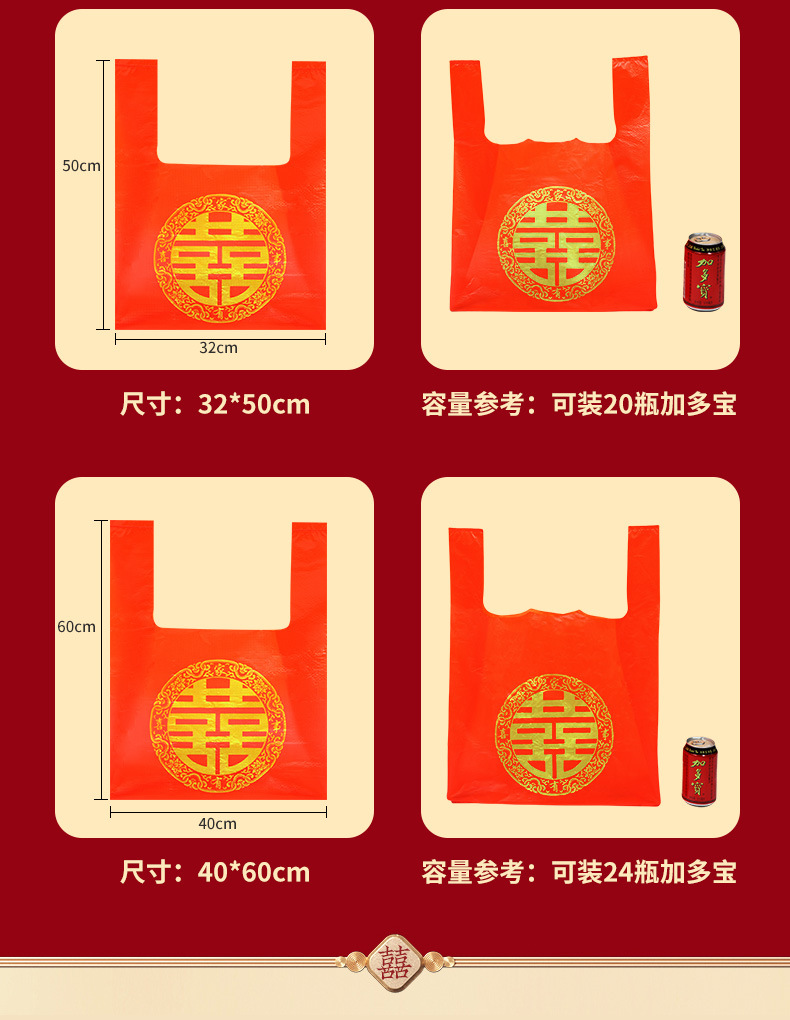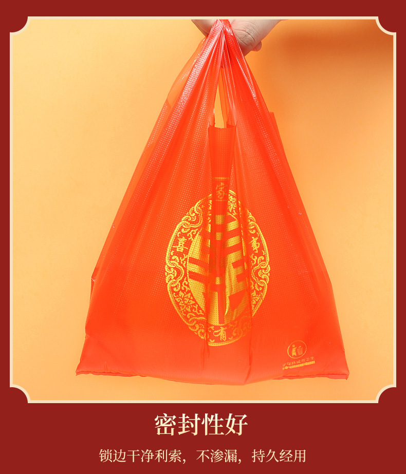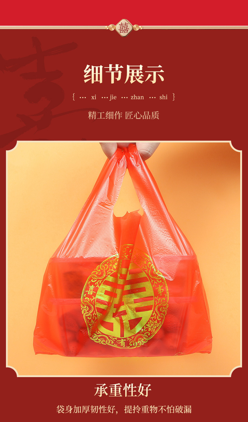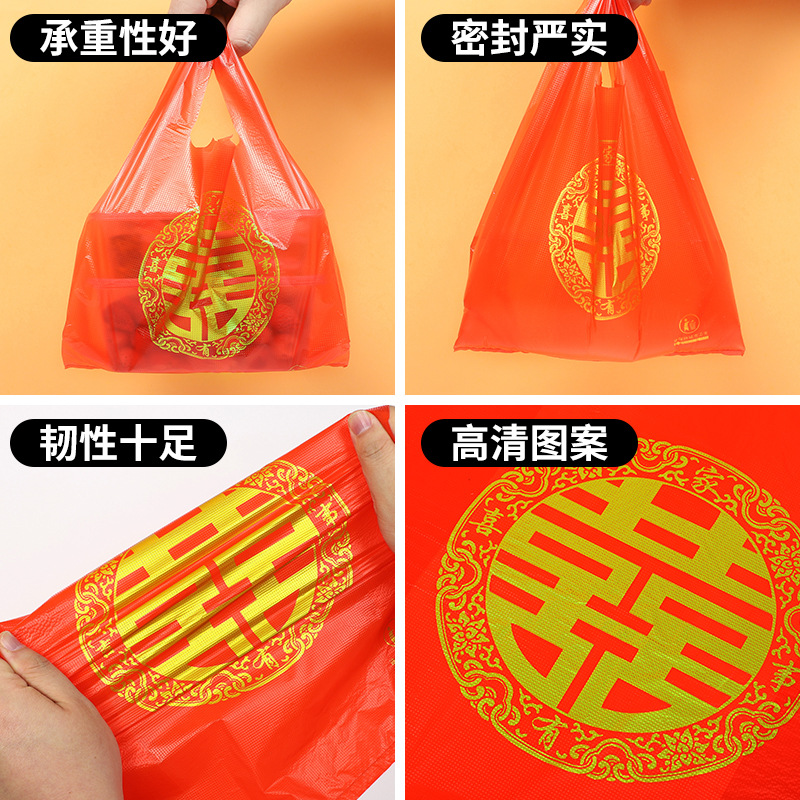 红色加厚款塑料袋双喜打包背心袋结婚手提方便袋喜事打包袋
