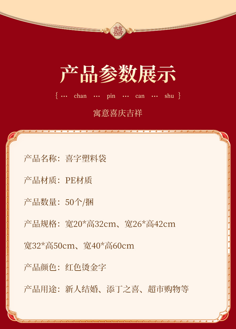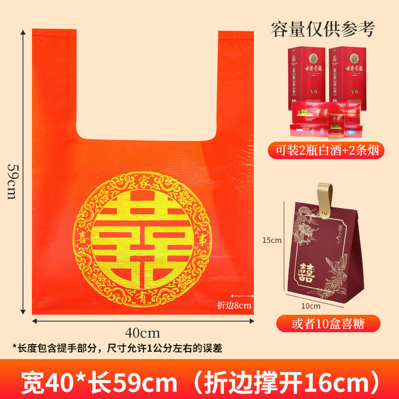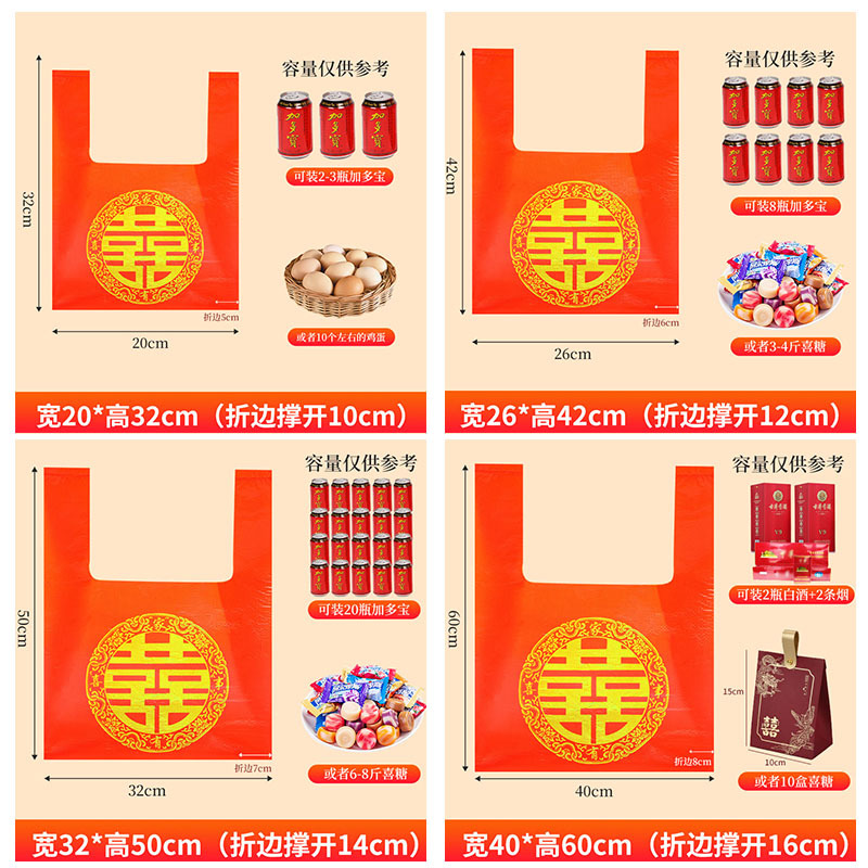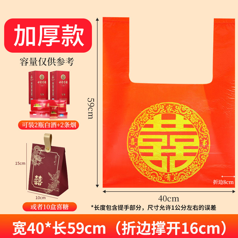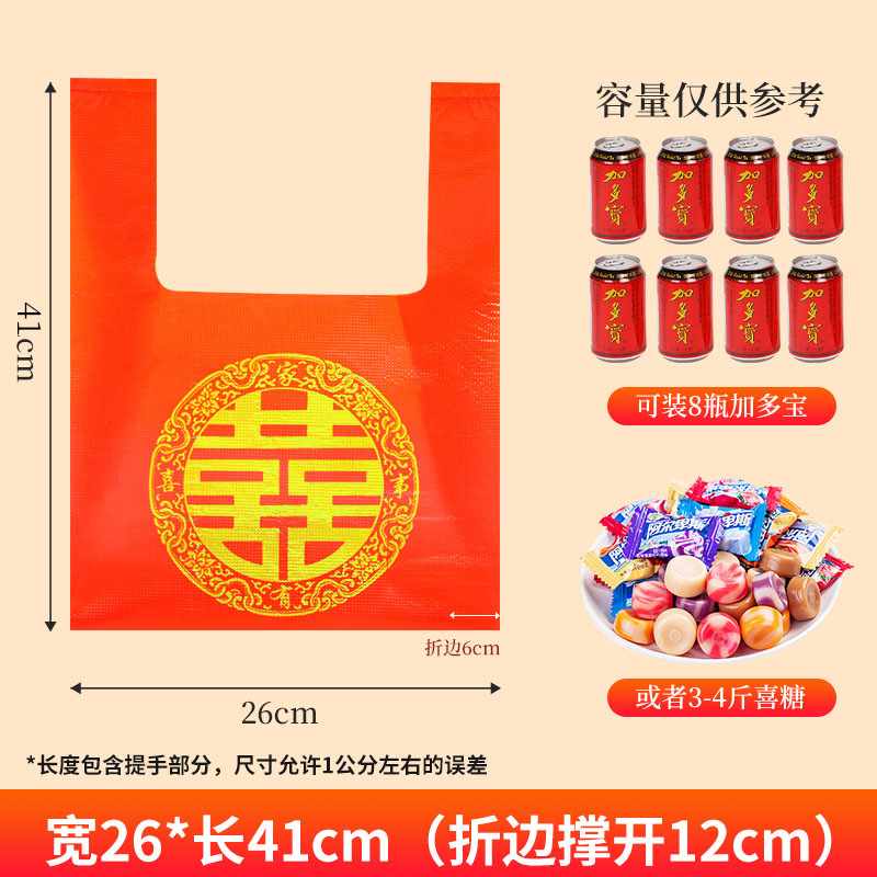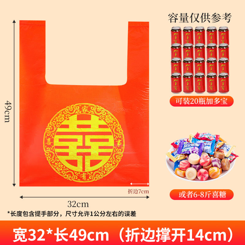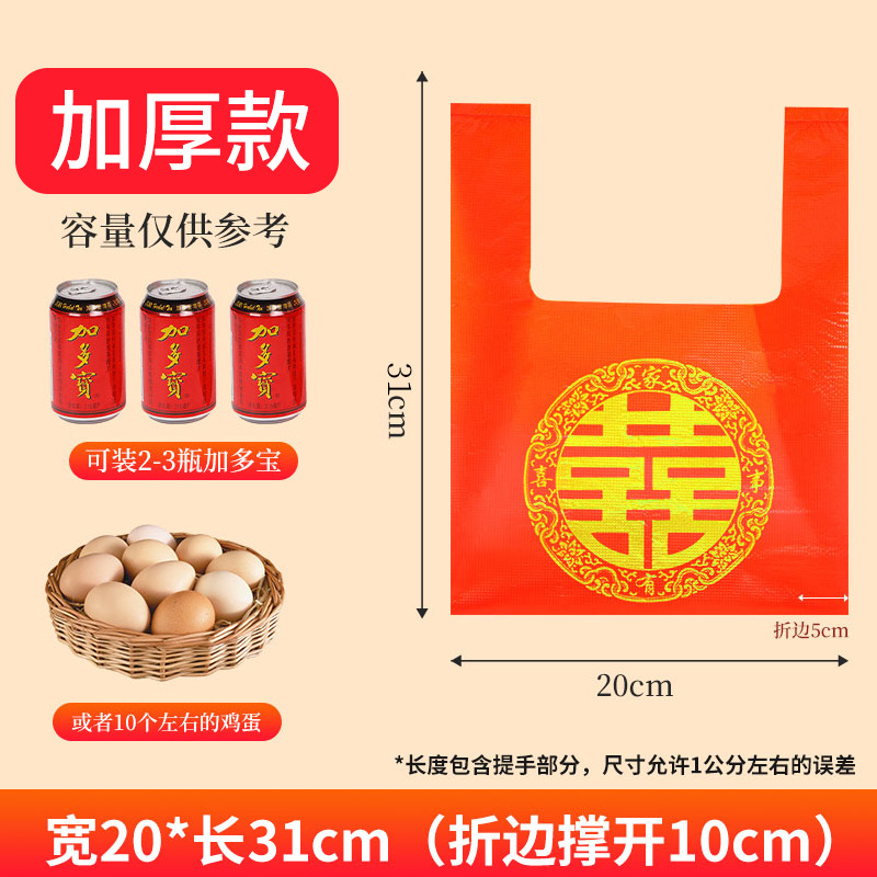 红色加厚款塑料袋双喜打包背心袋结婚手提方便袋喜事打包袋