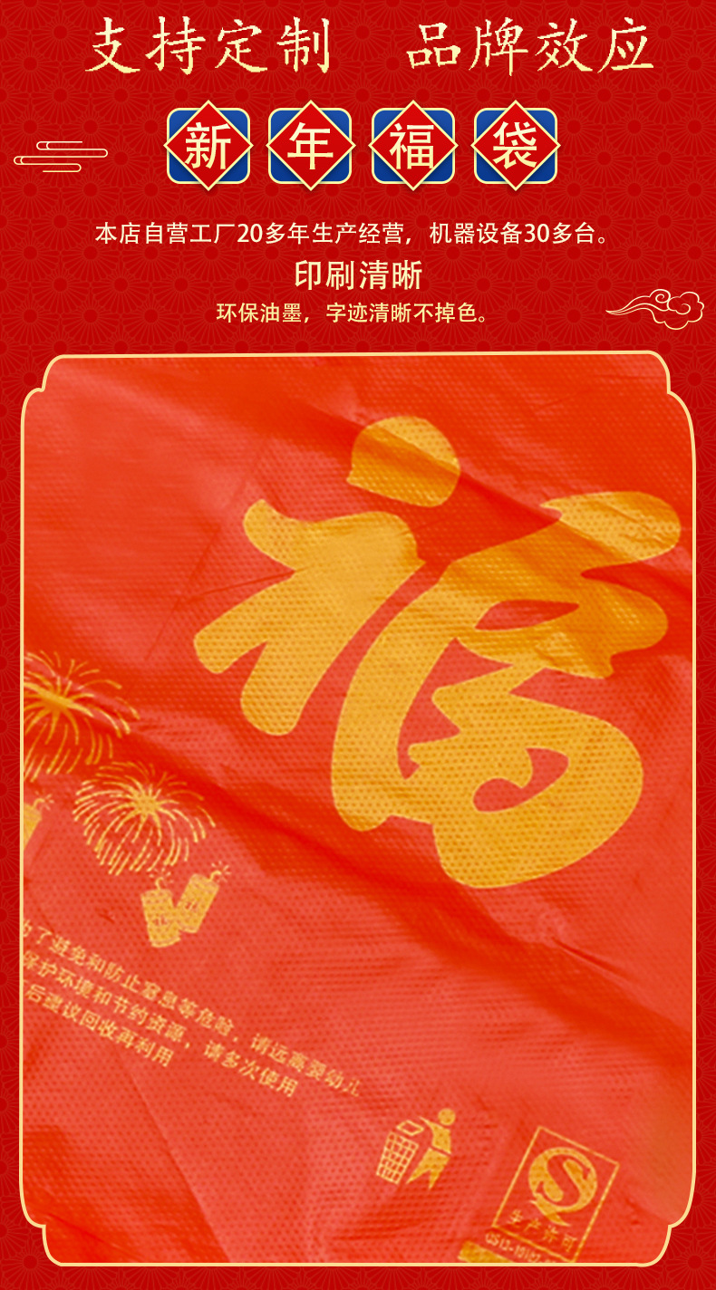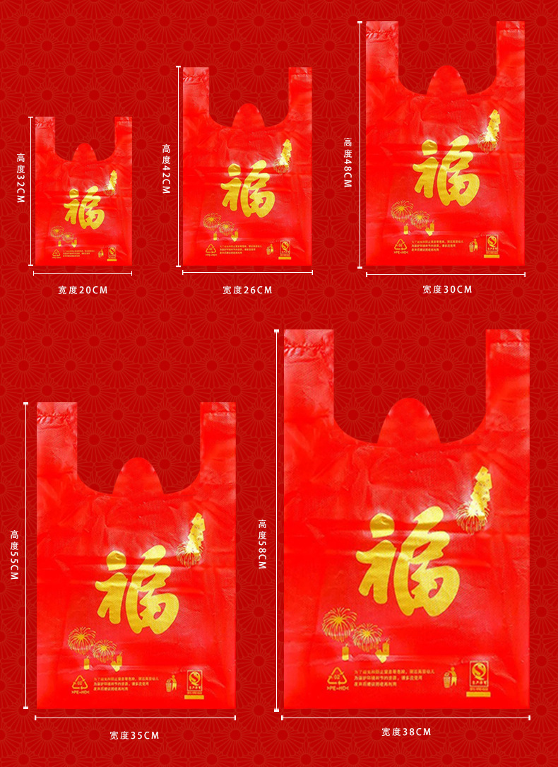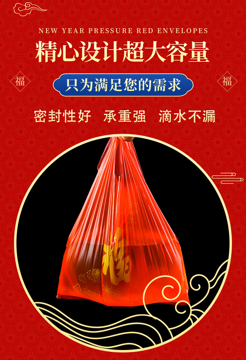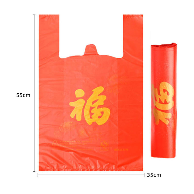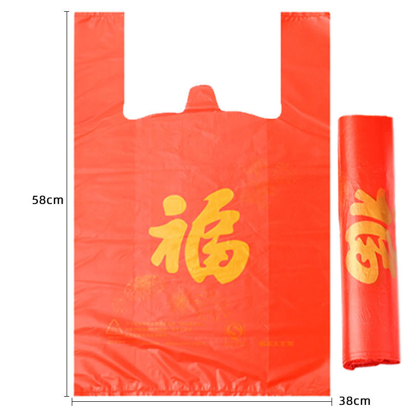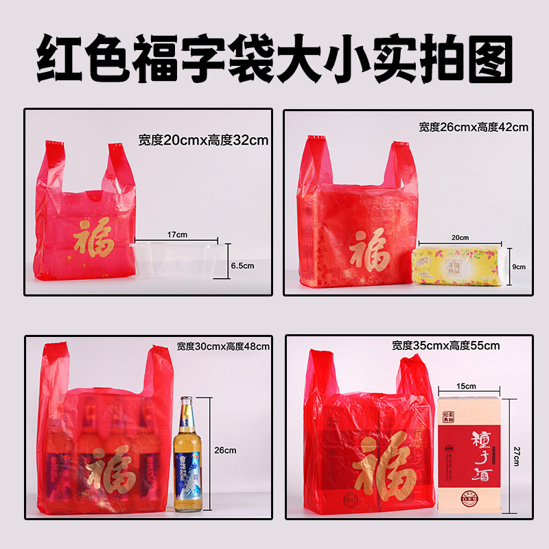 红色手提塑料福字袋礼品袋批发超市购物方便袋一次性打包袋子