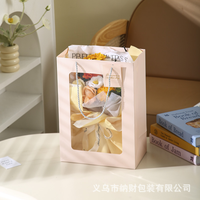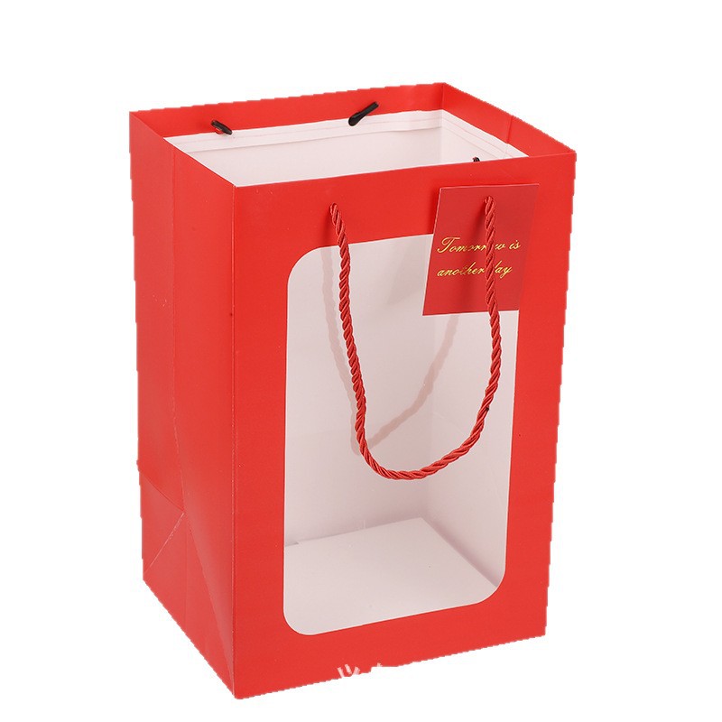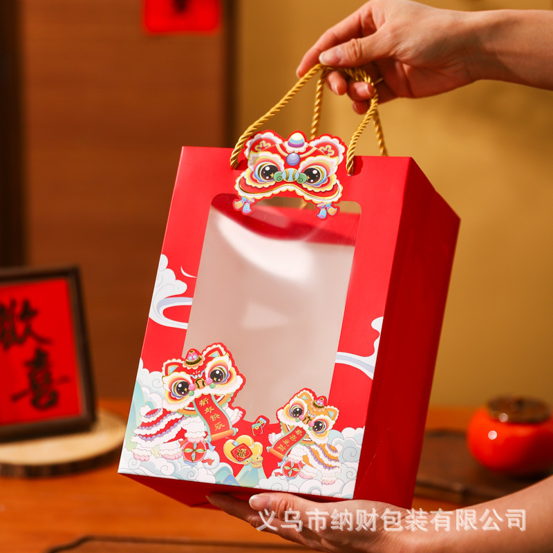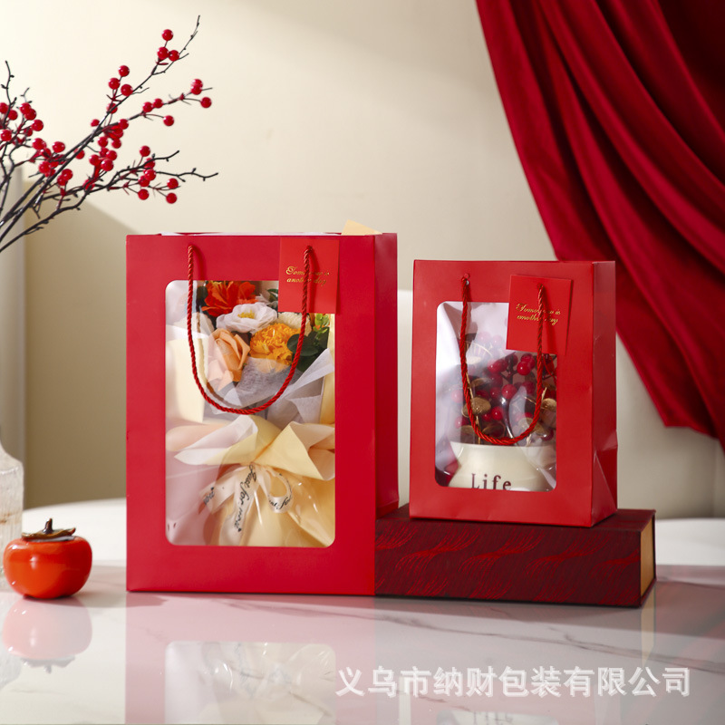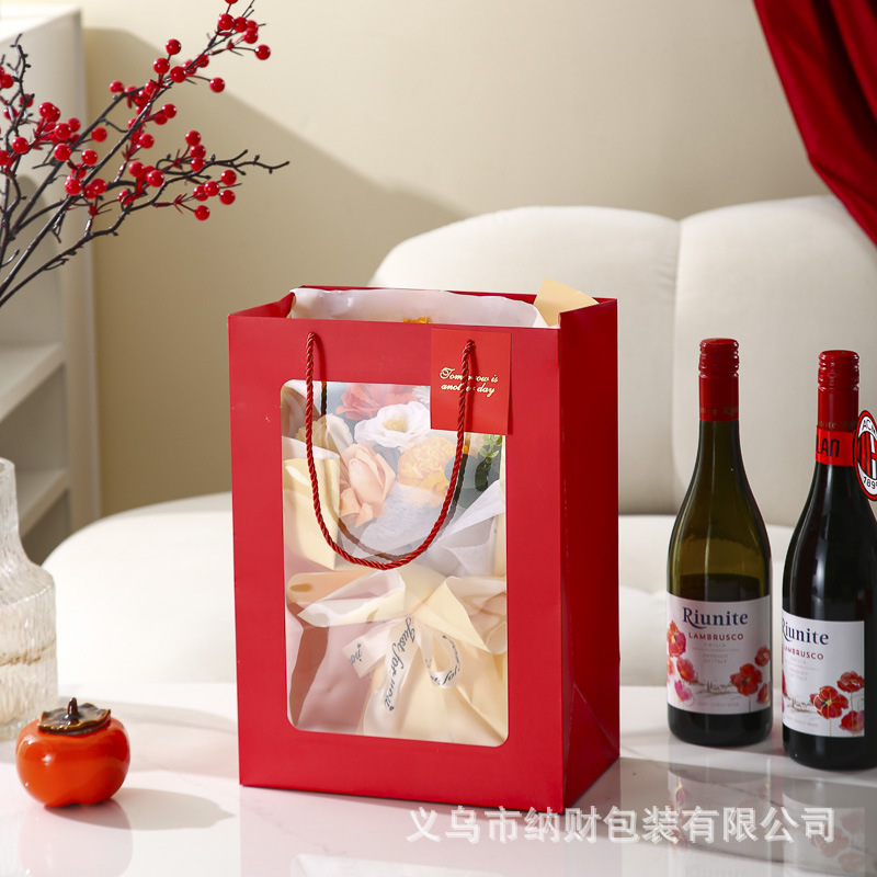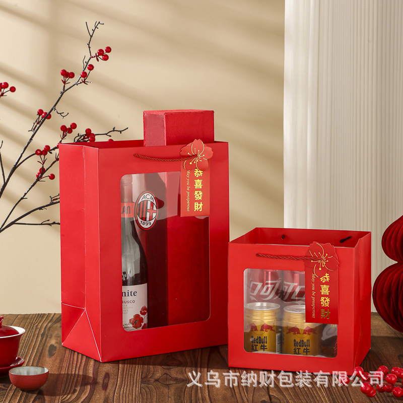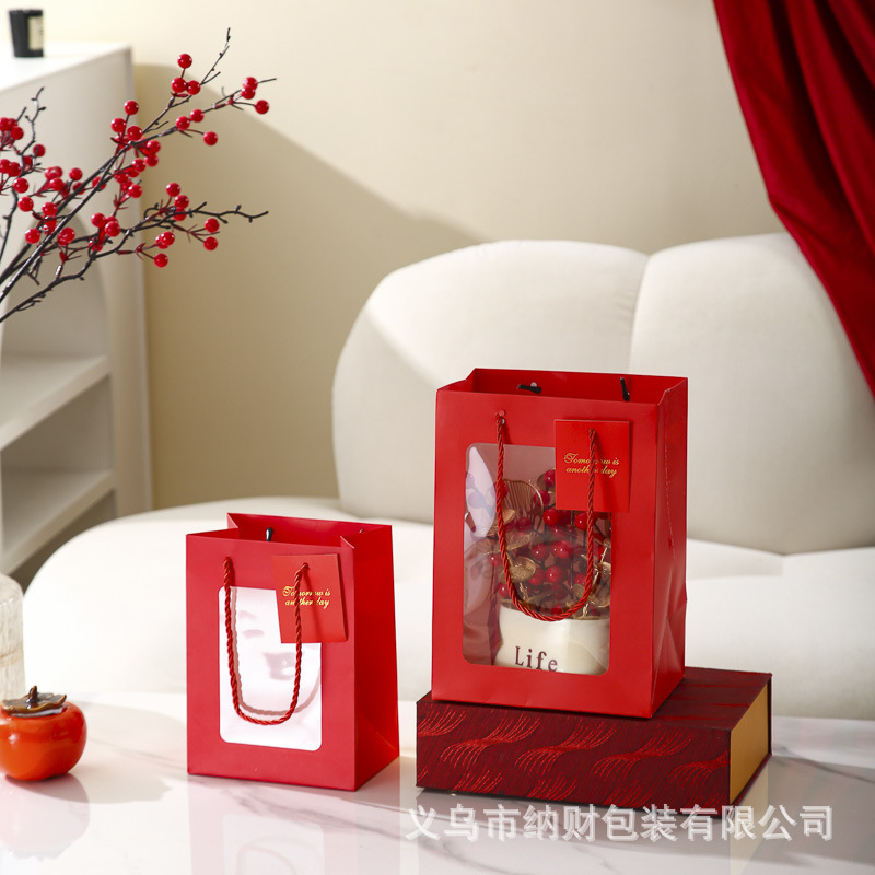 新年手提袋开窗红色礼品袋纸袋高级感2026年新年包装袋子伴手礼袋