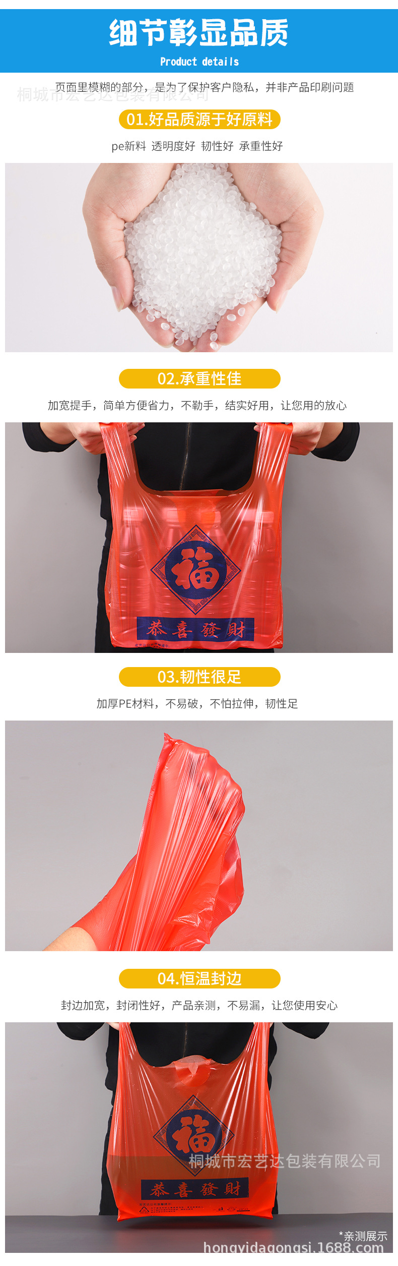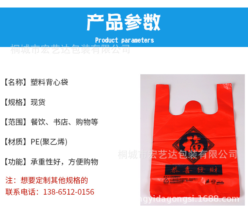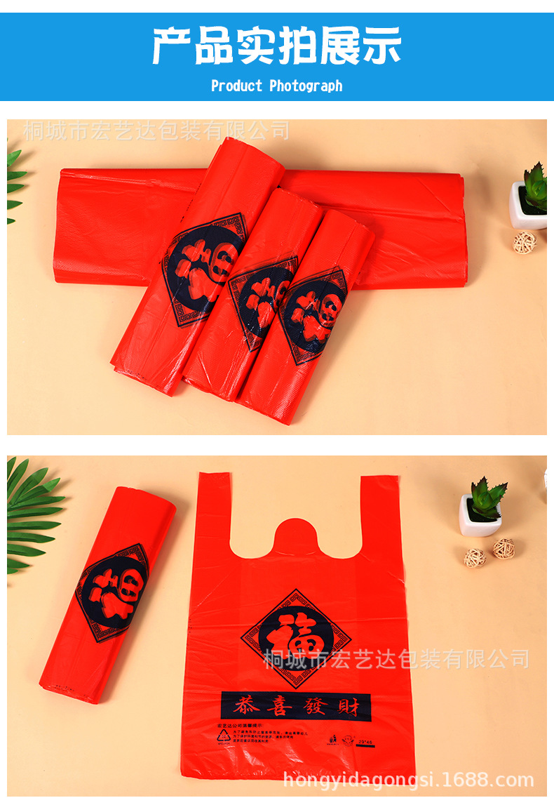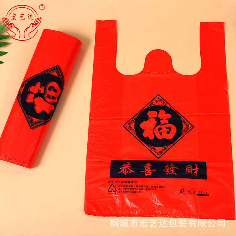 宏艺达红色福字背心袋购物超市水果塑料袋食品打包袋批发
