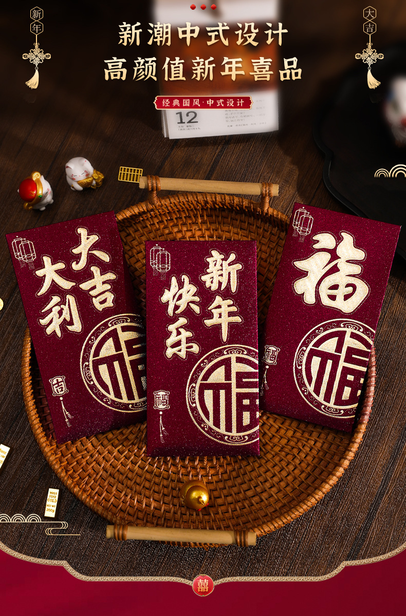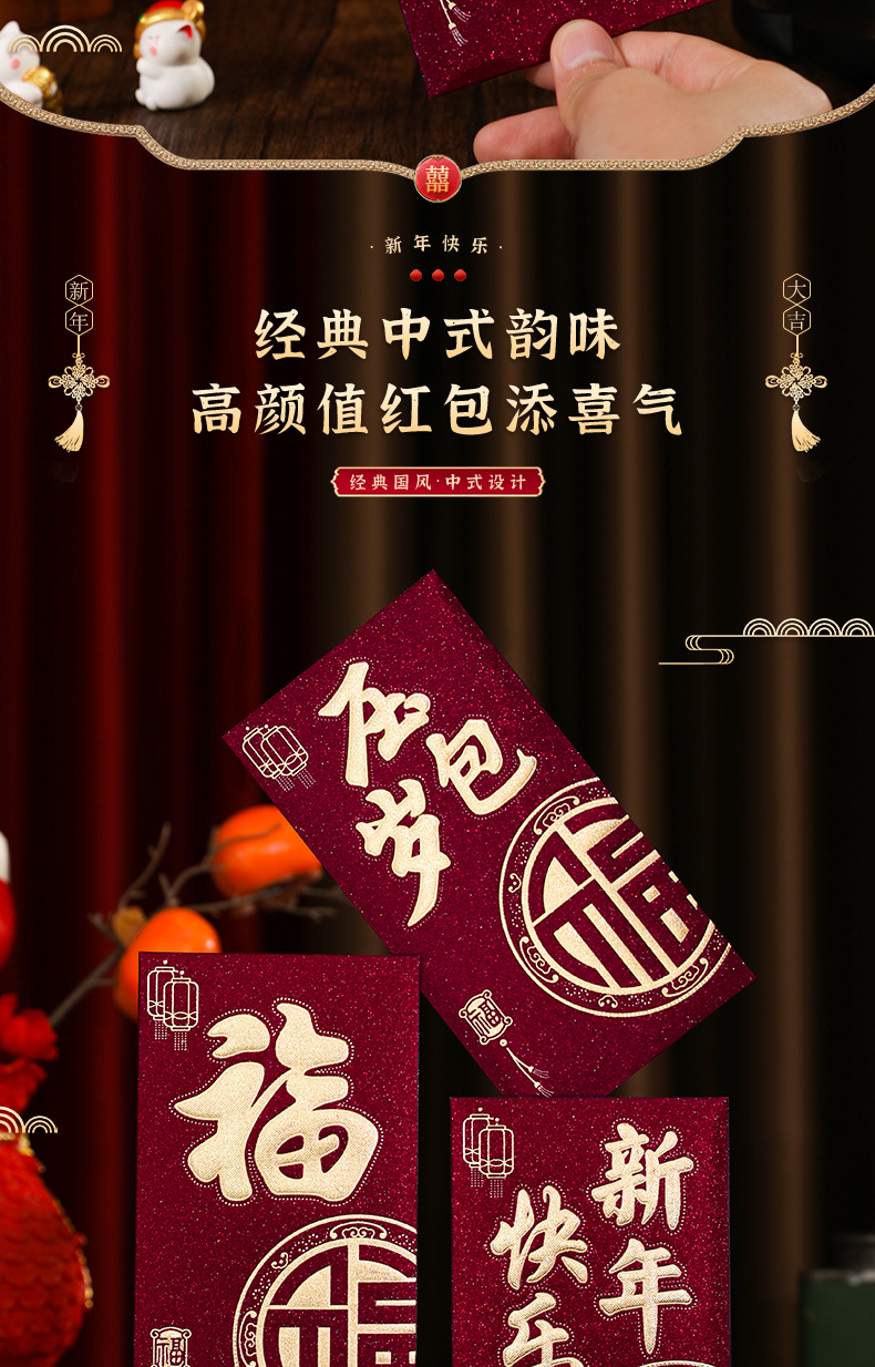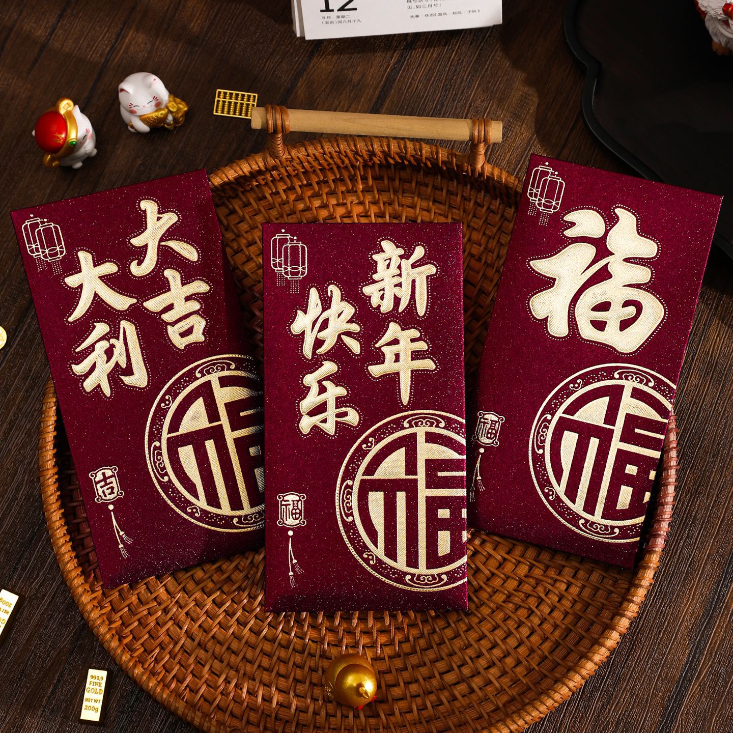 创意结婚红包高档金葱磨砂红色喜字改口红包袋婚礼专用利是红封包