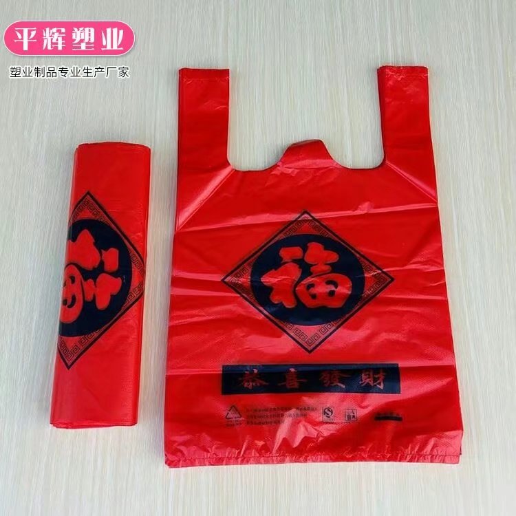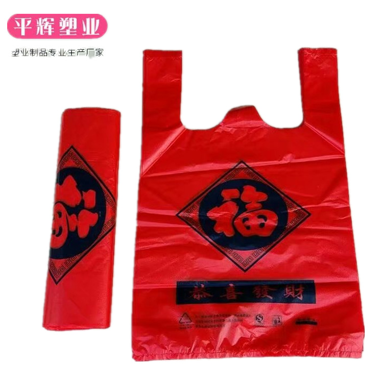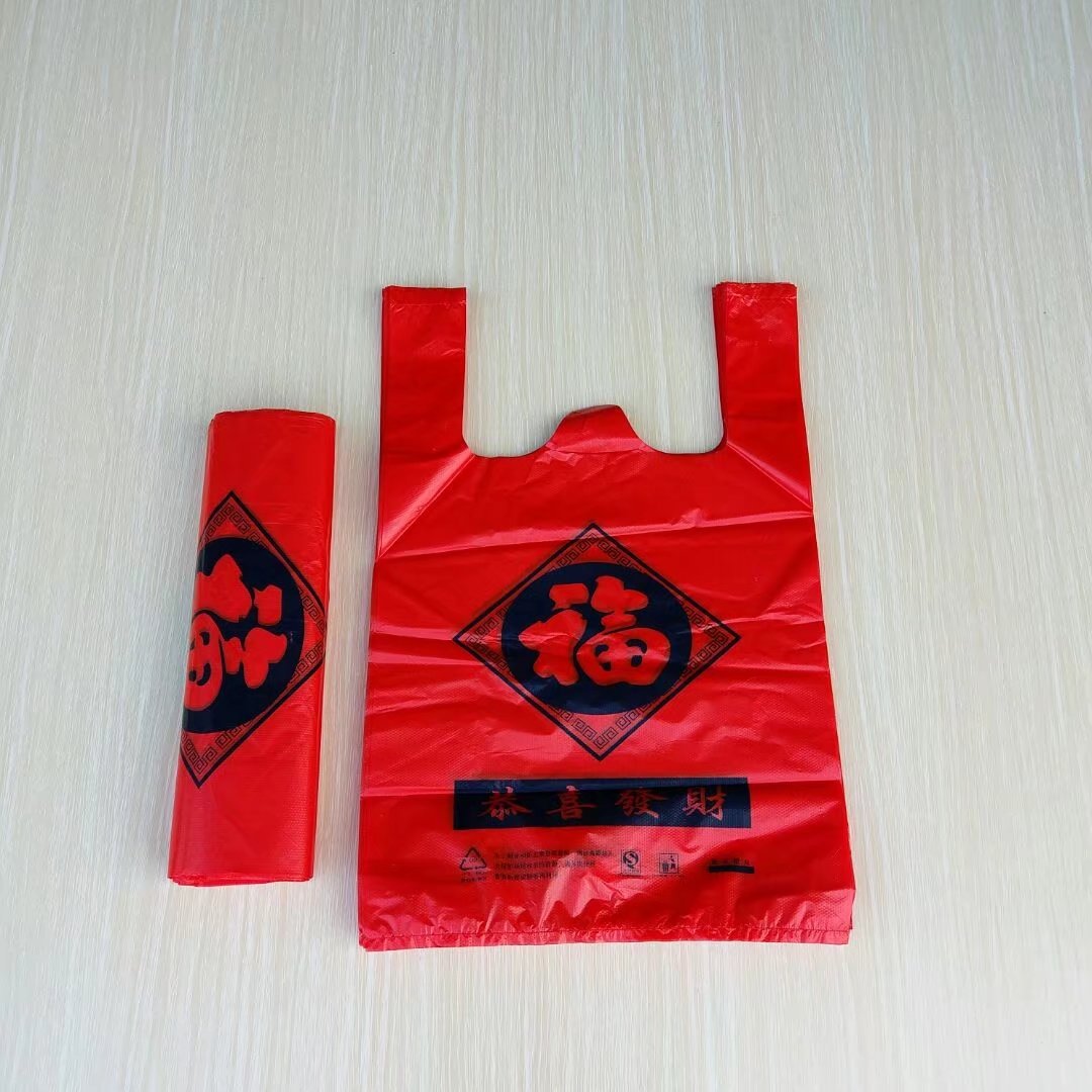 红色福字塑料袋背心袋蔬菜水果方便袋超市购物袋外卖打包袋批发