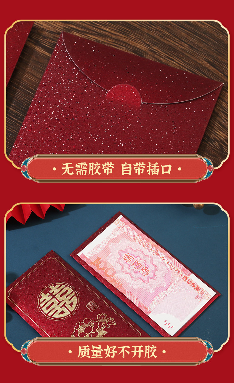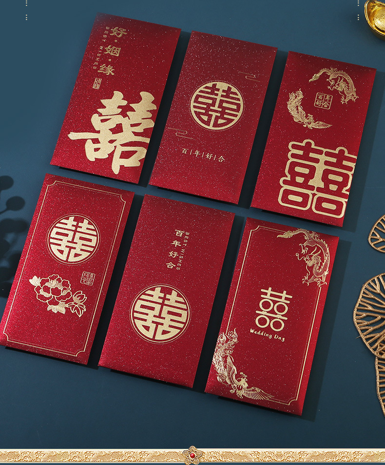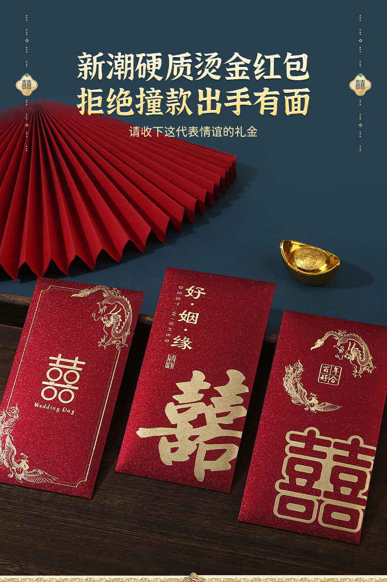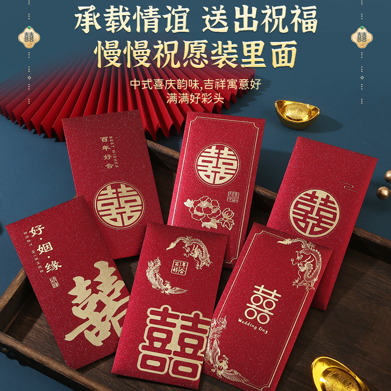 红色结婚红封包堵门喜包改口婚礼改口费大小喜字随份子千元新婚