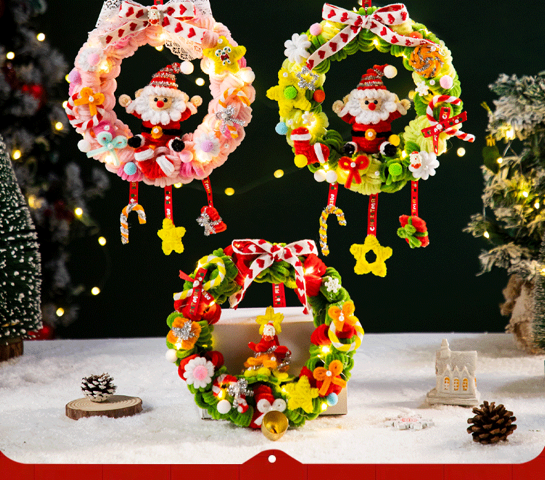 扭扭棒圣诞花环发光挂件装饰挂饰圣诞树手工diy材料包小礼物品