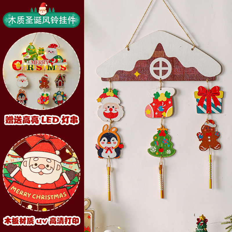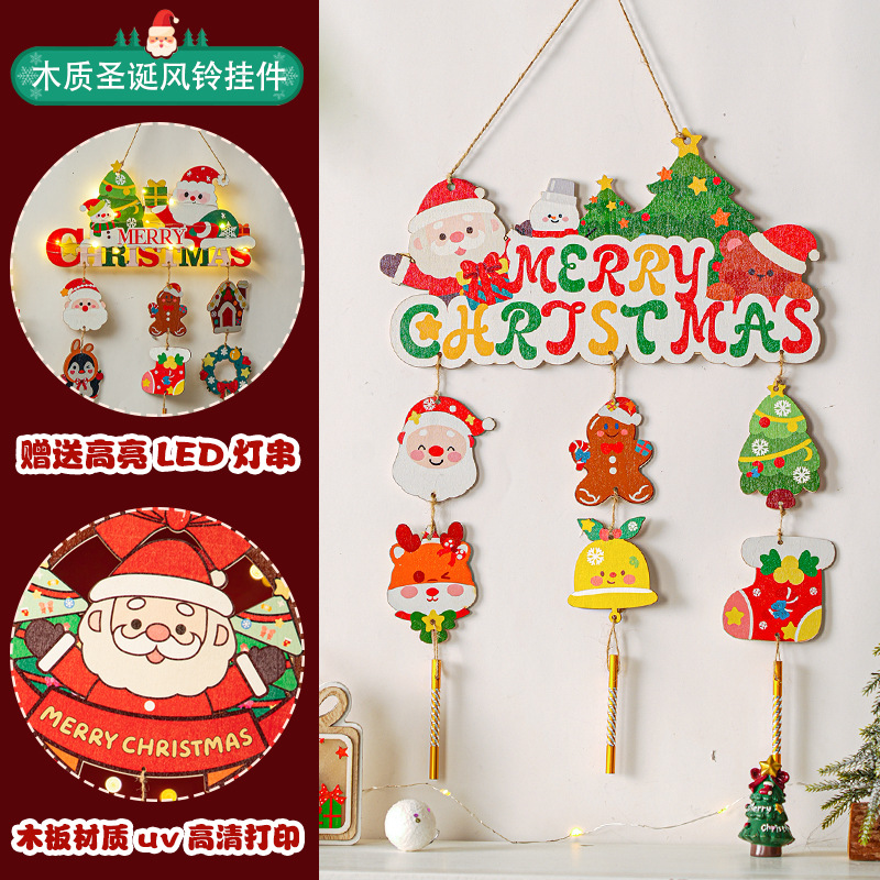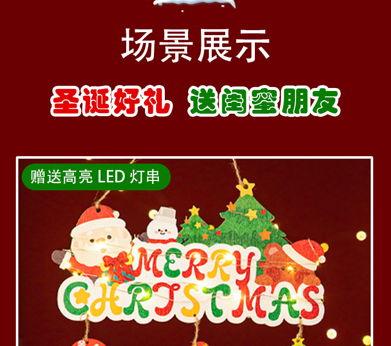 圣诞节装饰品场景氛围布置墙面木质入户门挂件圣诞树发光挂饰挂牌