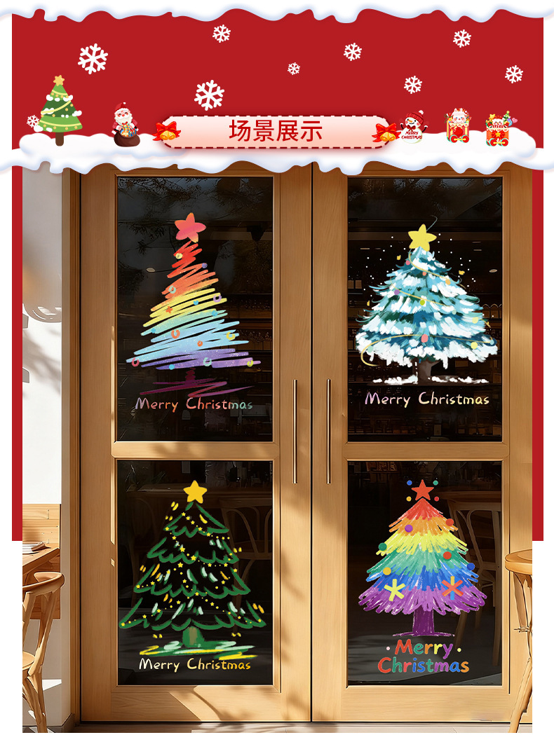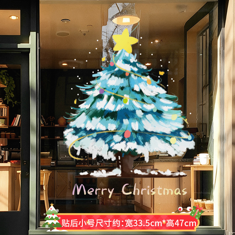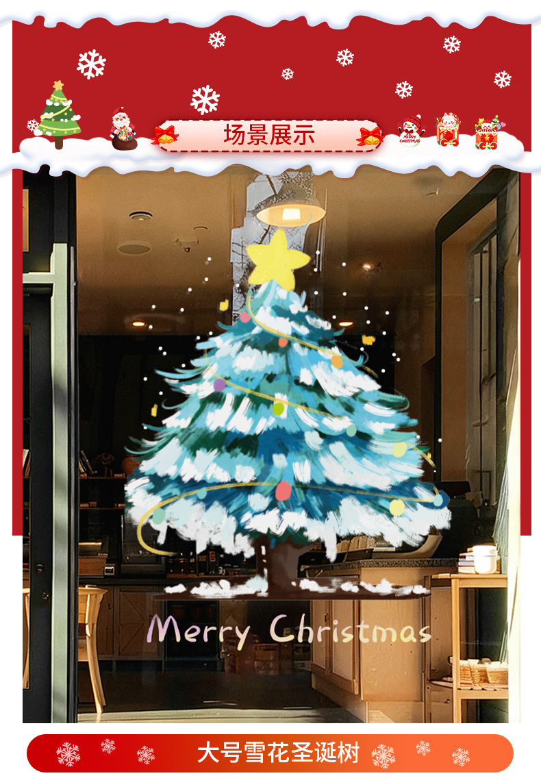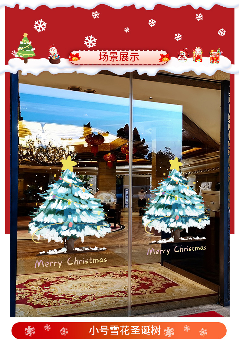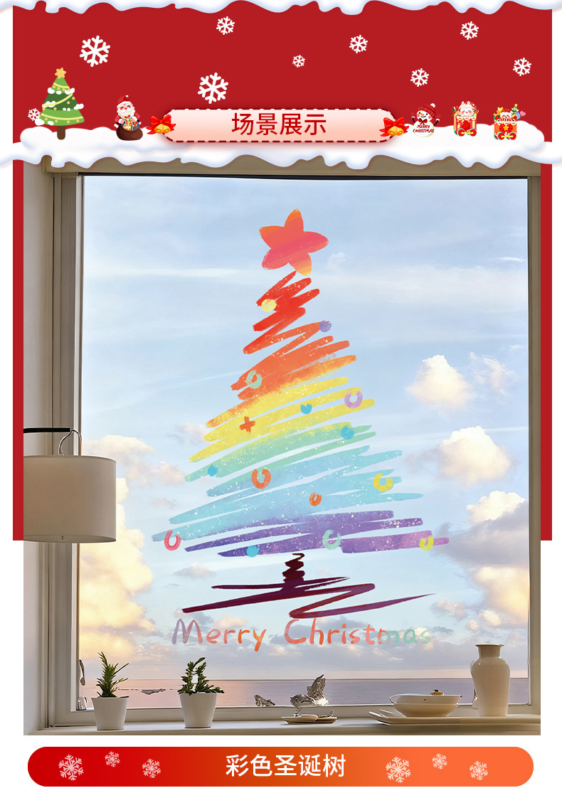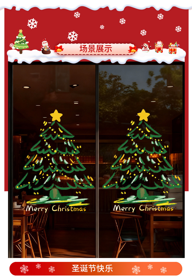 圣诞节装饰品圣诞老人树窗花玻璃门贴纸耶诞场景氛围布置窗贴静电