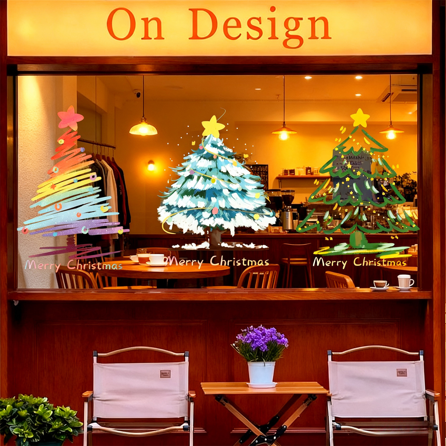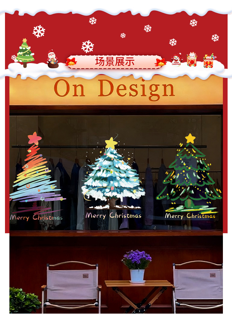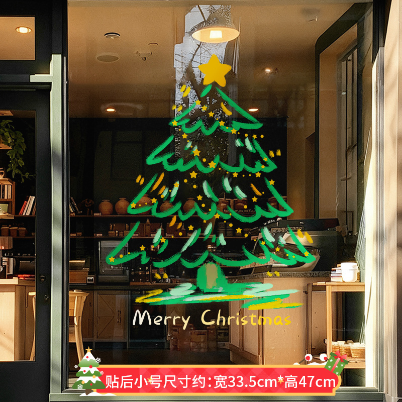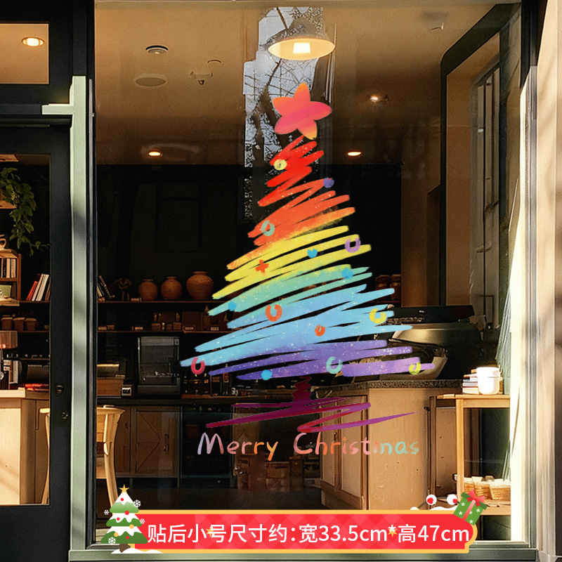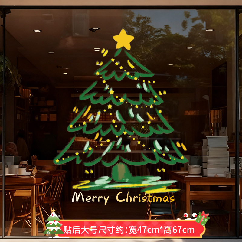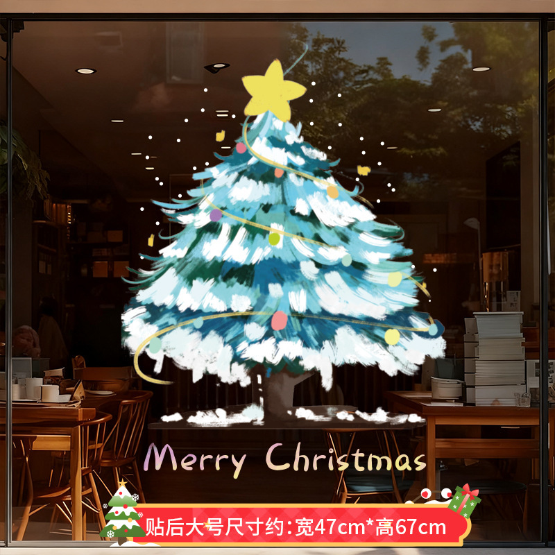 圣诞节装饰品圣诞老人树窗花玻璃门贴纸耶诞场景氛围布置窗贴静电