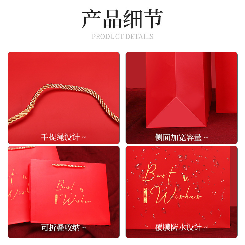 红色手提袋现货批发加厚纸袋服装包装袋礼物手提袋伴手礼红色纸袋