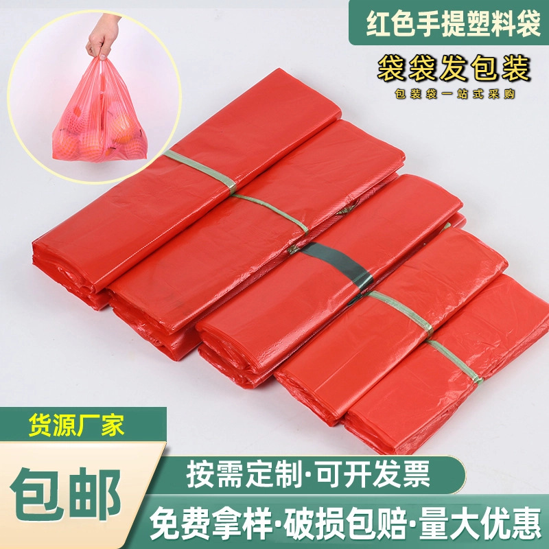 加厚红色背心袋包装打包塑料袋子一次性水果批发手提超市小中大号