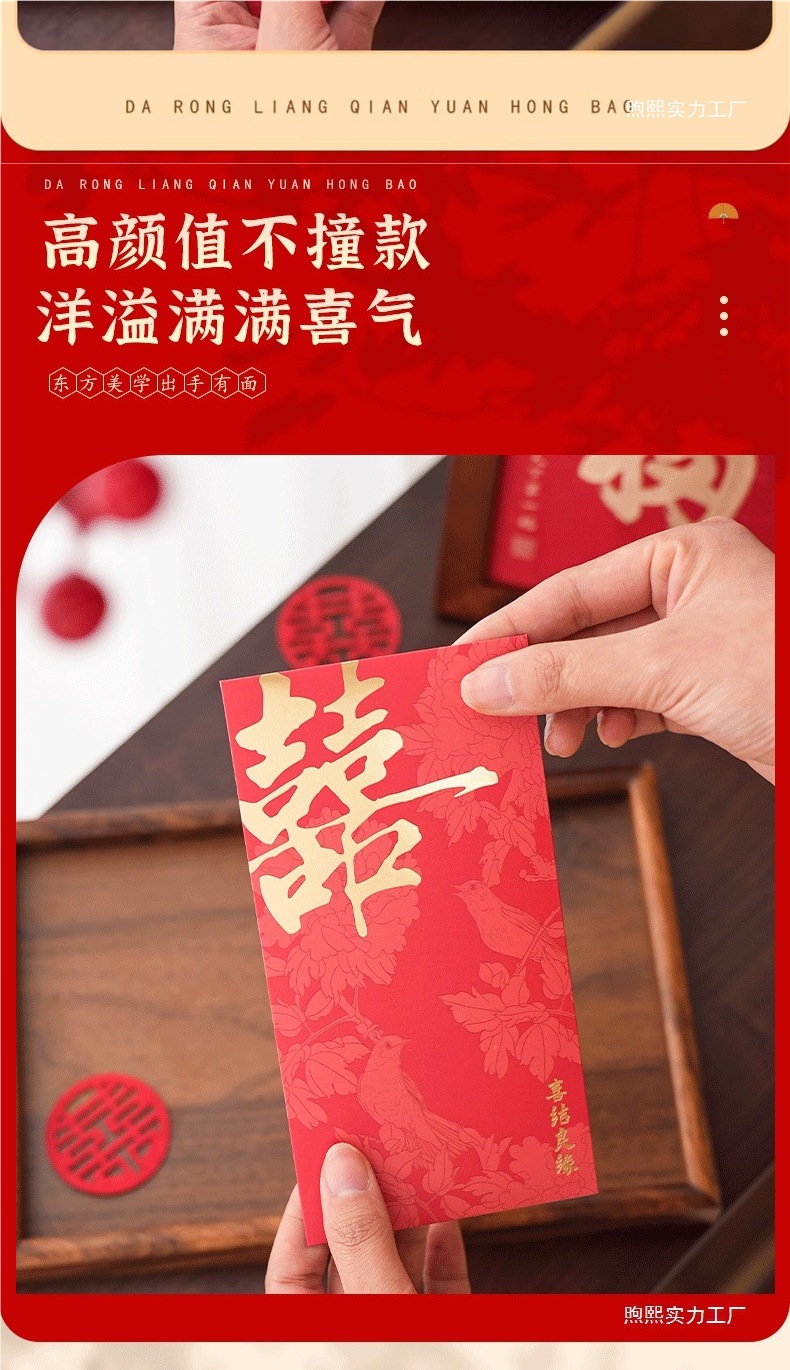 新婚封包新款喜字利是封随份子改口创意订婚婚礼红包结婚烫金纸