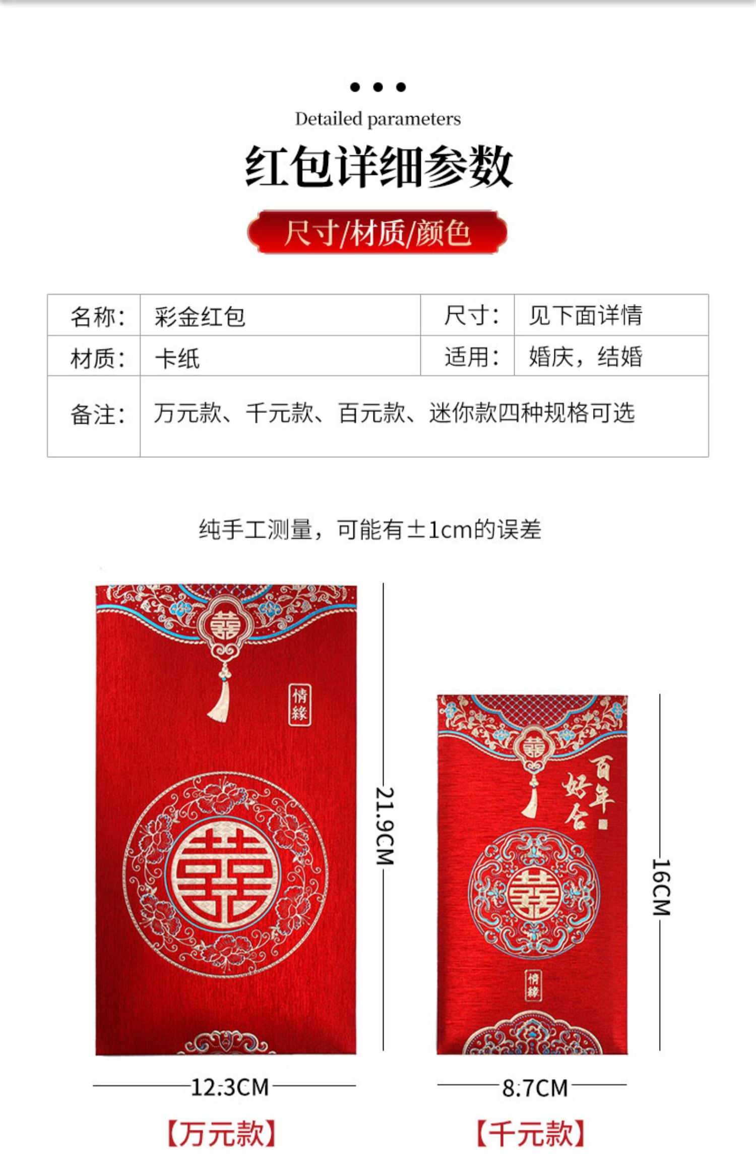 | red envelop containing 10,000 yuan [set of 6] (20,000 yuan can be laid flat in it)♜(万元红包【6个装】(百元平铺可放2万)♜) | USD $3.53 | 2200 piece available |