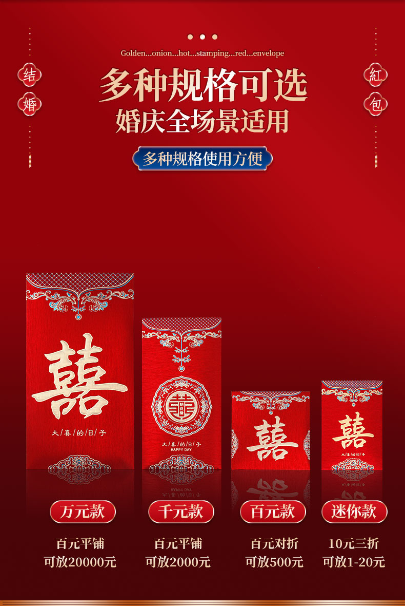 | 1000 yuan red envelope [12 packs] (one hundred yuan tile can hold 2000 yuan)♜(千元红包【12个装】(百元平铺可放2000元)♜) | USD $4.36 | 2000 piece available |
