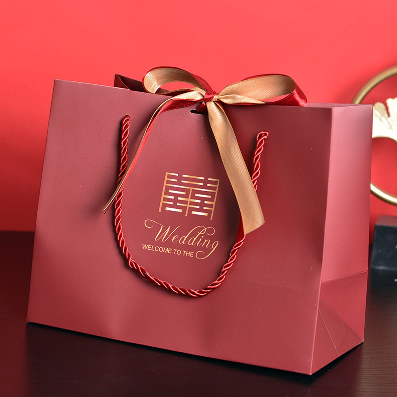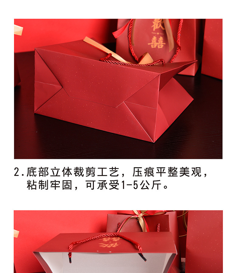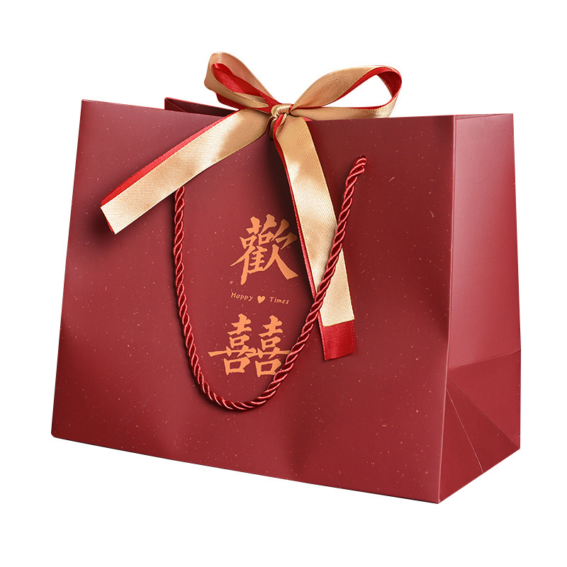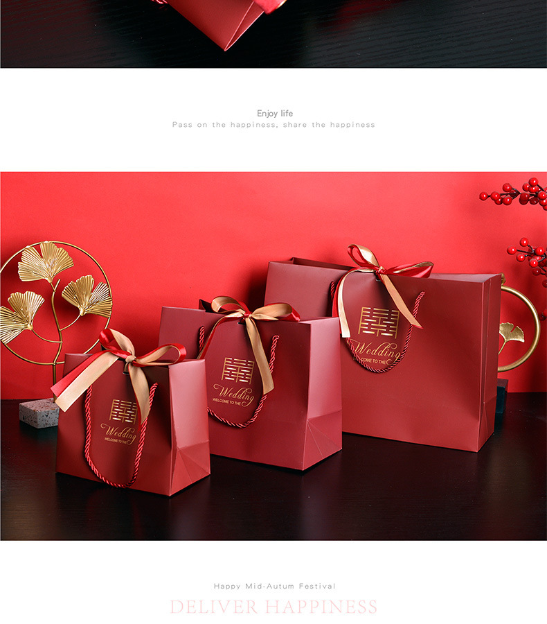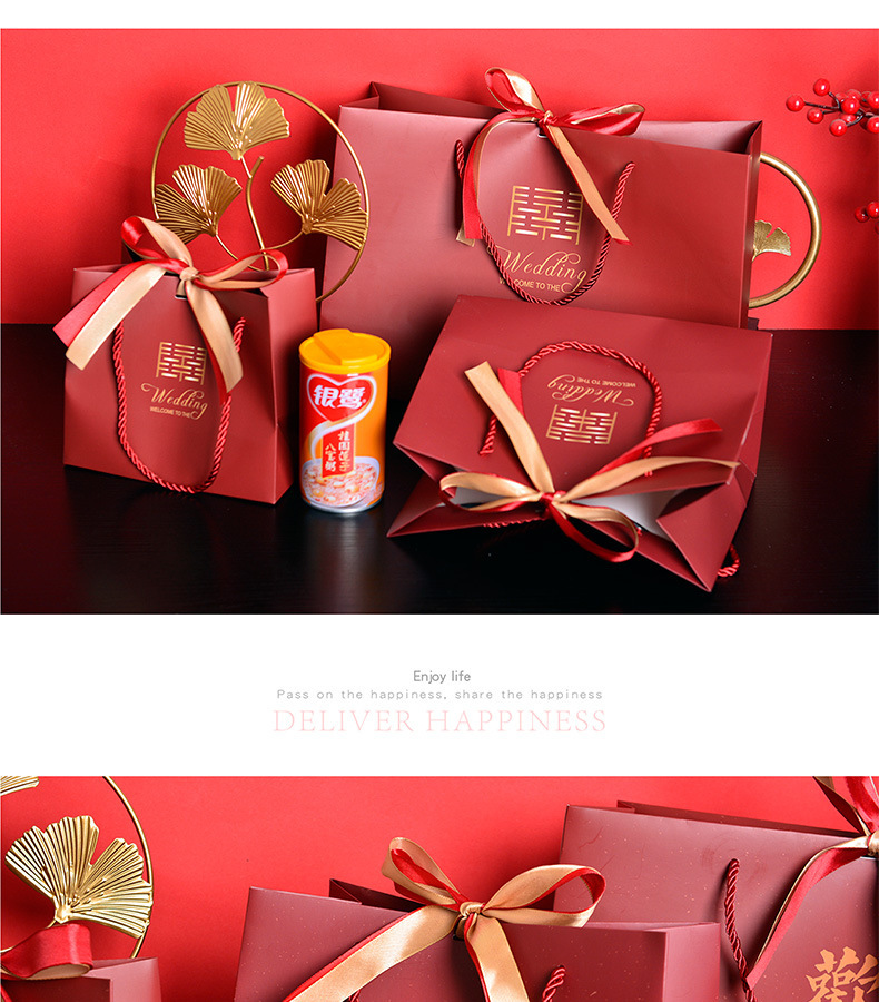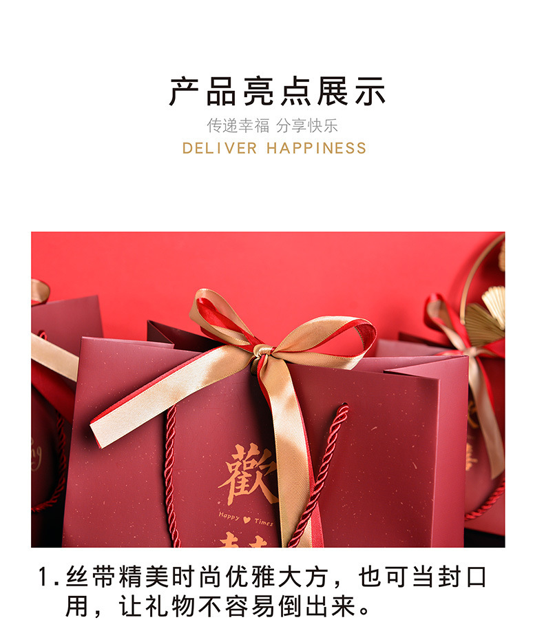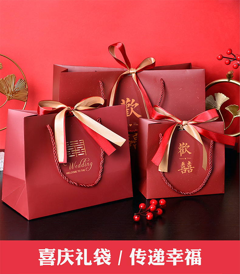 红色欢喜礼品袋送丝带喜糖店包装袋糖果手提袋婚庆袋子生 日礼物