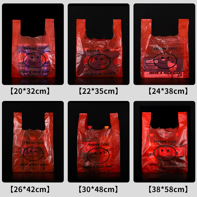 超市红色笑脸方便袋塑料背心袋食品购物袋手提水产品打包塑料袋子