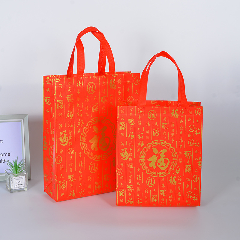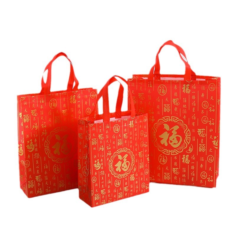 现货红色福字无纺布袋定制祝寿乔迁春节送礼手提袋烟酒礼品袋批发